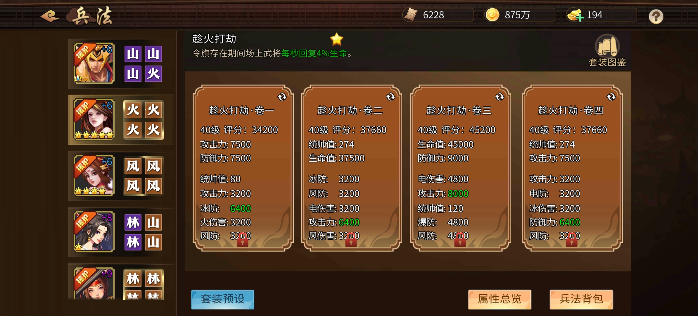 紫色兵法全7星,一半8星,橙色全1星,攻击加的多,援军吕布差100片四星,宠物月卡一个月多,其他看图