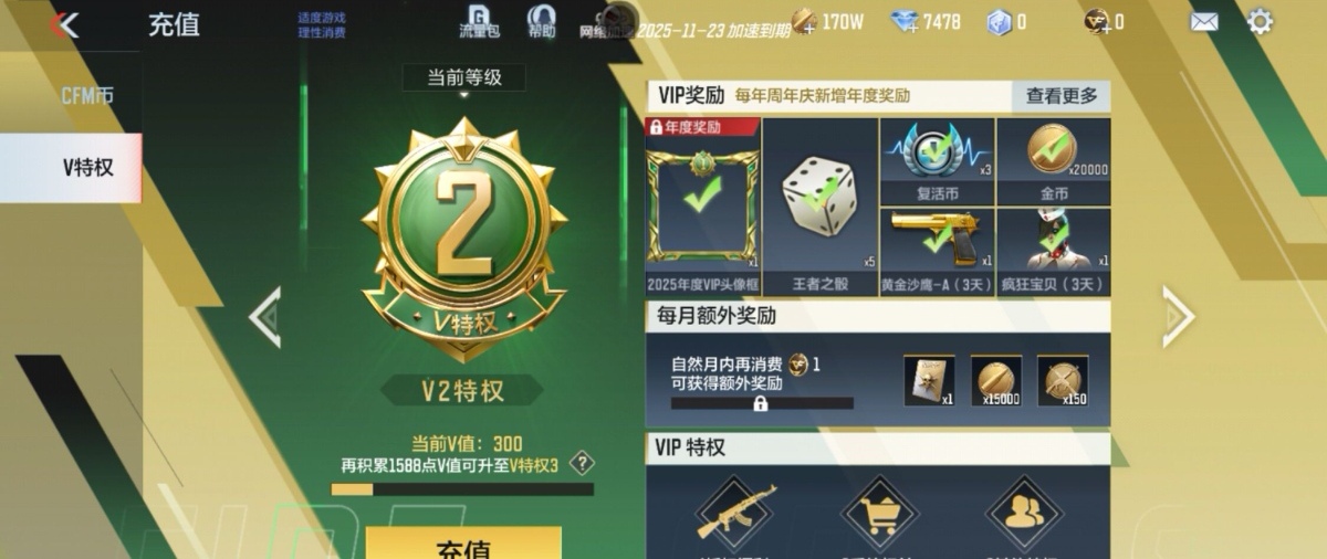 VIP2,王者武器2,英雄级武器111,万化214,角色27