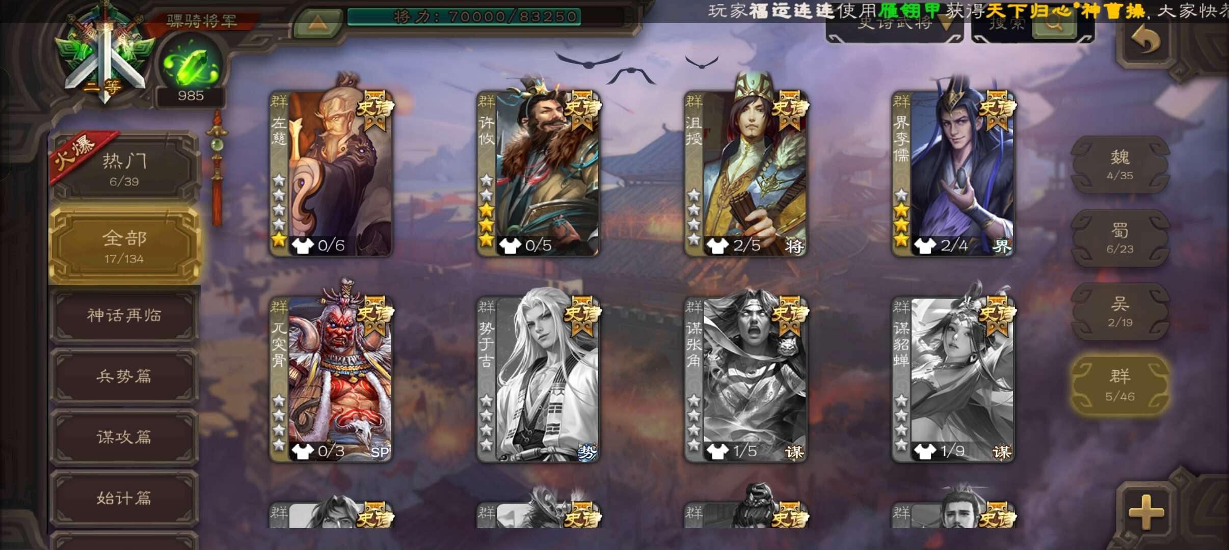 捡漏骠骑玉龙谋诸葛/大宝/许攸/骆统/动界李儒17史诗无限点将