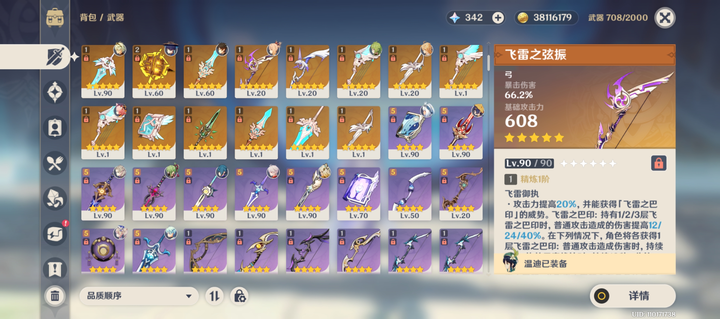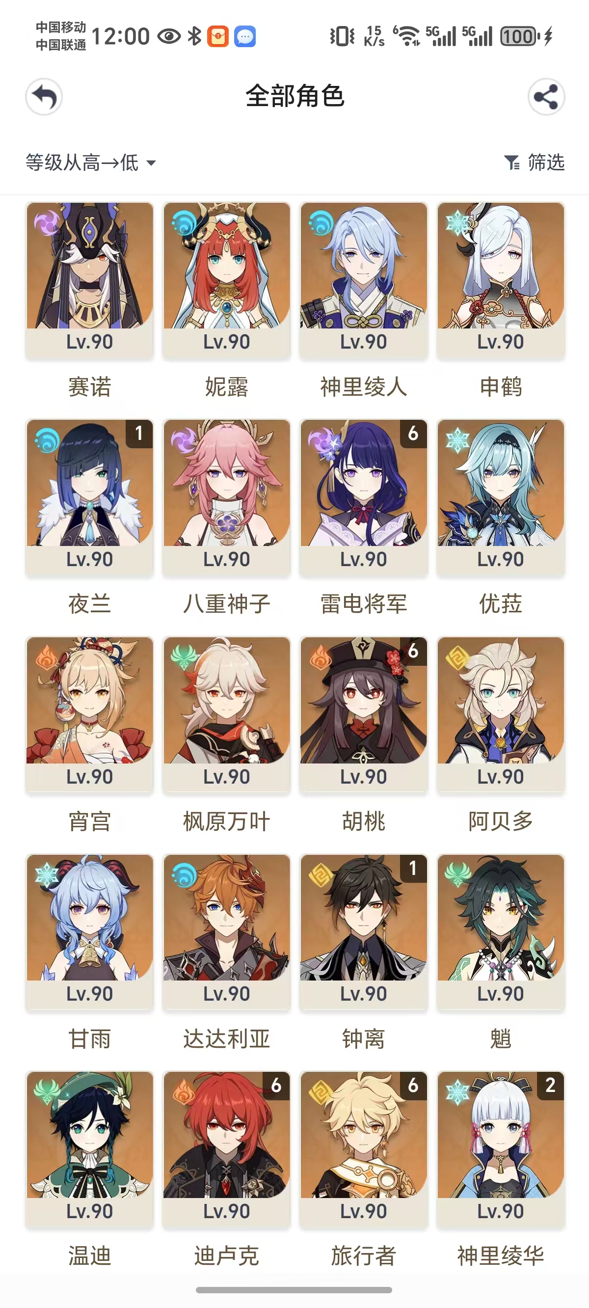 原神130多金,满命雷神,胡桃,带崩铁