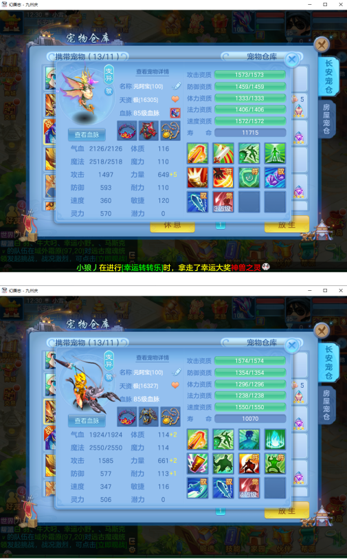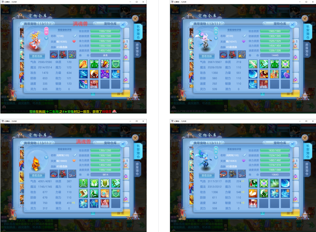 (95龙宫/男)九州庆/一年换绑/有双重--2件11段4件10段,满魂内丹神兽蛇+3个6多特殊5,1813成就
