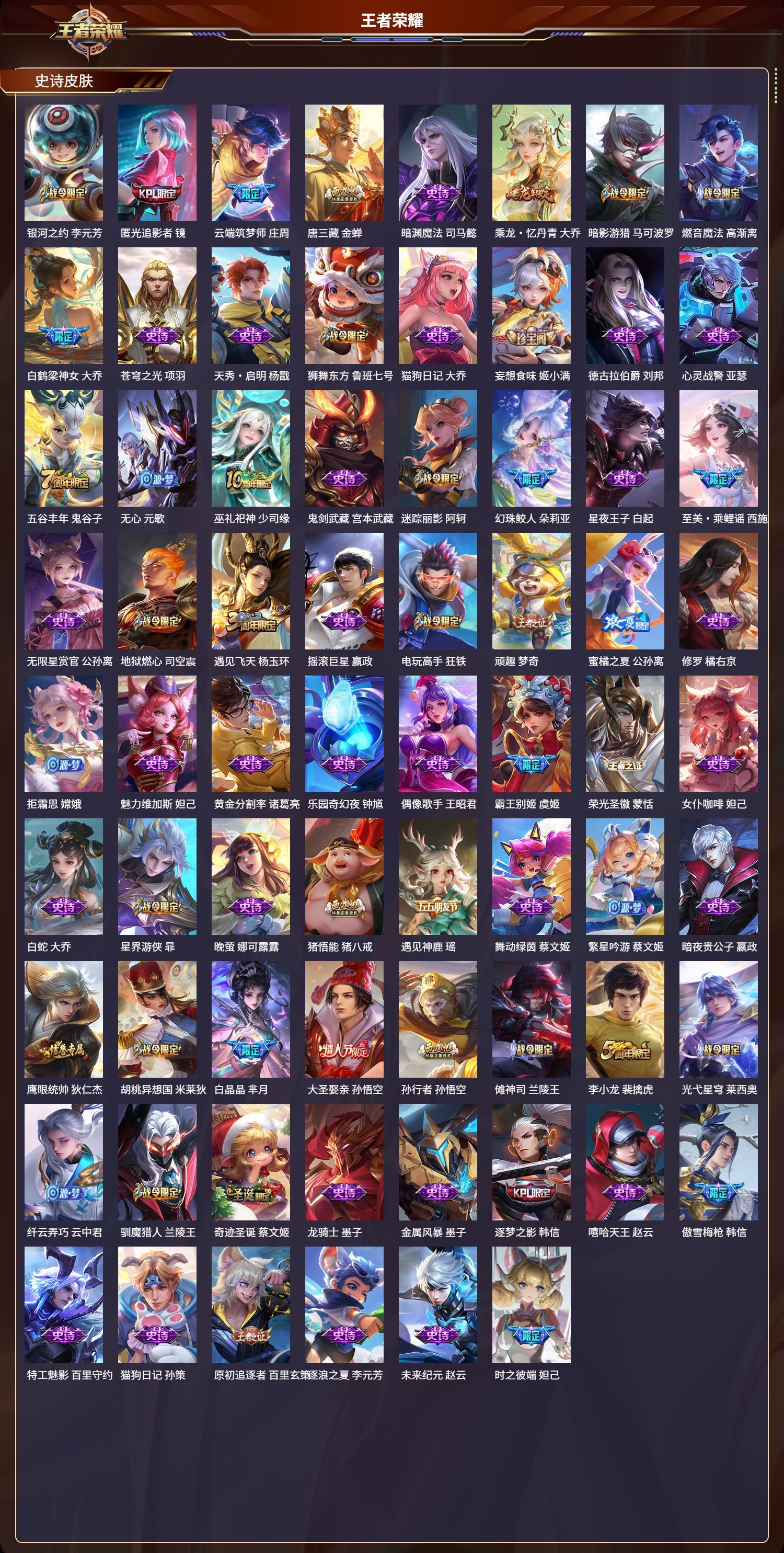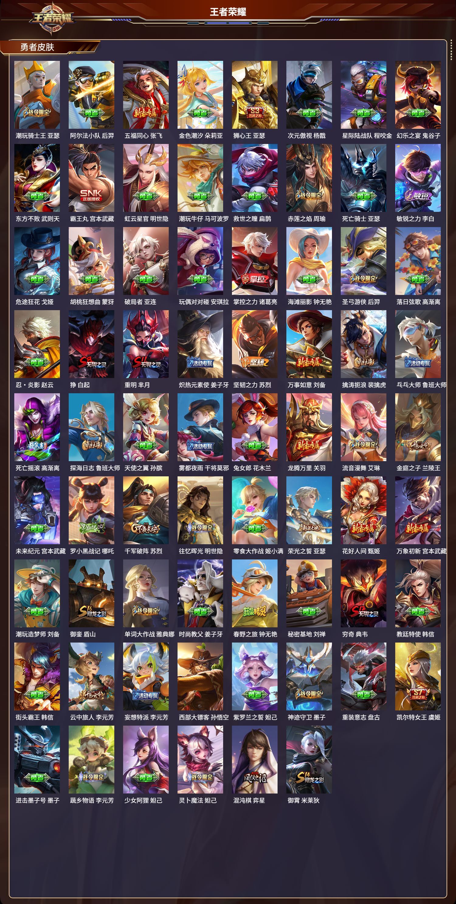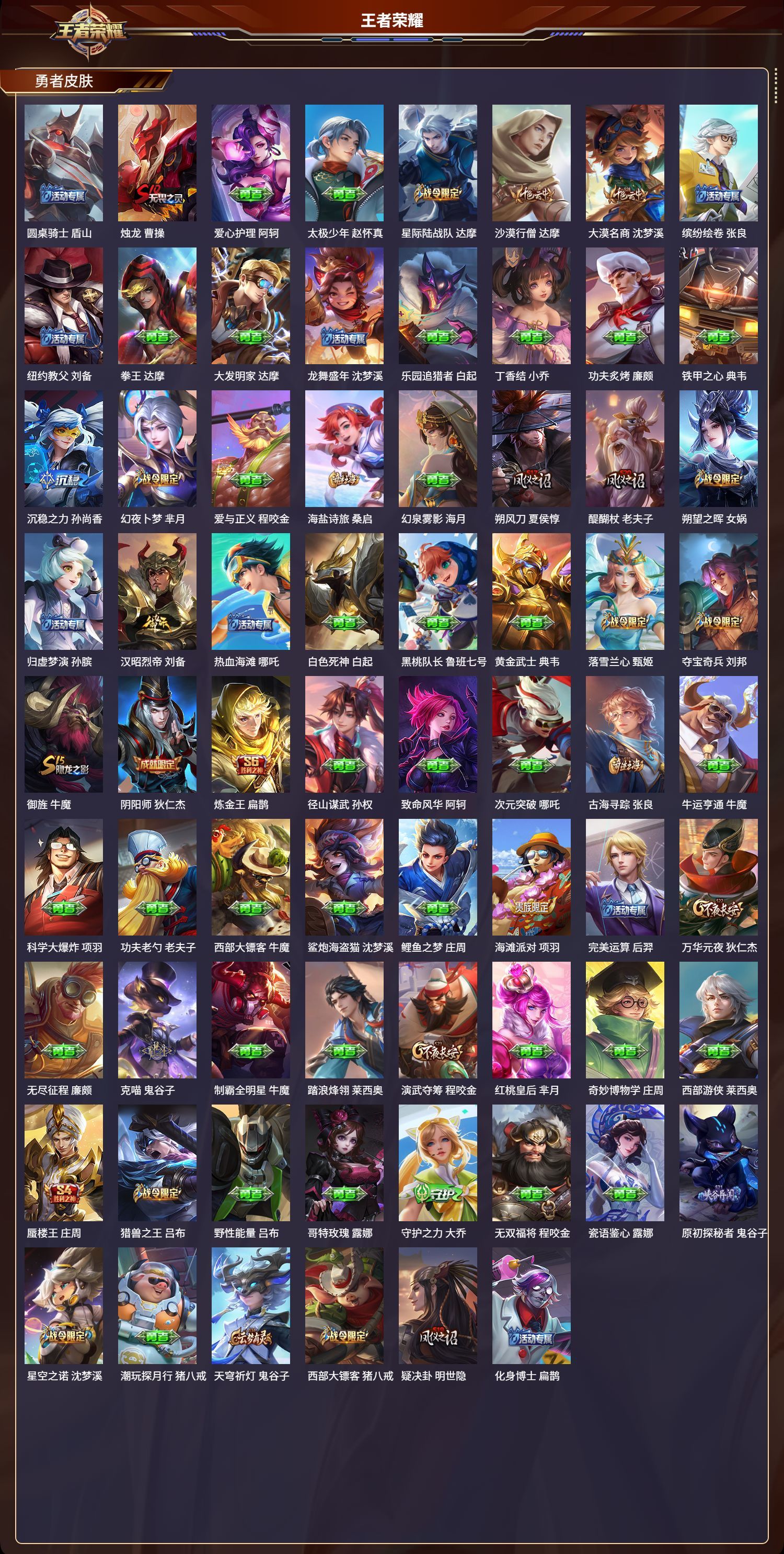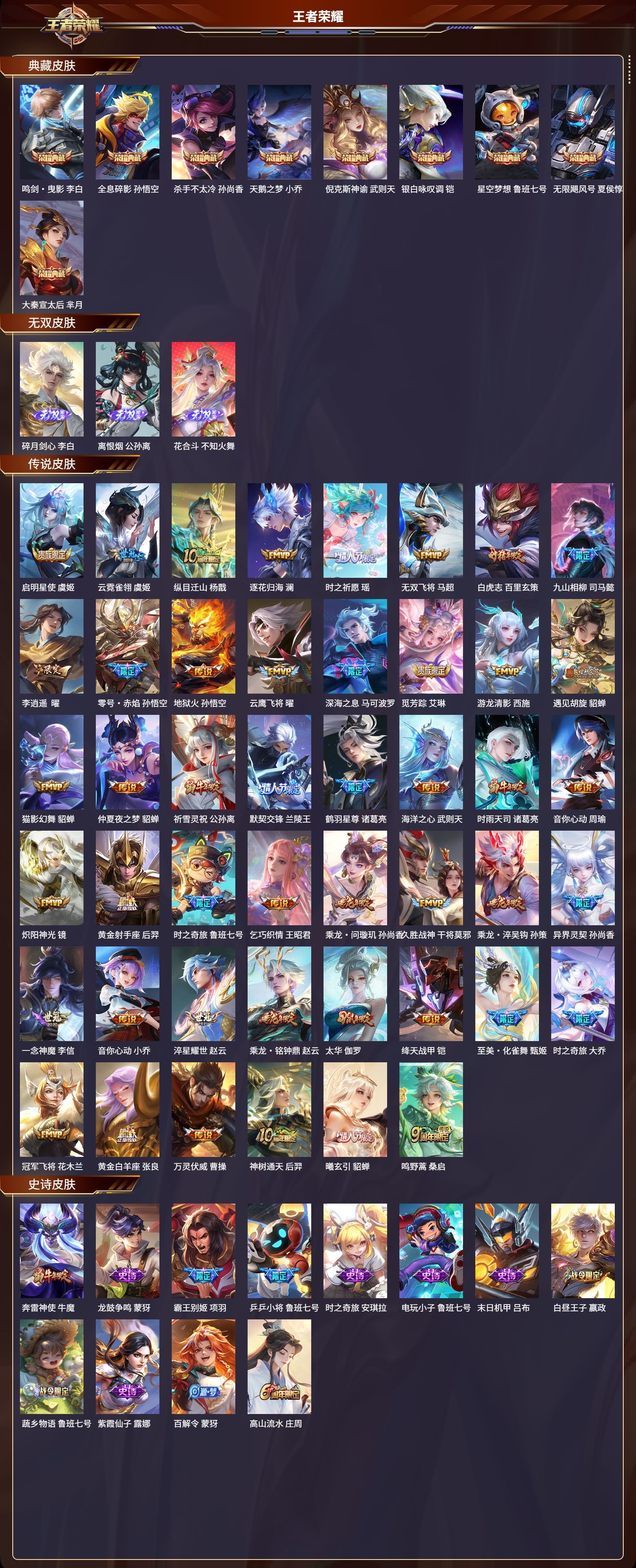 安卓QQ/传奇王者/466皮肤/128英雄/9典藏/0珍品无双/3无双/0珍品传说/46传说/150