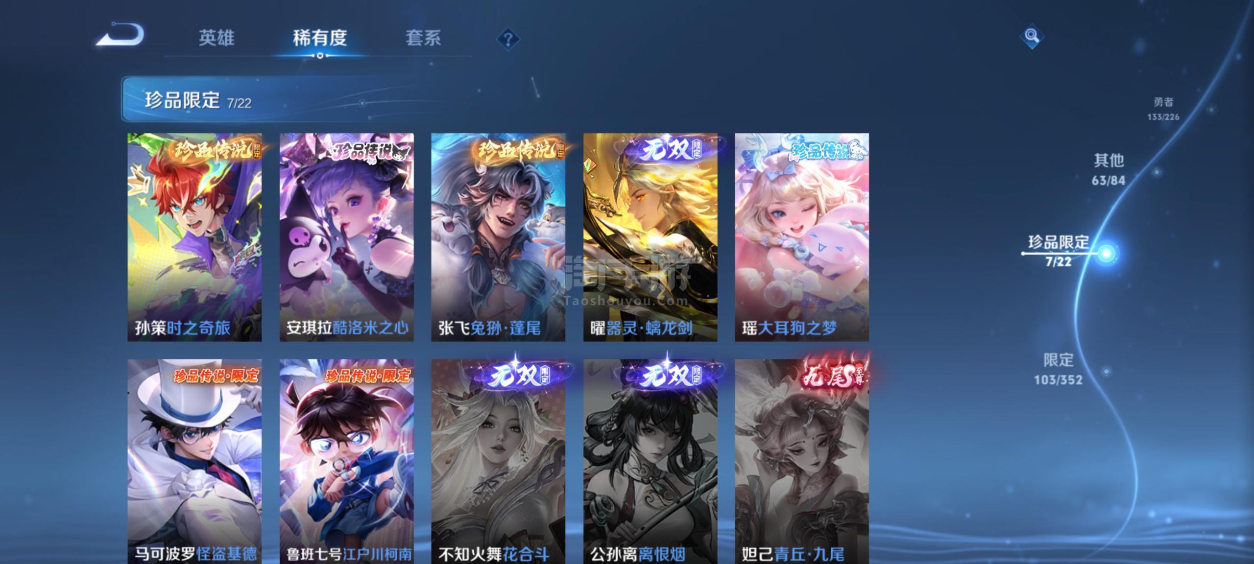 王者荣耀【安卓QQ】安卓q-v9 连体和平 1典藏1无双6珍品20传说 多限定库洛米柯南全套后羿干劫归真永曜之星天魔缭乱至尊宝