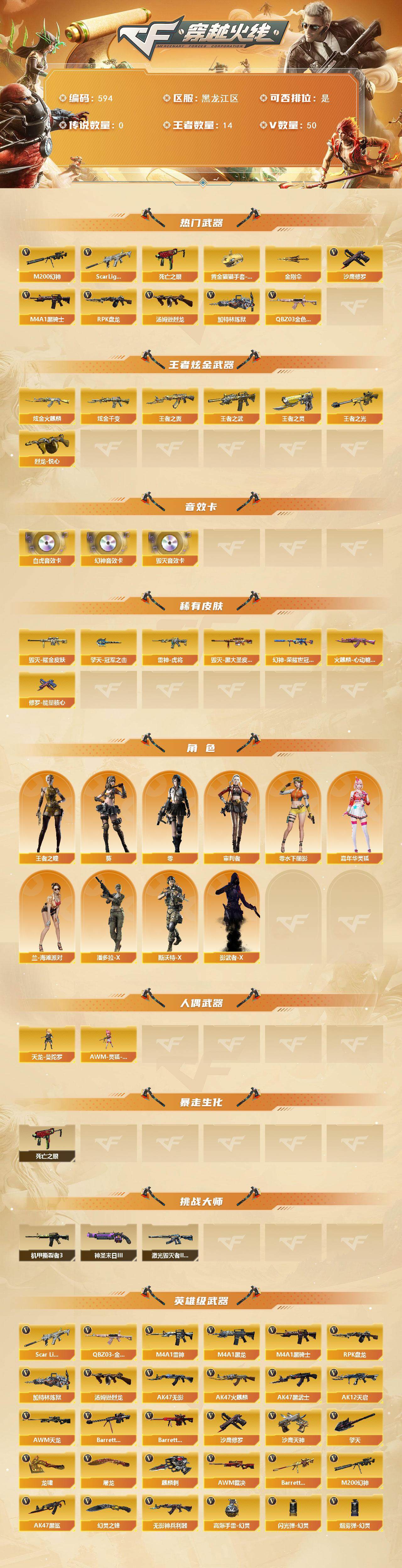 【热门武器】:QBZ03-金色蔷薇,Scar Light-白虎,M200-幻神,死亡之眼,M4A1-黑骑士,汤姆逊-烈龙,RPK-盘龙,加特林-炼狱*2,沙鹰-修罗*4,黄金猫猫手套-白鲨,金刚伞