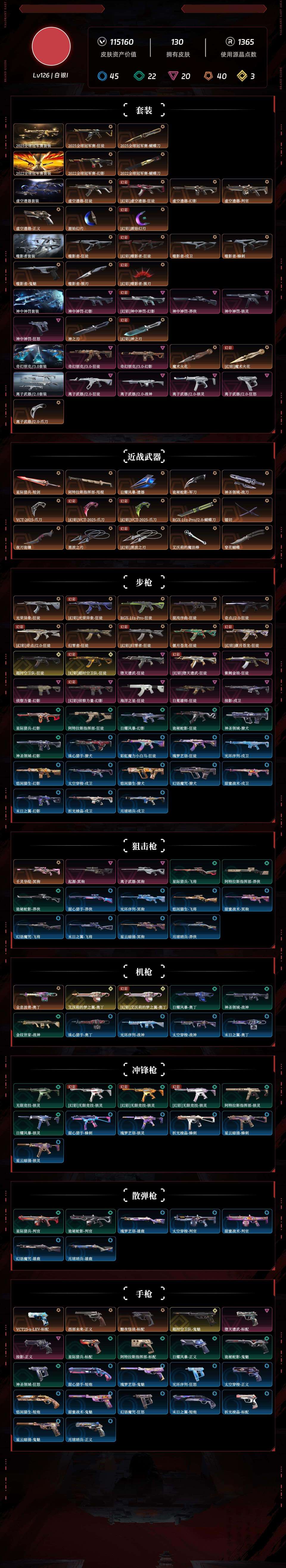 SSXH5119/ Lv126 /皮肤总价值115160/白银I,总皮肤130/刀皮19枪皮111(