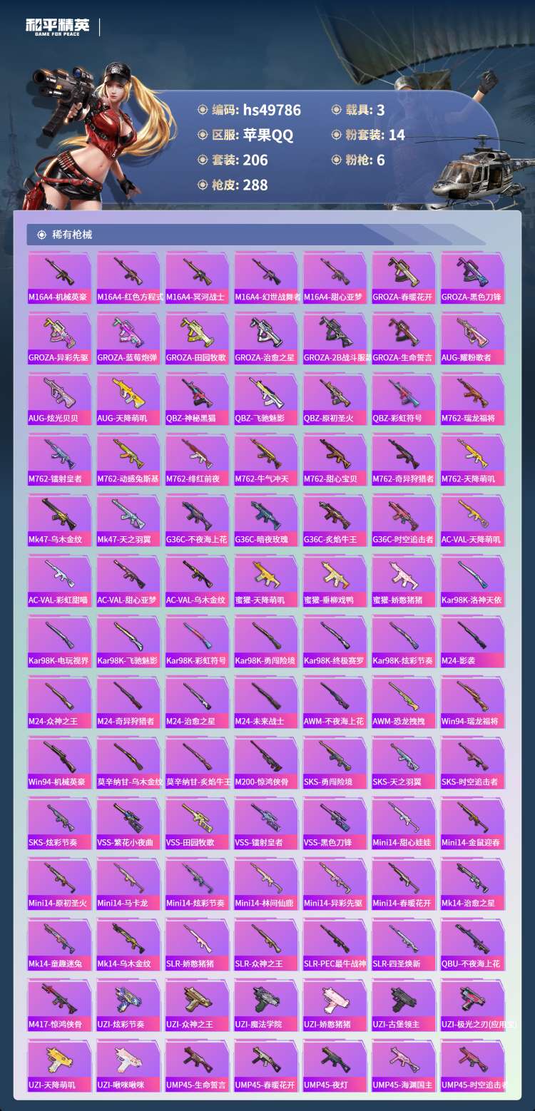 hs49786 苹果手Q-14王牌印记-14粉装-6特效枪-3载具-96821热力值-206套装-2