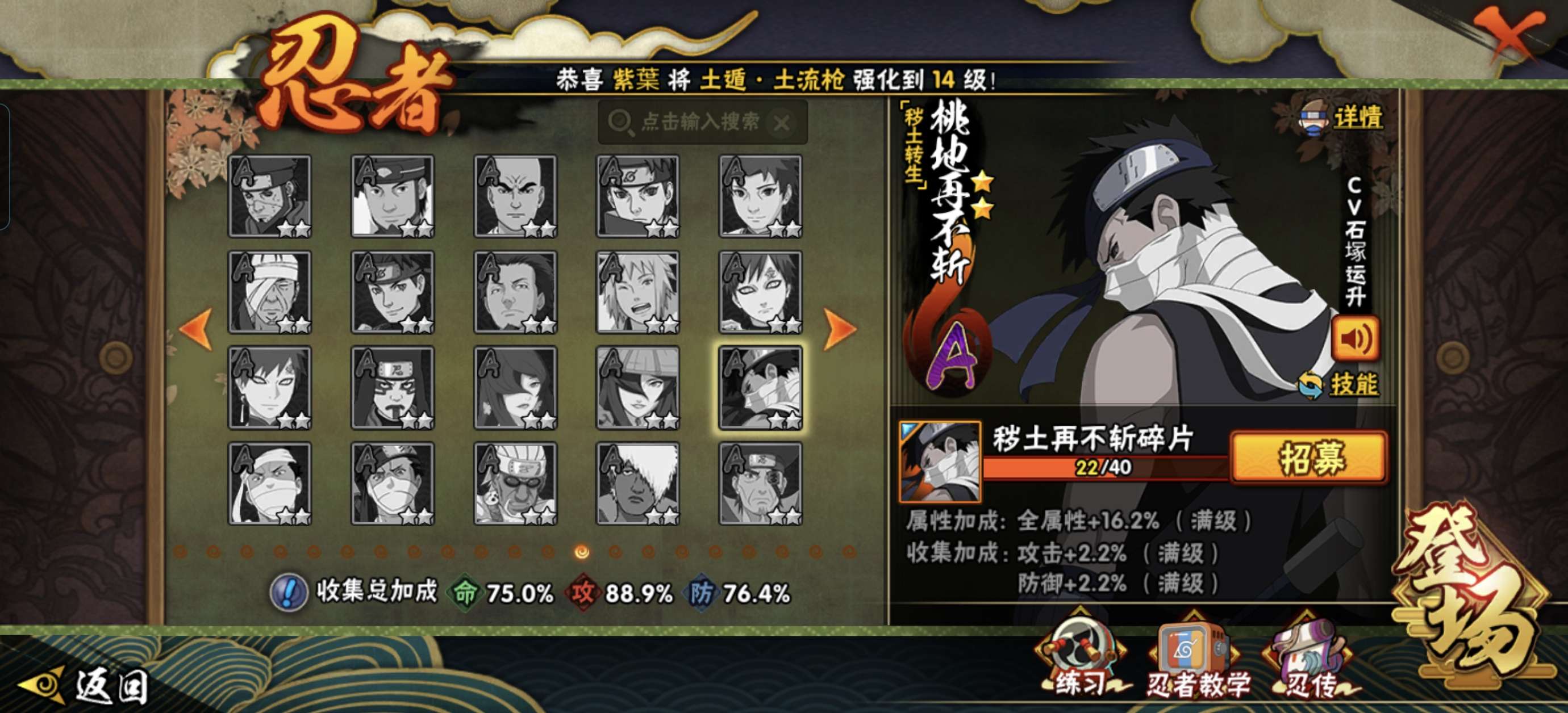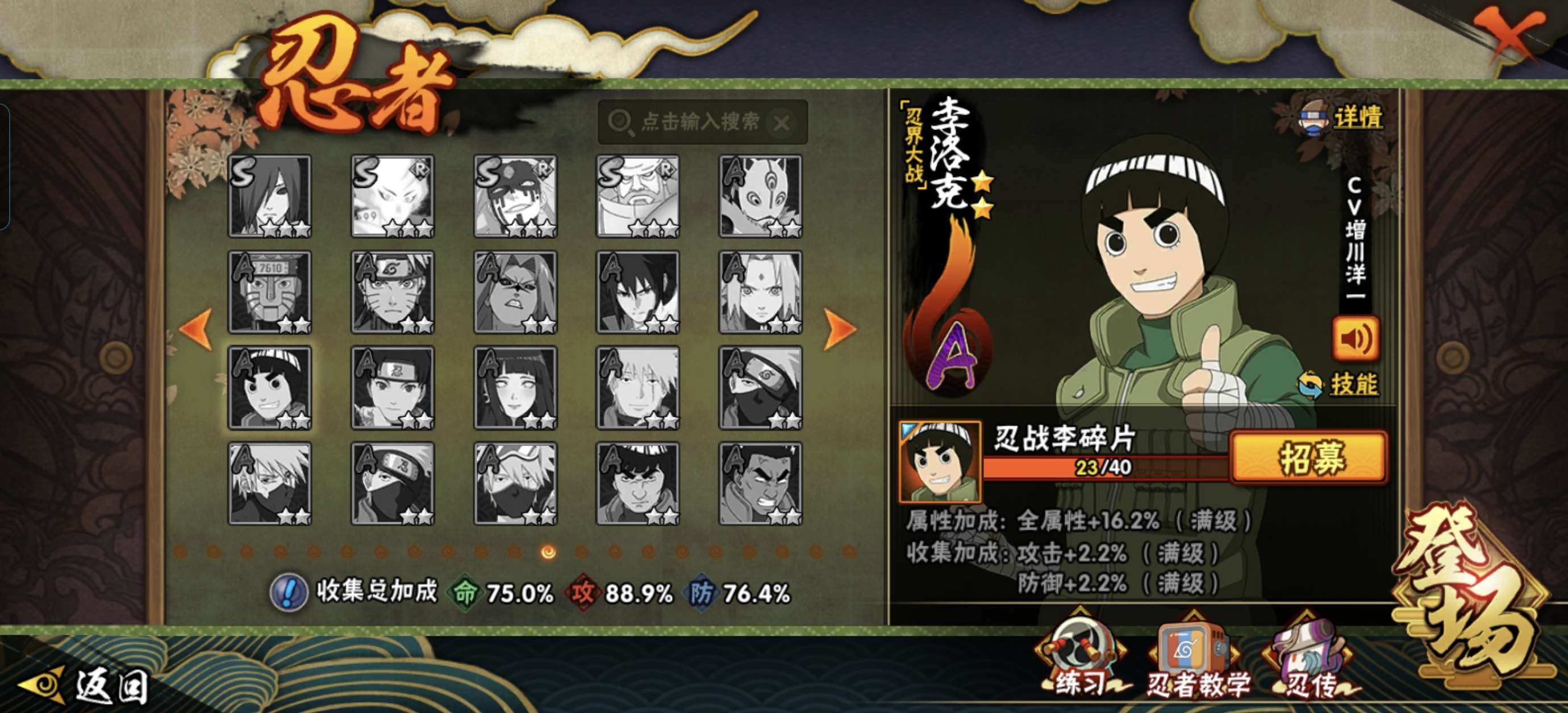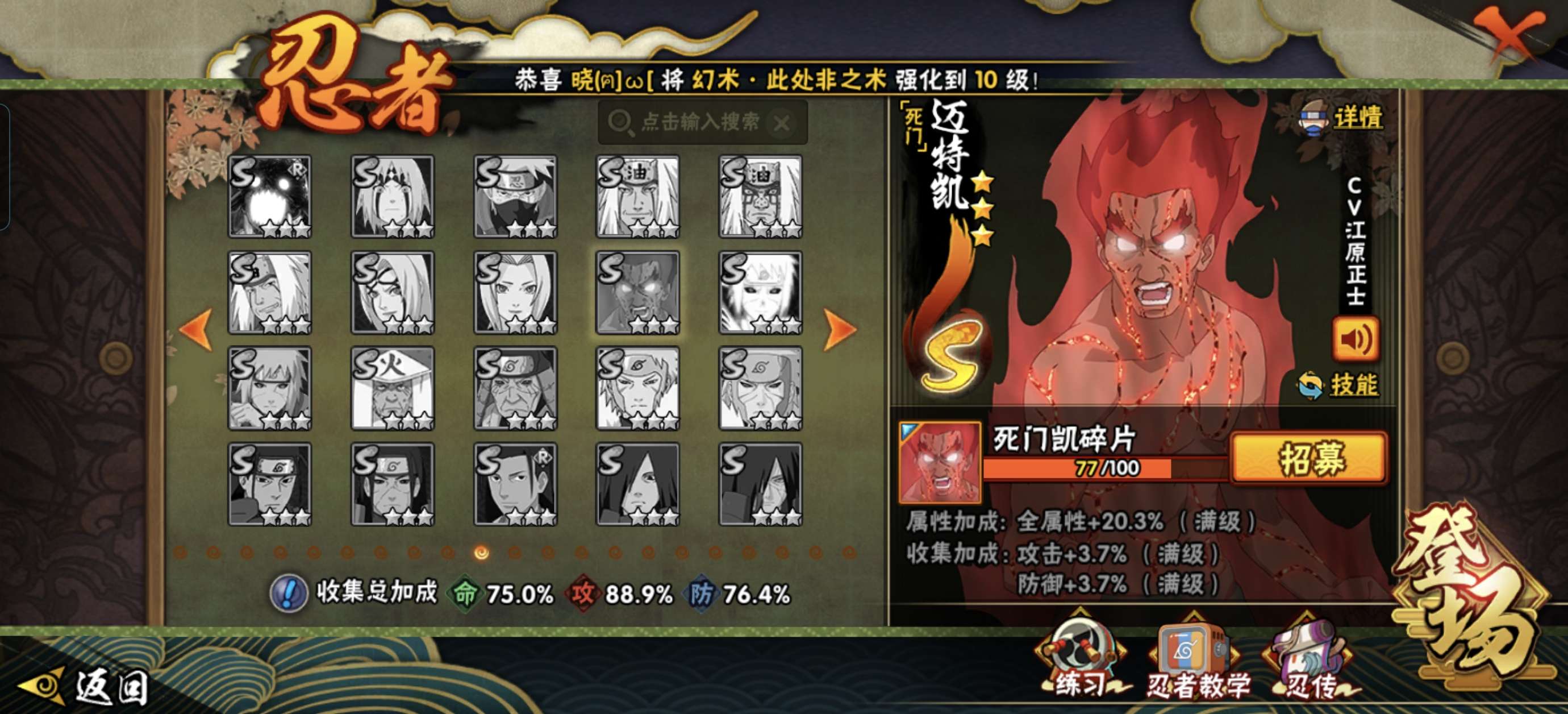 可二次 V7 绯流琥36/40死门凯77 解斑65秽土柱间60 须佐卡卡西50 小纲手小柱间小长门