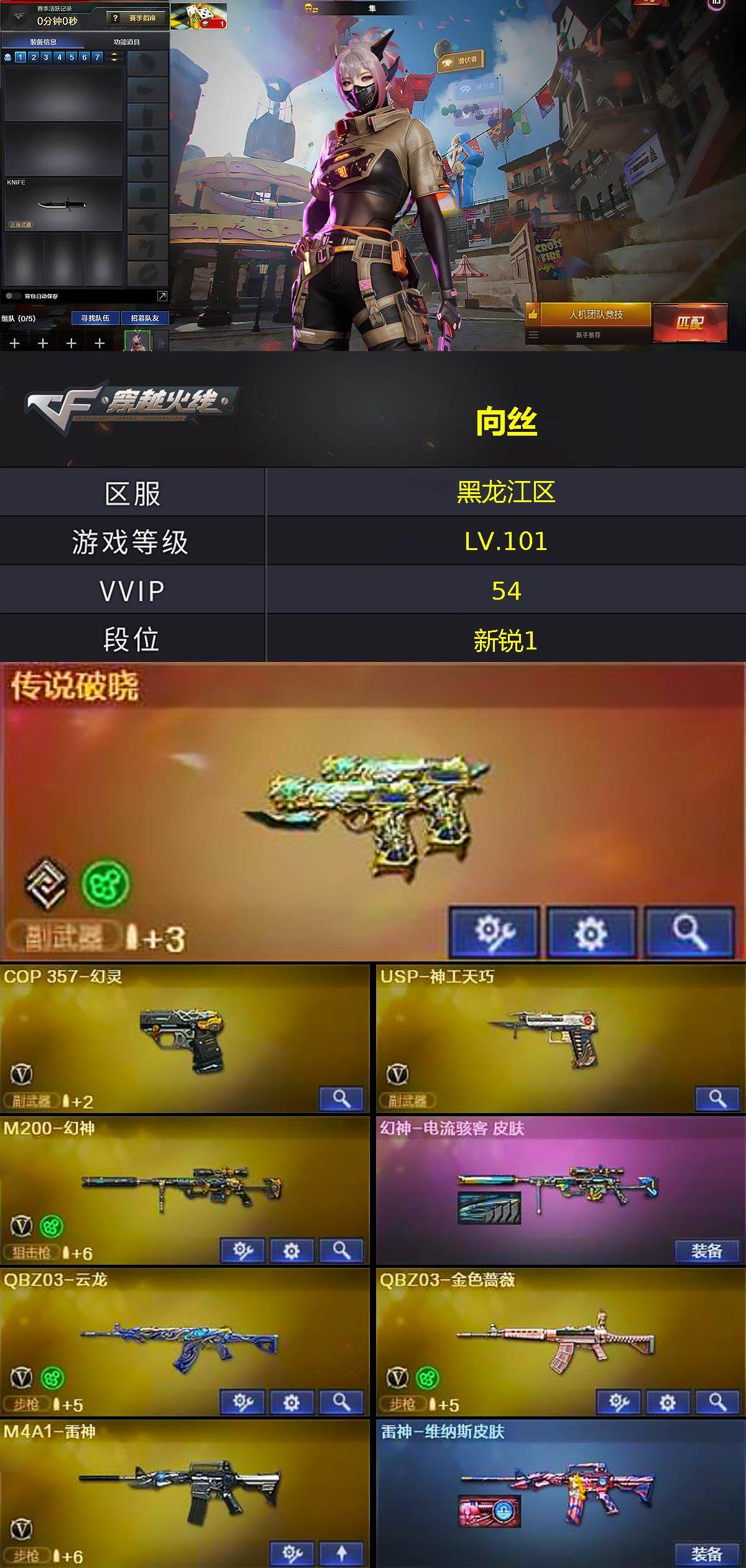 【热门武器】:传说破晓,QBZ03-金色蔷薇,M4A1-青龙,M200-幻神,毁灭-孙三炮,COP 357-幻灵,沙鹰-修罗