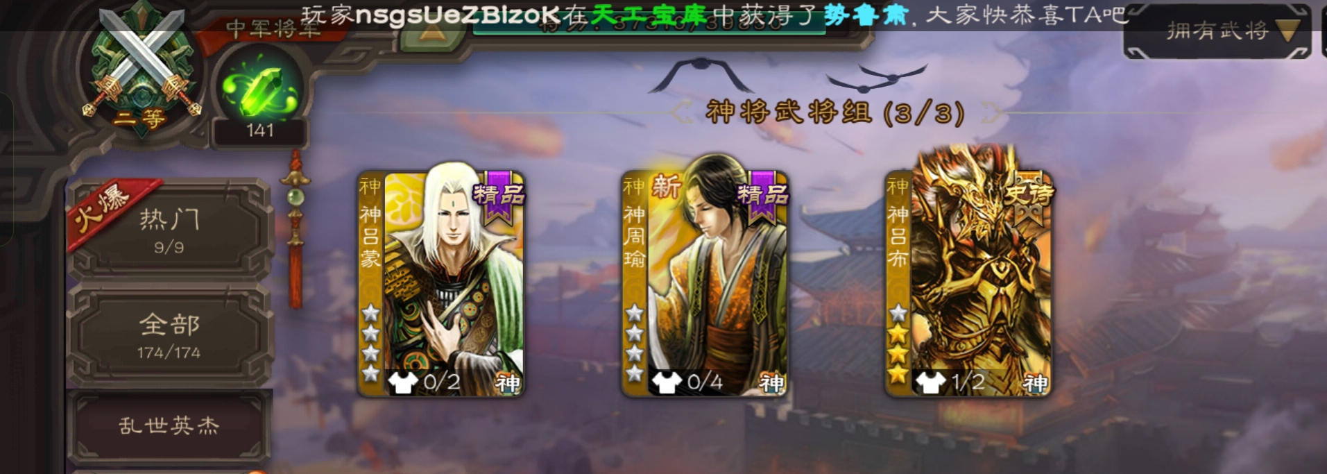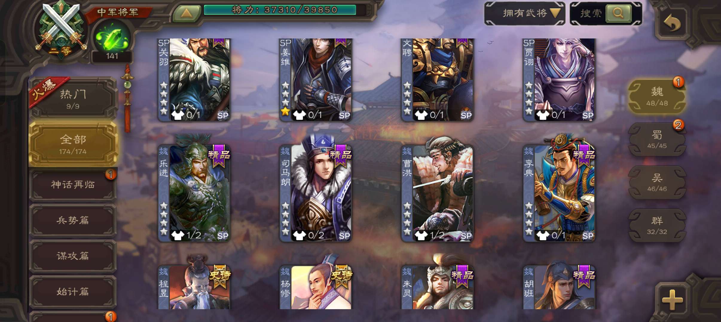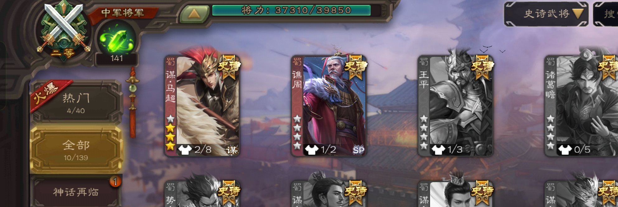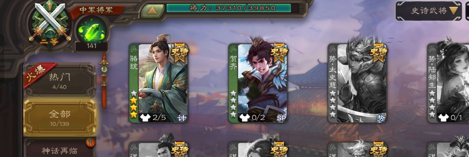 史诗武将数量: