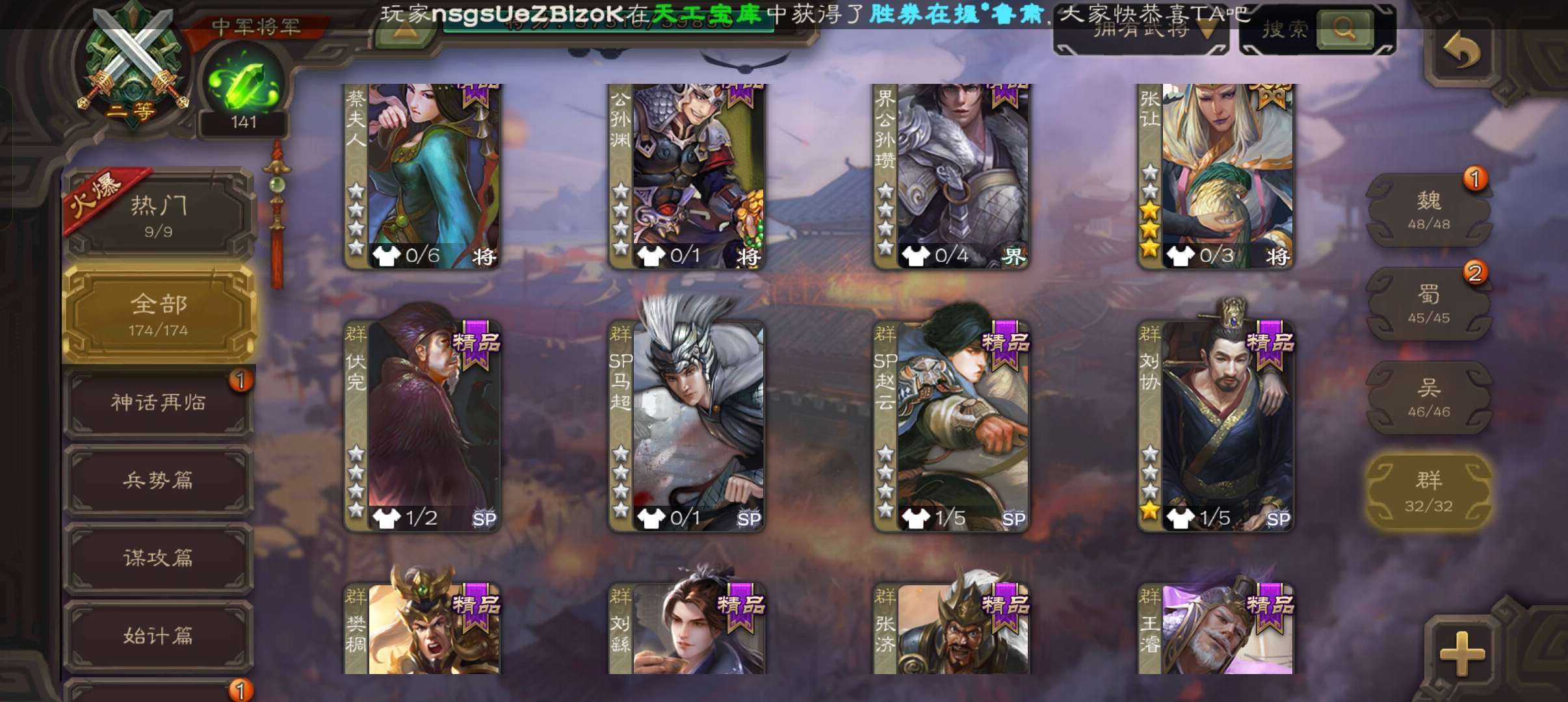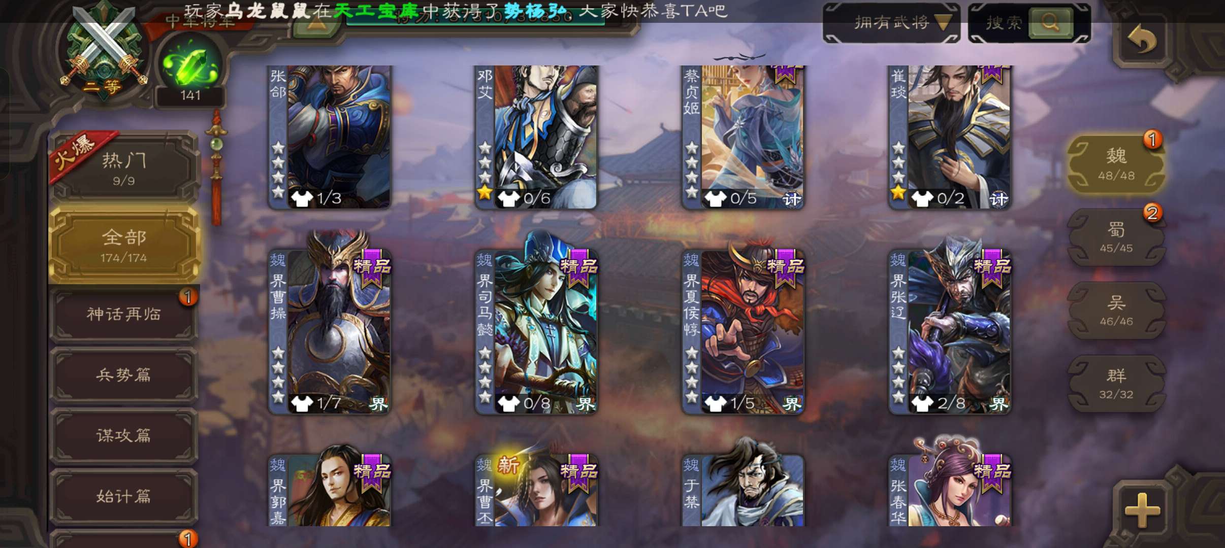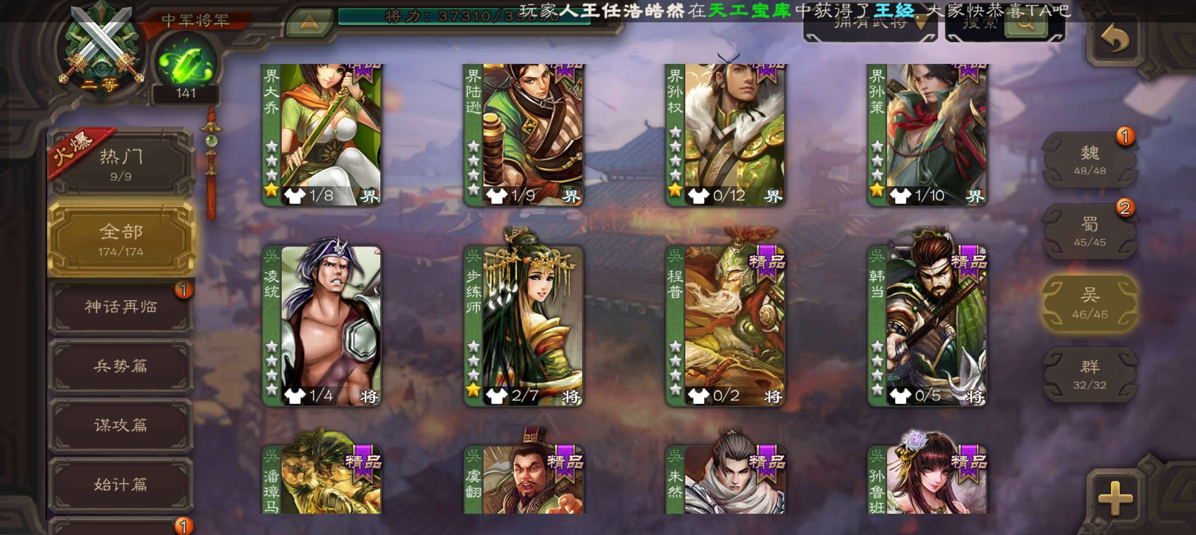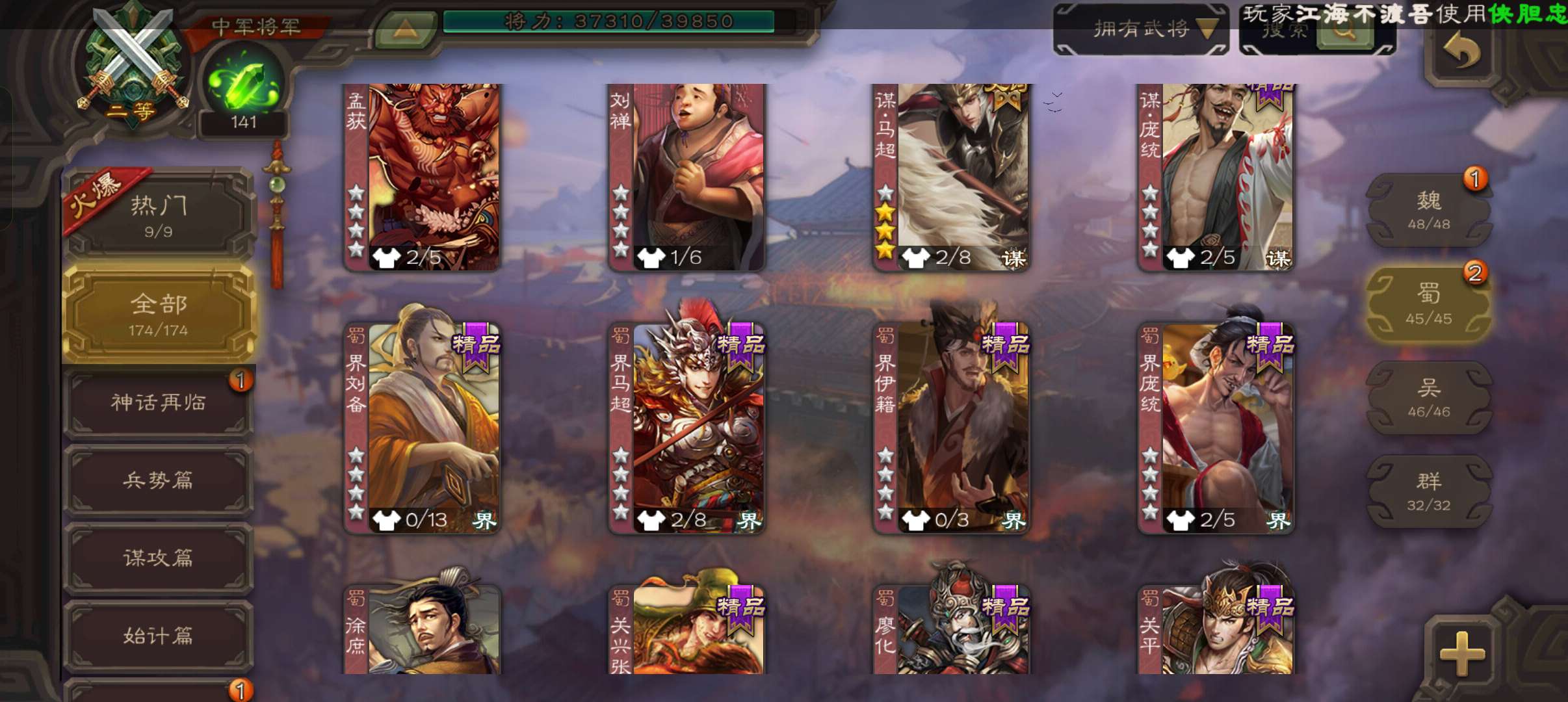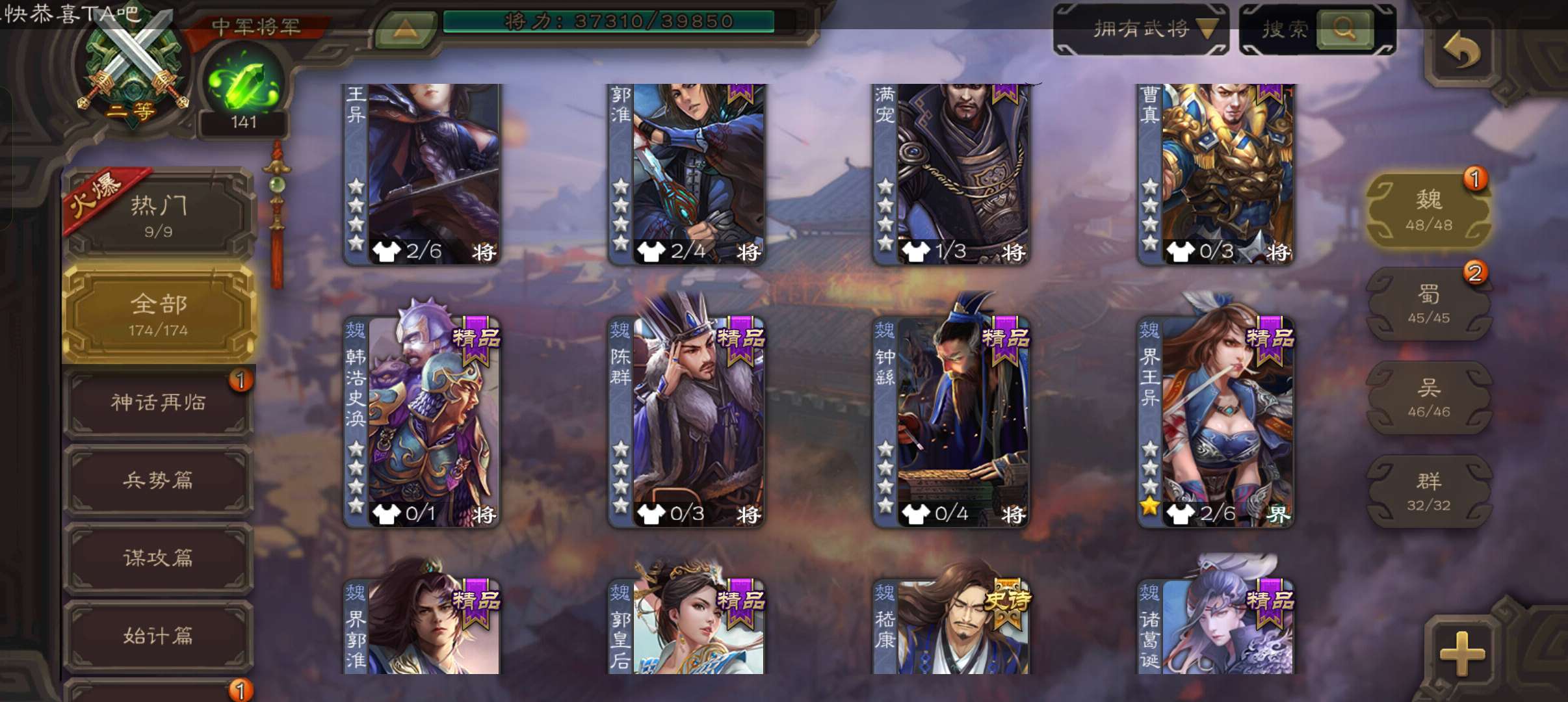 史诗武将数量: