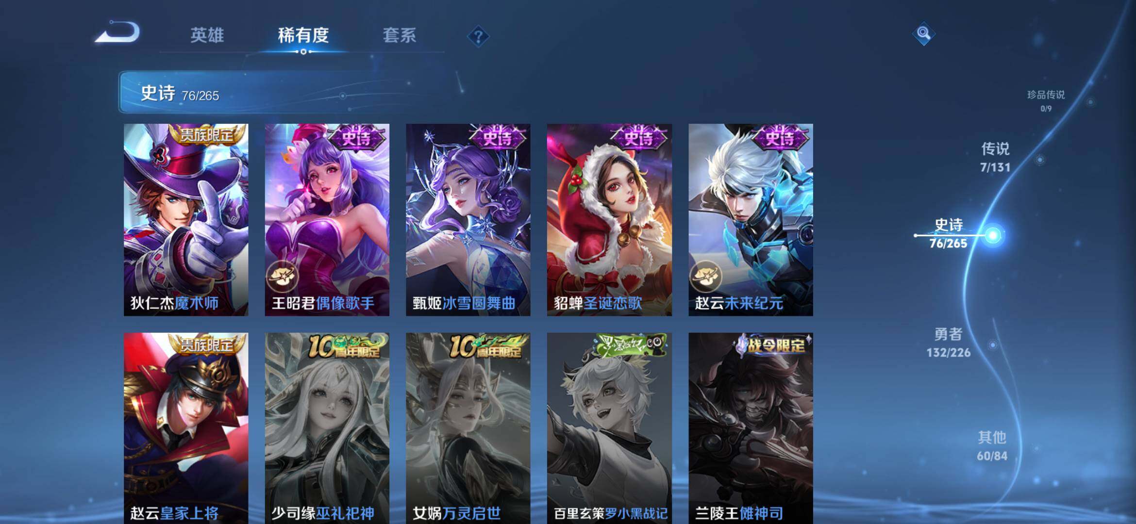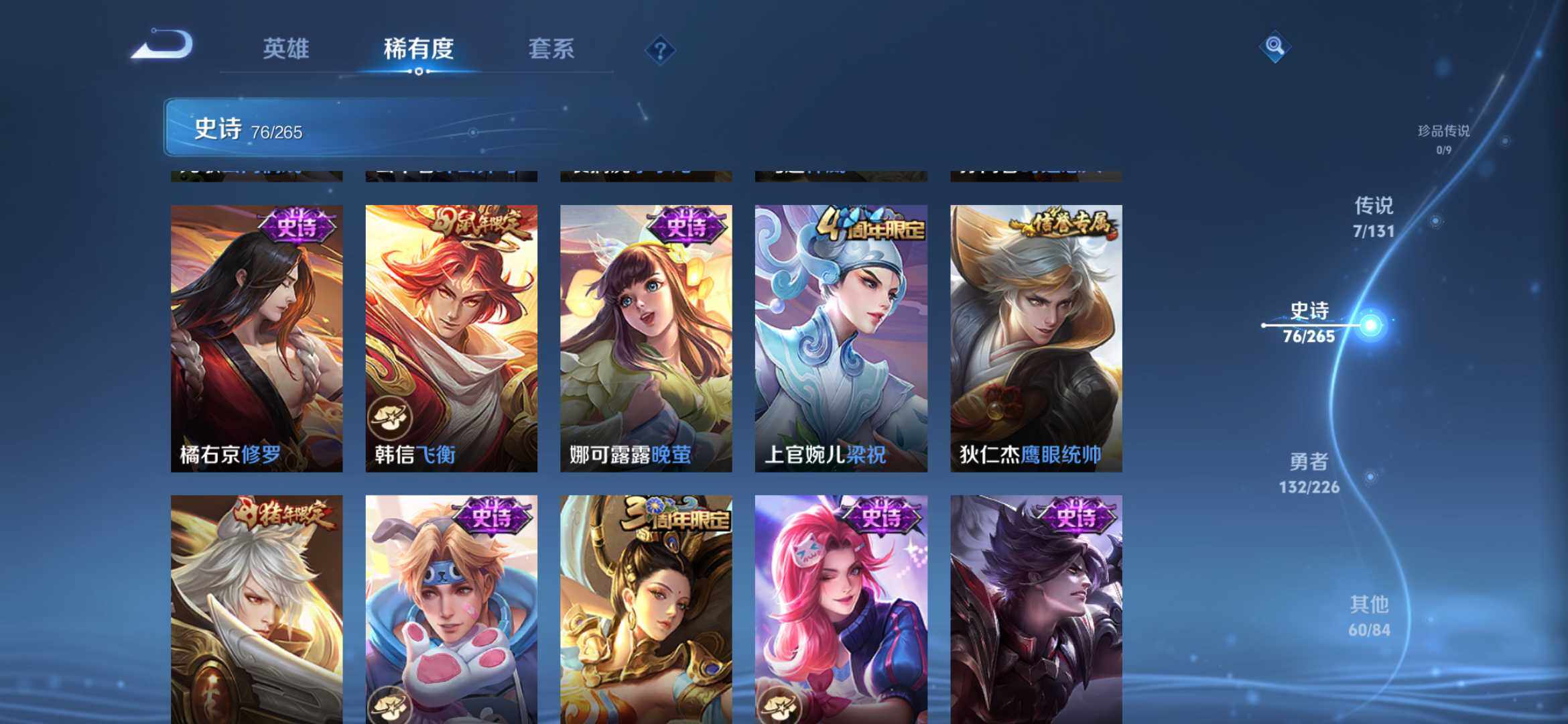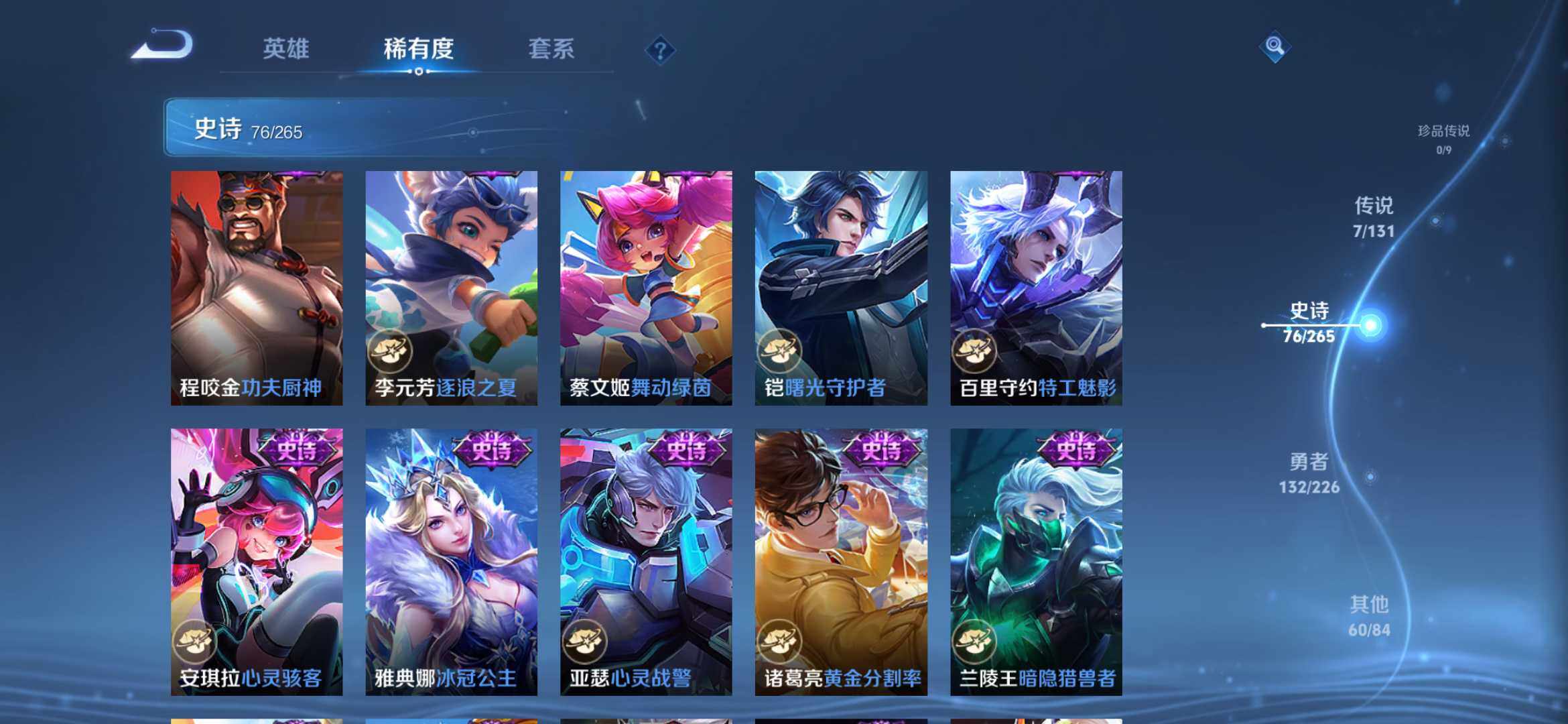 【276皮1典藏7传说 鸣剑曳影 齐天大圣 无双飞将 李逍遥 地狱之眼 地狱火 至尊宝】安卓Q-V7-至尊星耀I段位-125英雄-276皮肤-1典藏-0珍品无双-0无双-0珍品传说-7传说-76史诗
