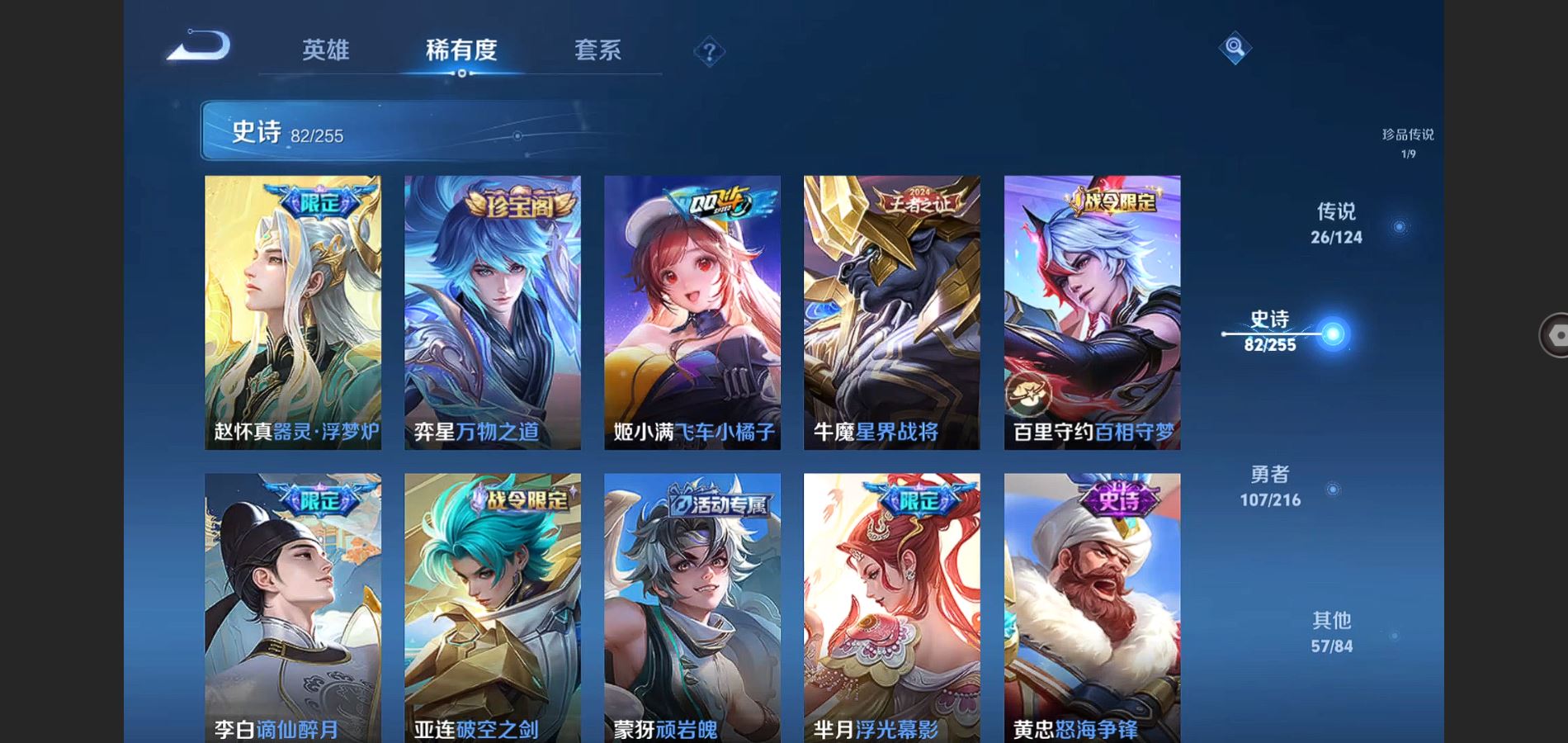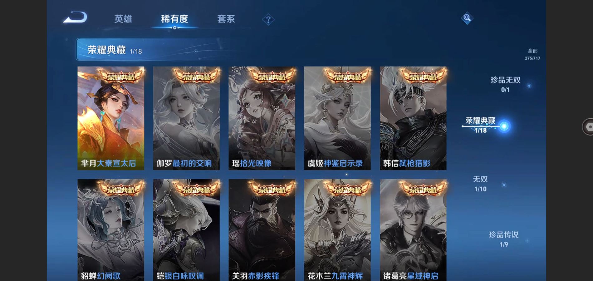 275皮肤1典藏1无双1珍品传说26传说 【全皮英雄】 李信全皮 影全皮 【典藏】 大秦宣太后 【无