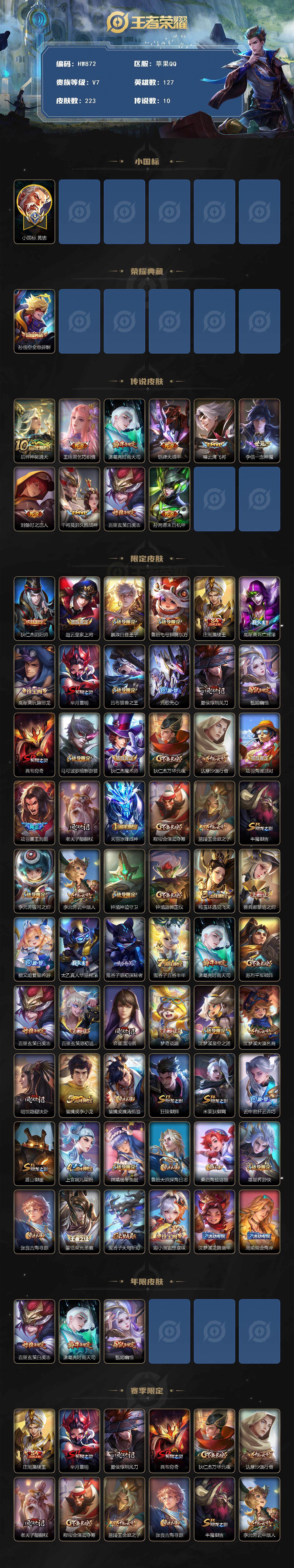 iOS 小魔方/国服黄忠/金标万战敖隐/发育路47段/全能高手/夺宝306抽 223皮肤1典藏10传说 全息碎影 神树通天 乞巧织情 时雨天司 绛天战甲 云鹰飞将 一念神魔 时之恋人 久胜战神 白虎志 末日机甲