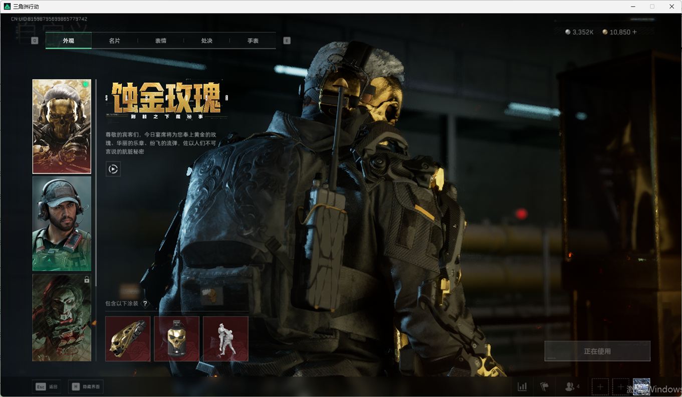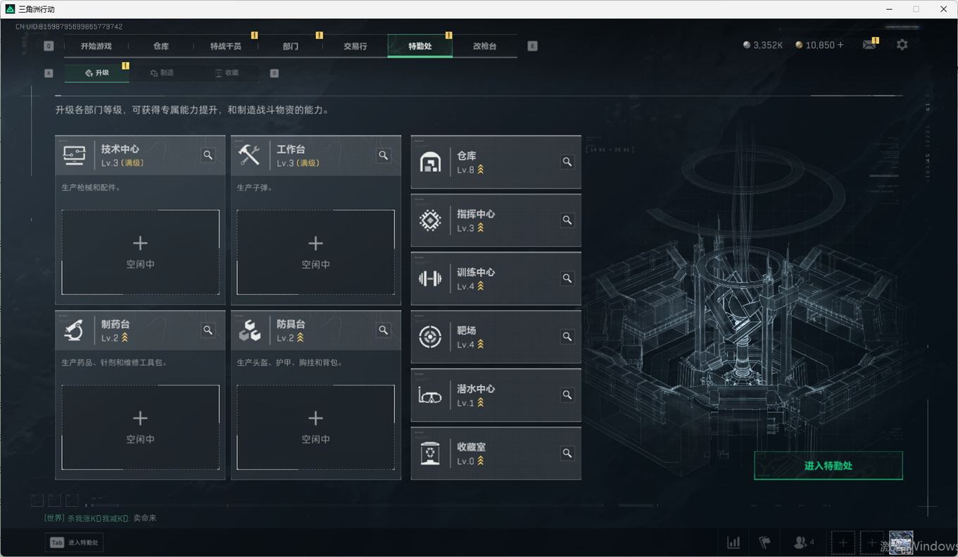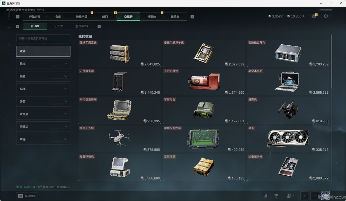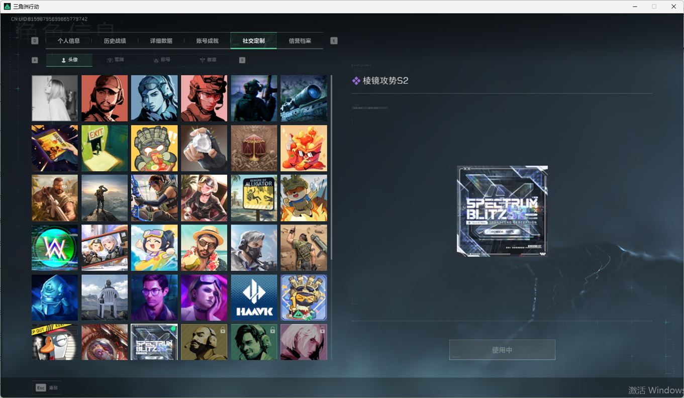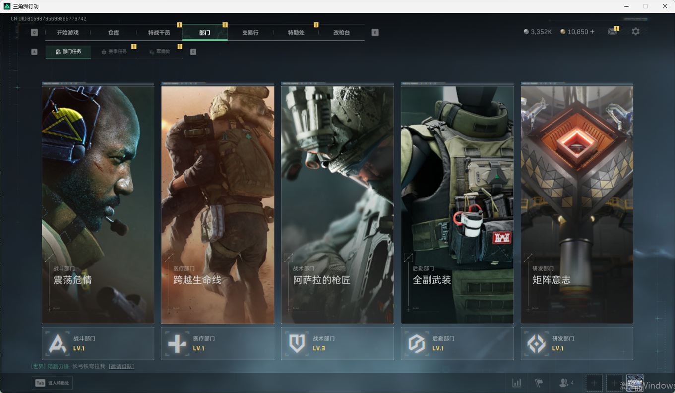 SSN6270/QQ区/哈夫币335W/三角券10763/总资产96.5M/行动等级60/战场等级2