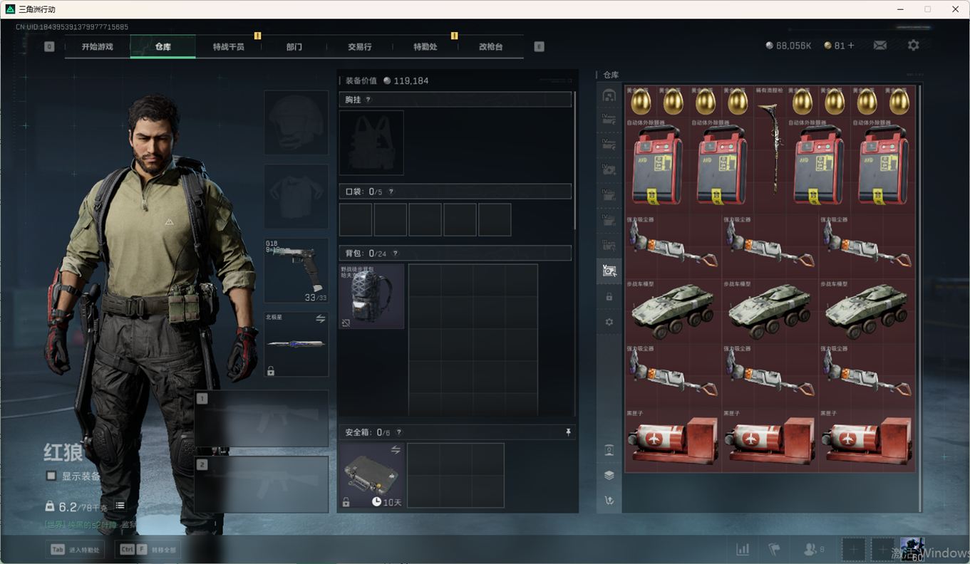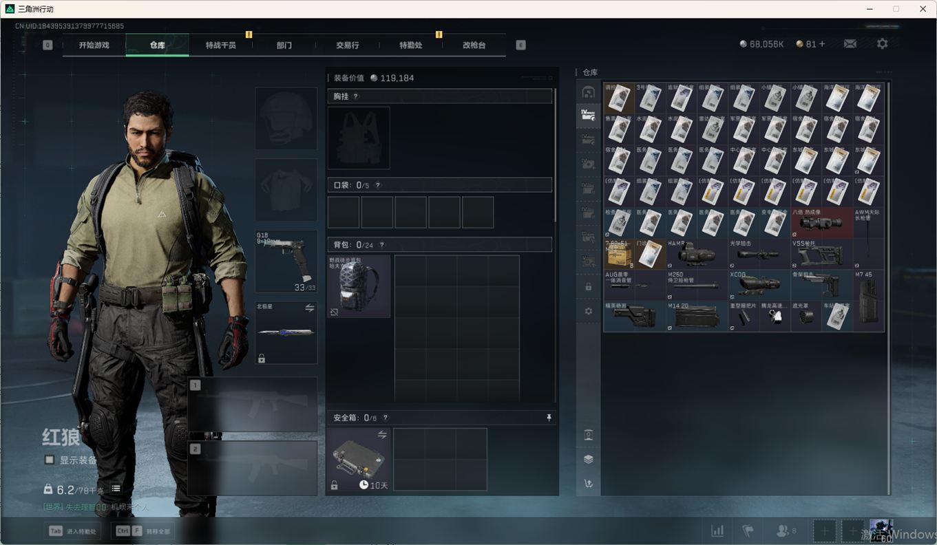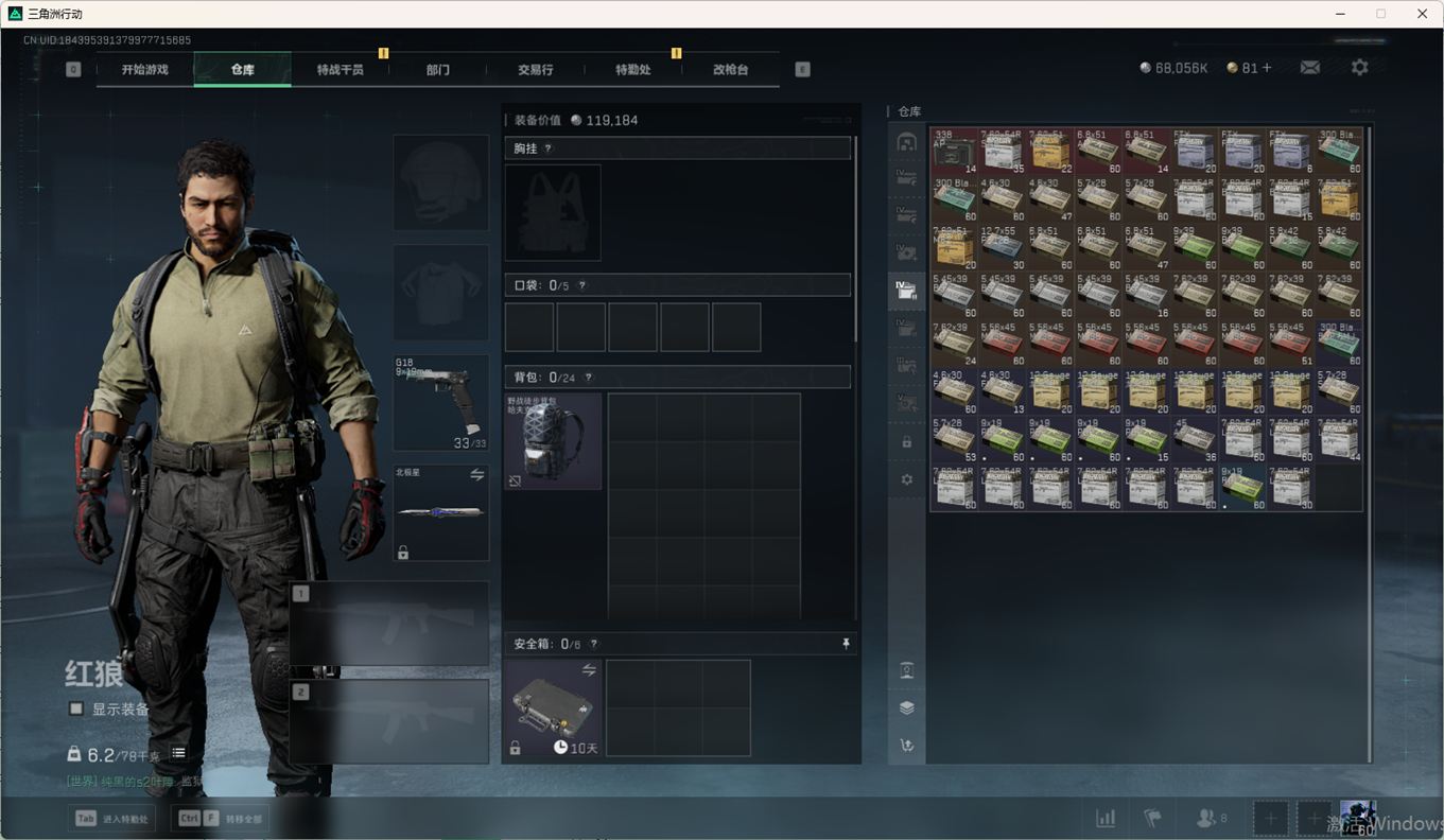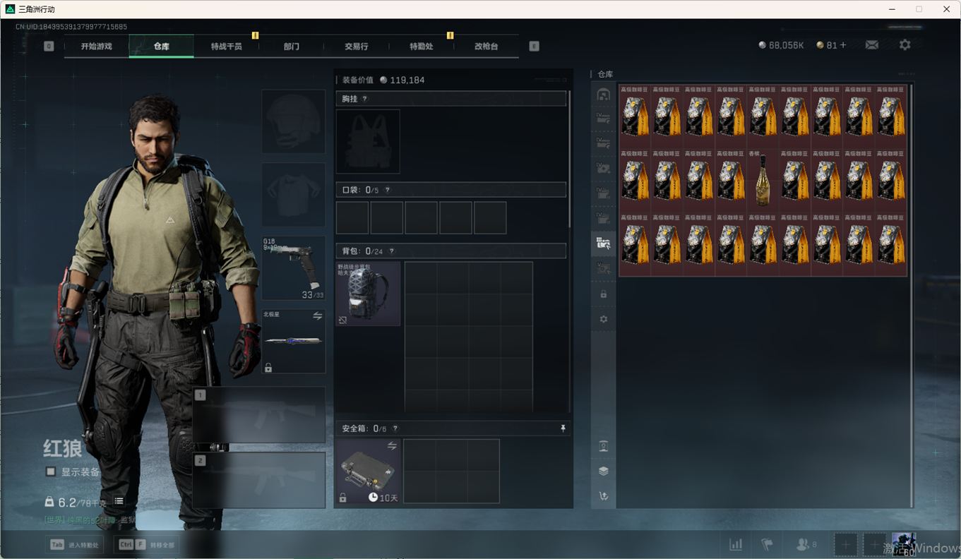 SSN6291/QQ区/哈夫币6805W/总资产393M/行动等级60/战场等级17/高级安全箱3X