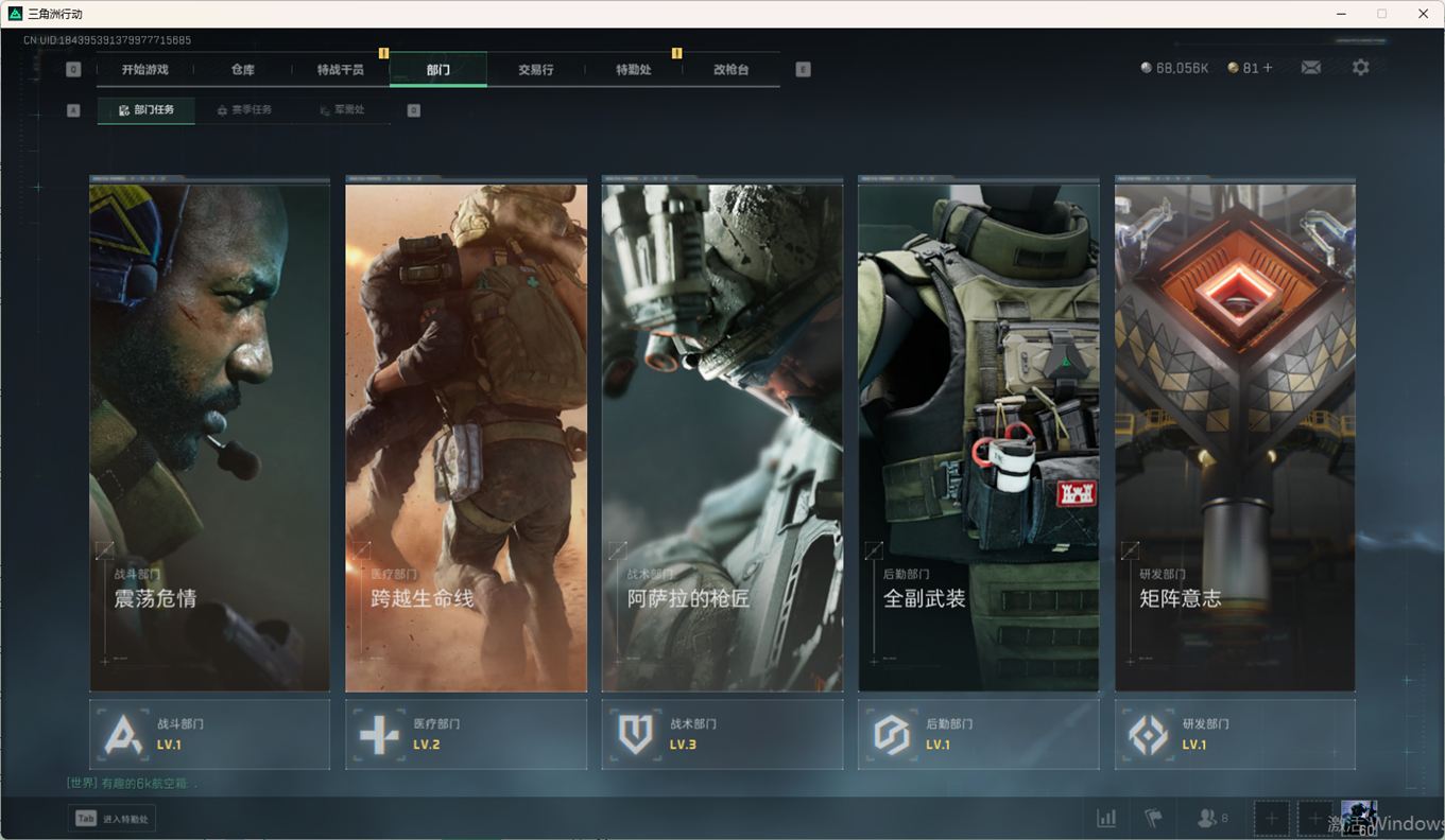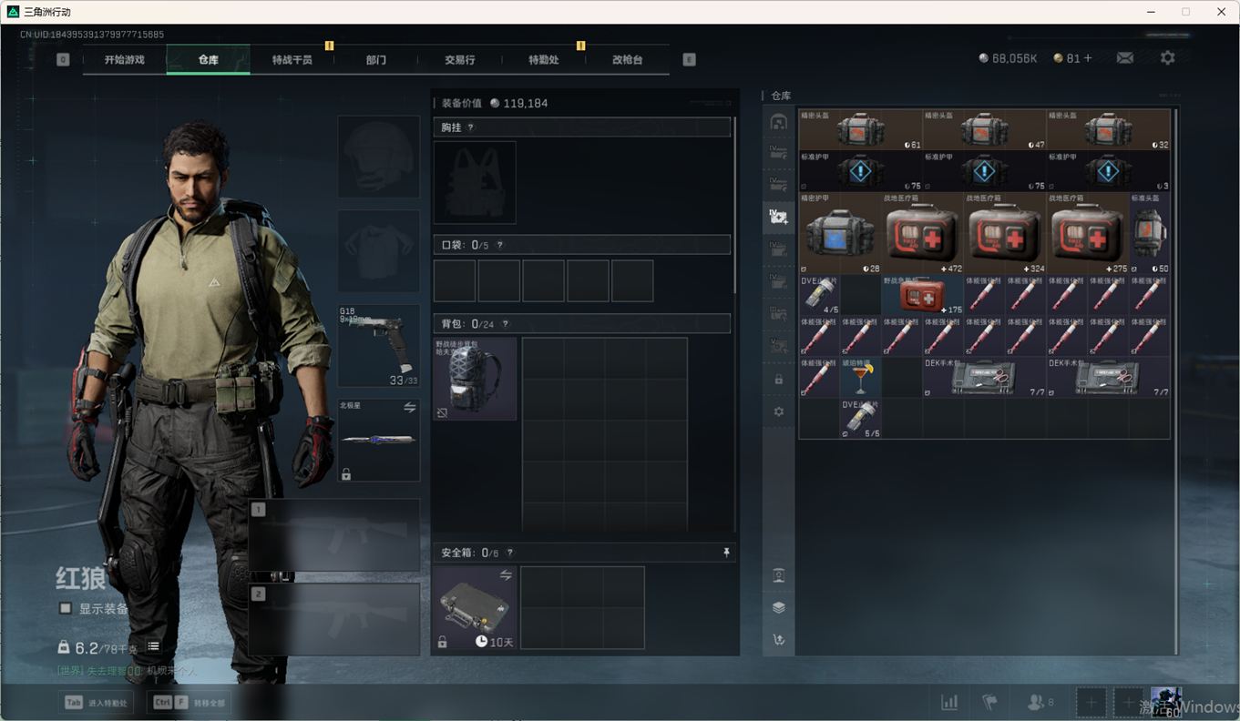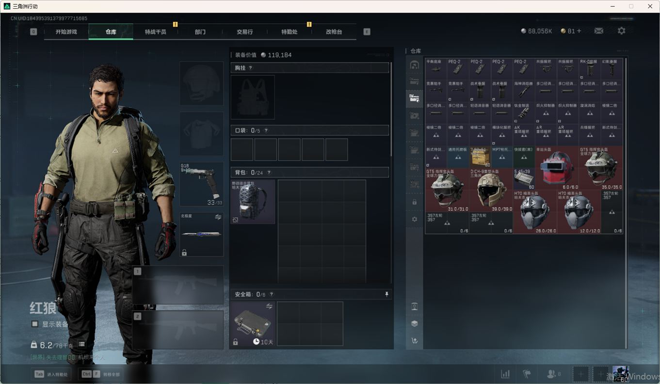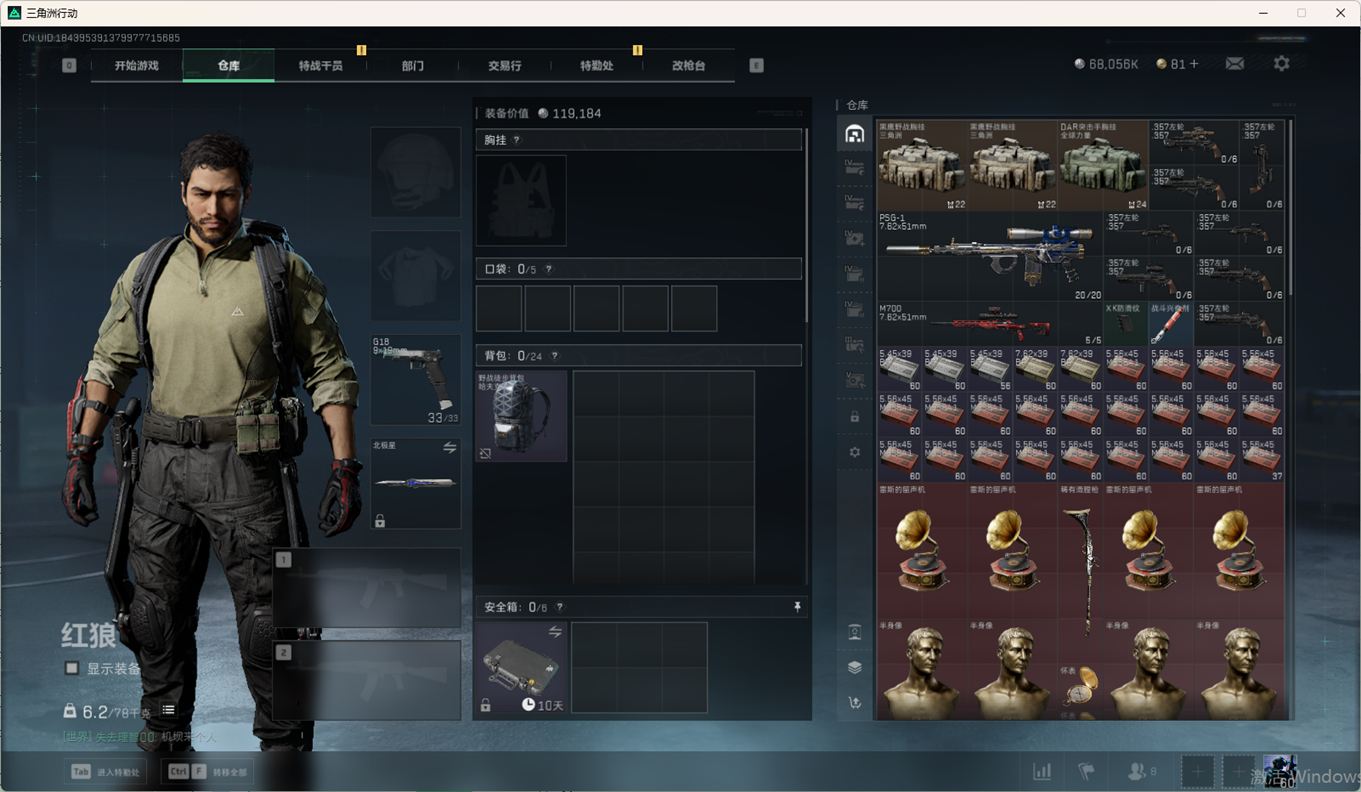 SSN6291/QQ区/哈夫币6805W/总资产393M/行动等级60/战场等级17/高级安全箱3X