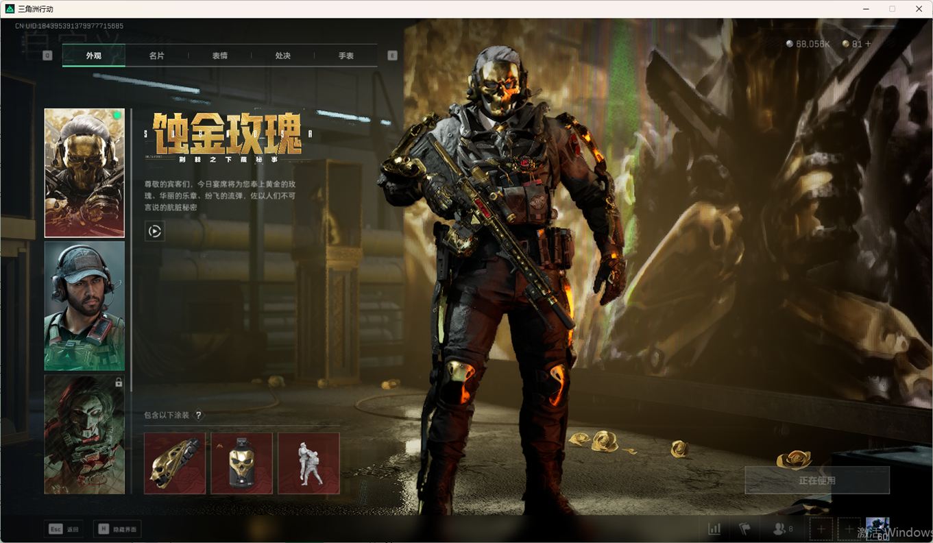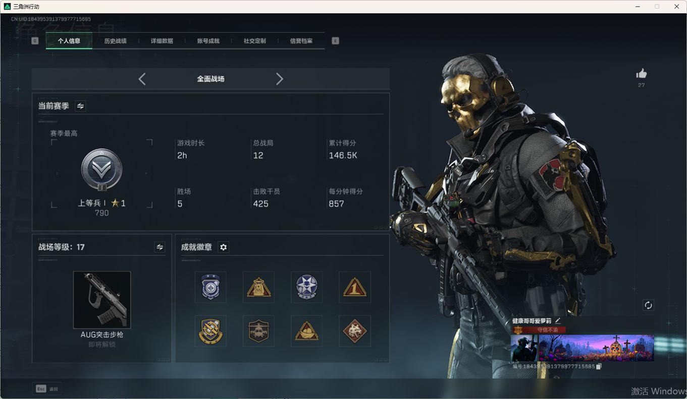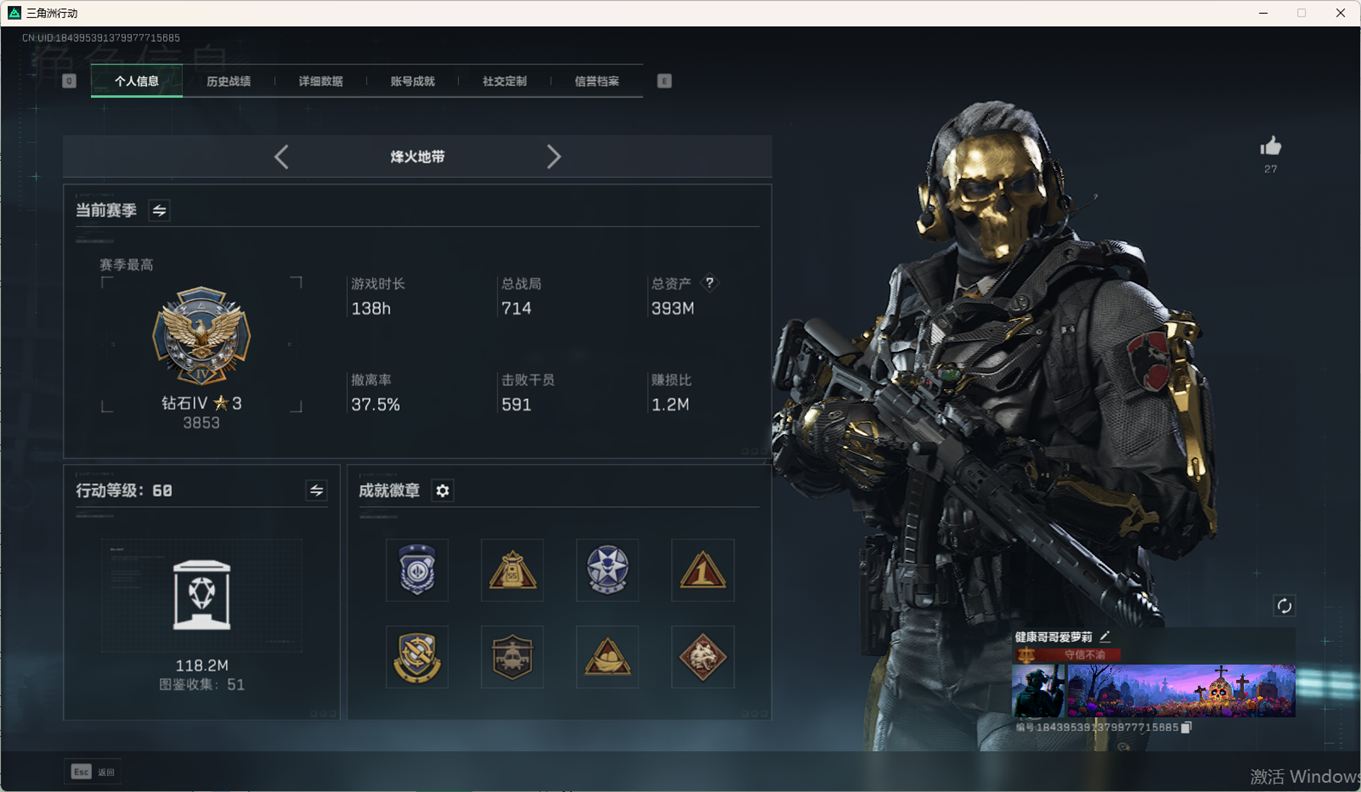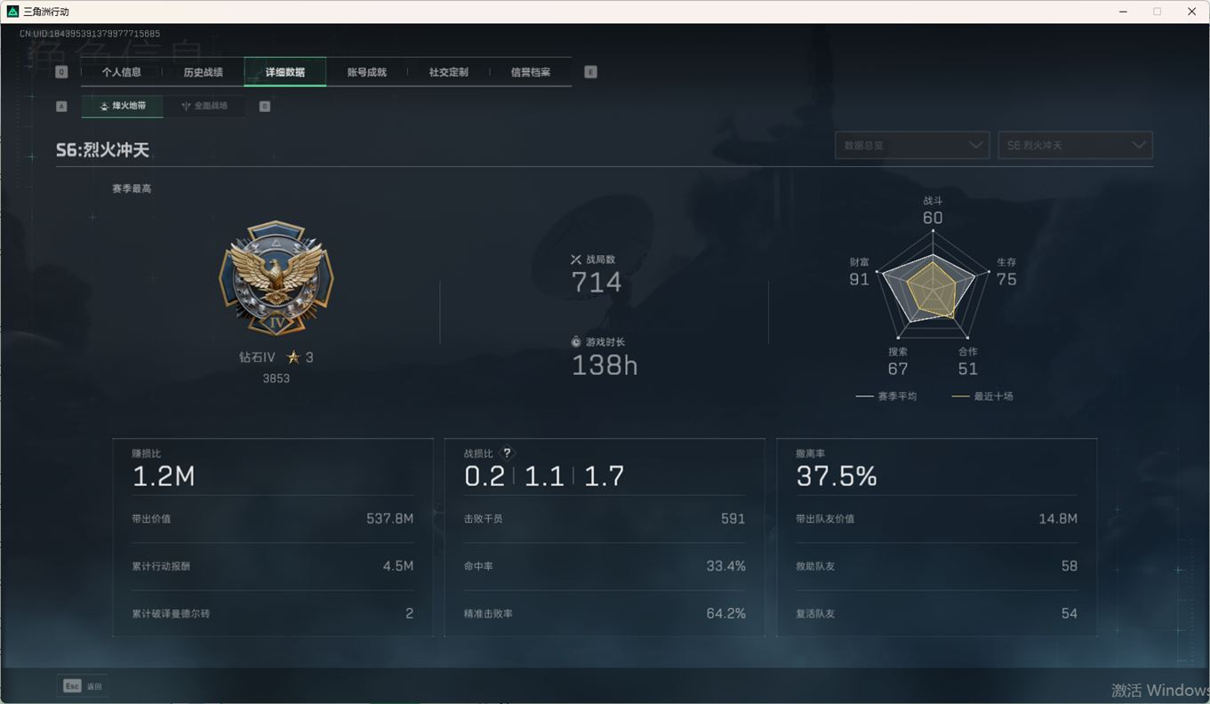 SSN6291/QQ区/哈夫币6805W/总资产393M/行动等级60/战场等级17/高级安全箱3X