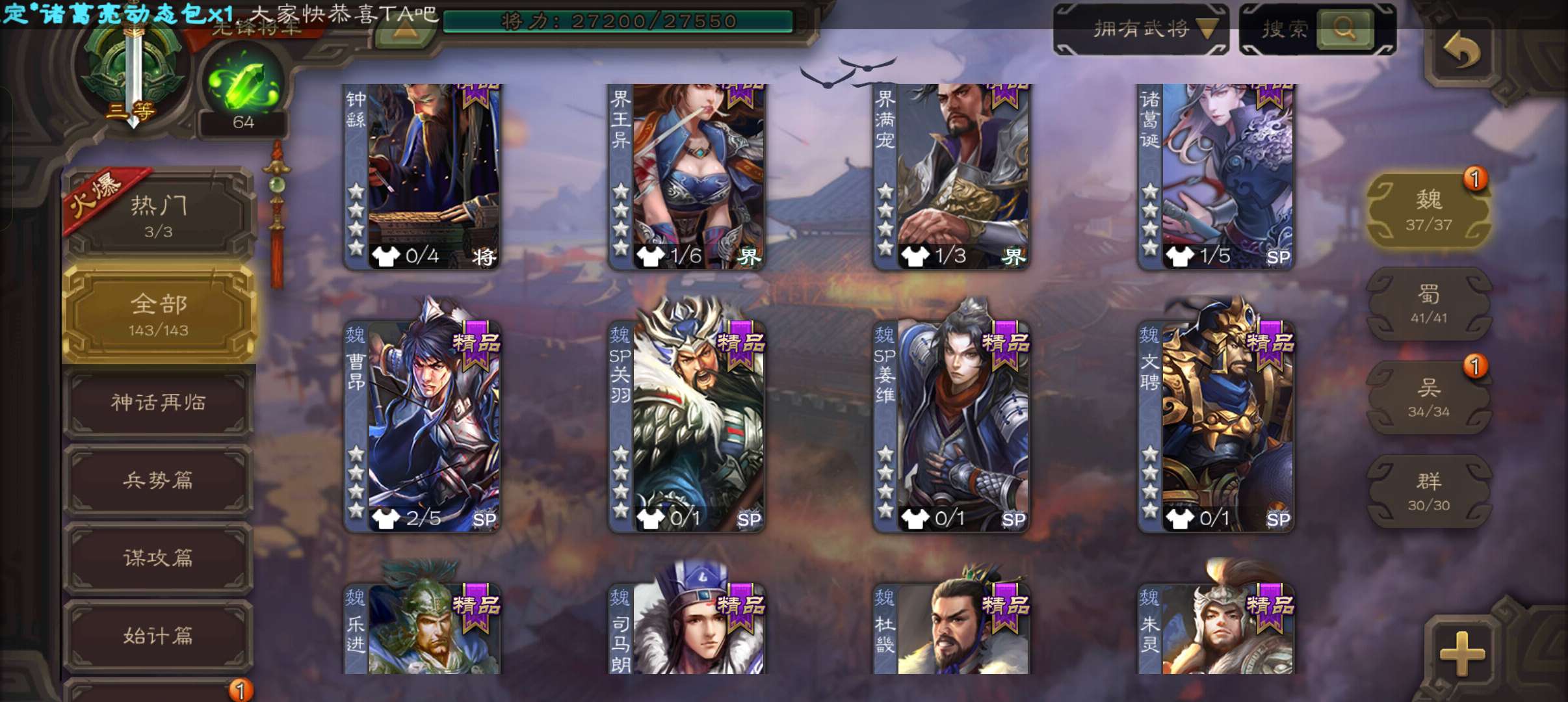5.8万豆4万羽毛,回廊动白马神吕布谋马超谯周贺齐5史诗先锋,回廊界黄盖神吕蒙动曹冲界满宠143将