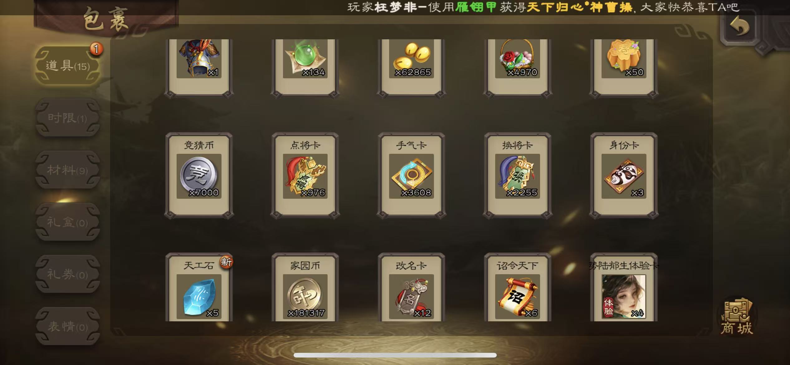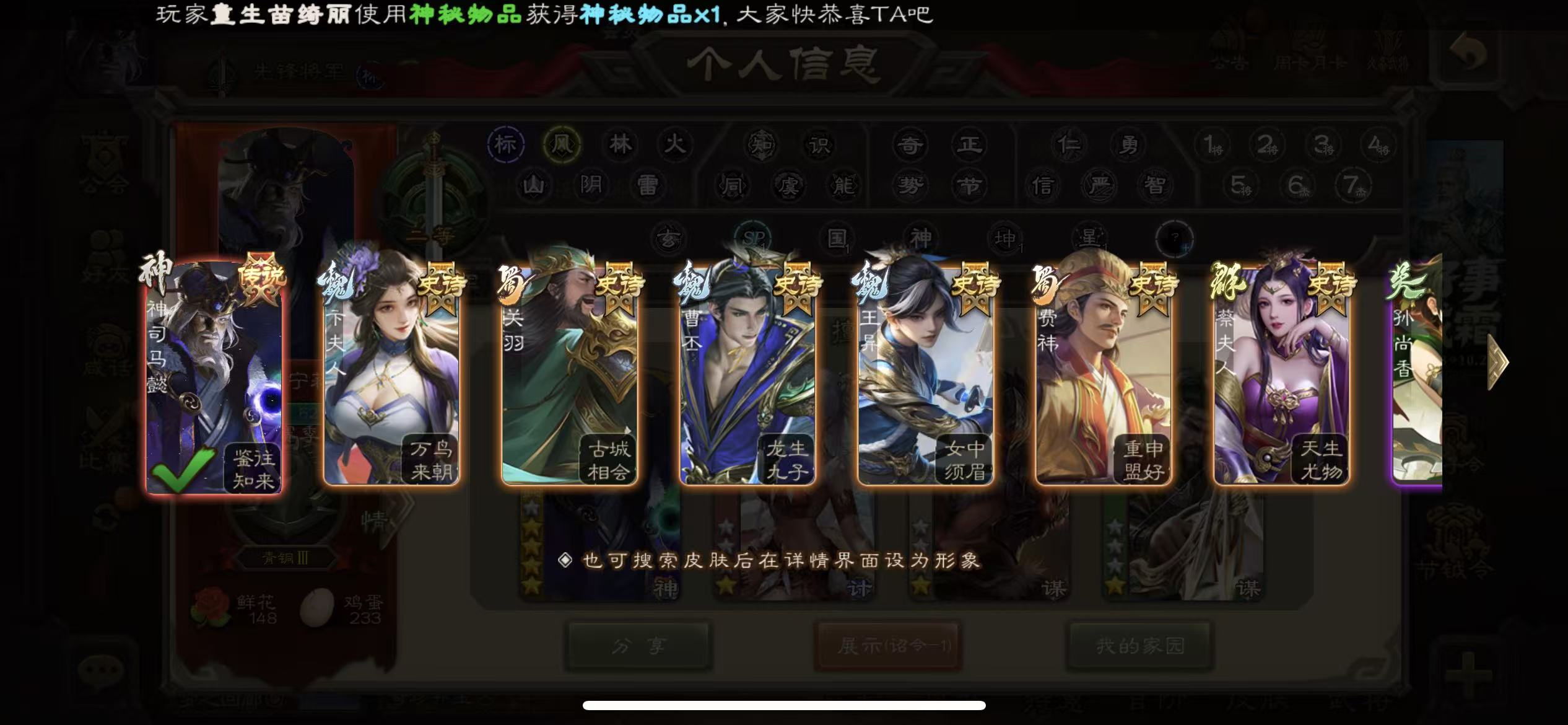 先锋动态神司马懿花花1.47万将魂三卡