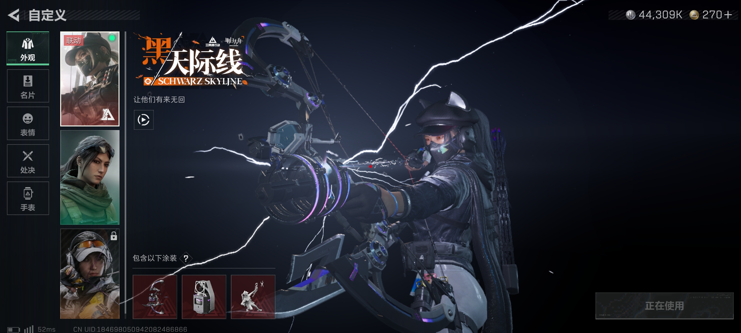 骇爪-水墨云图,露娜-黑·天际线,威龙-壮志凌云,蜂医-送葬人·无题密令,无名-夜鹰 黑海, 北极星