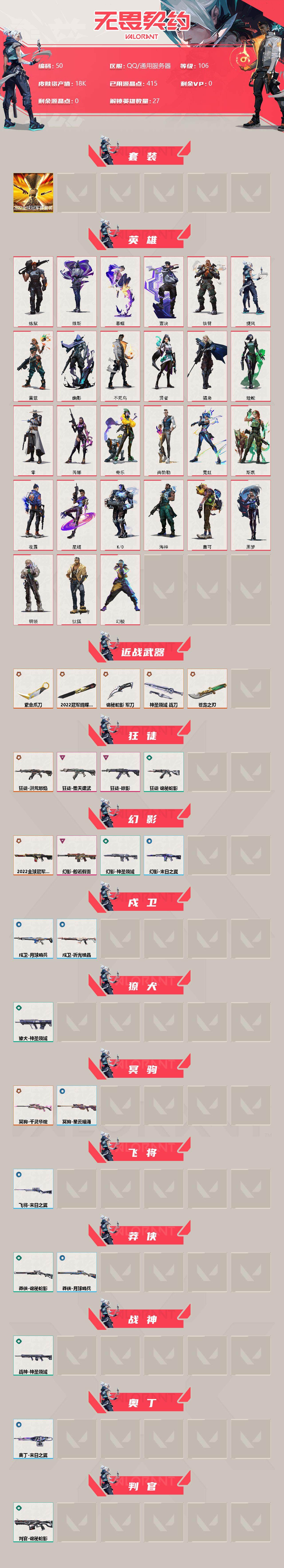 【英雄】:幻棱,炼狱,维斯,暮蝶,钛狐,壹决,铁臂,捷风,雷兹,幽影,不死鸟,贤者,猎枭,蝰蛇,零,芮娜,奇乐,尚勃勒,霓虹,斯凯,夜露,星礈,K/O,海神,盖可,黑梦,钢锁