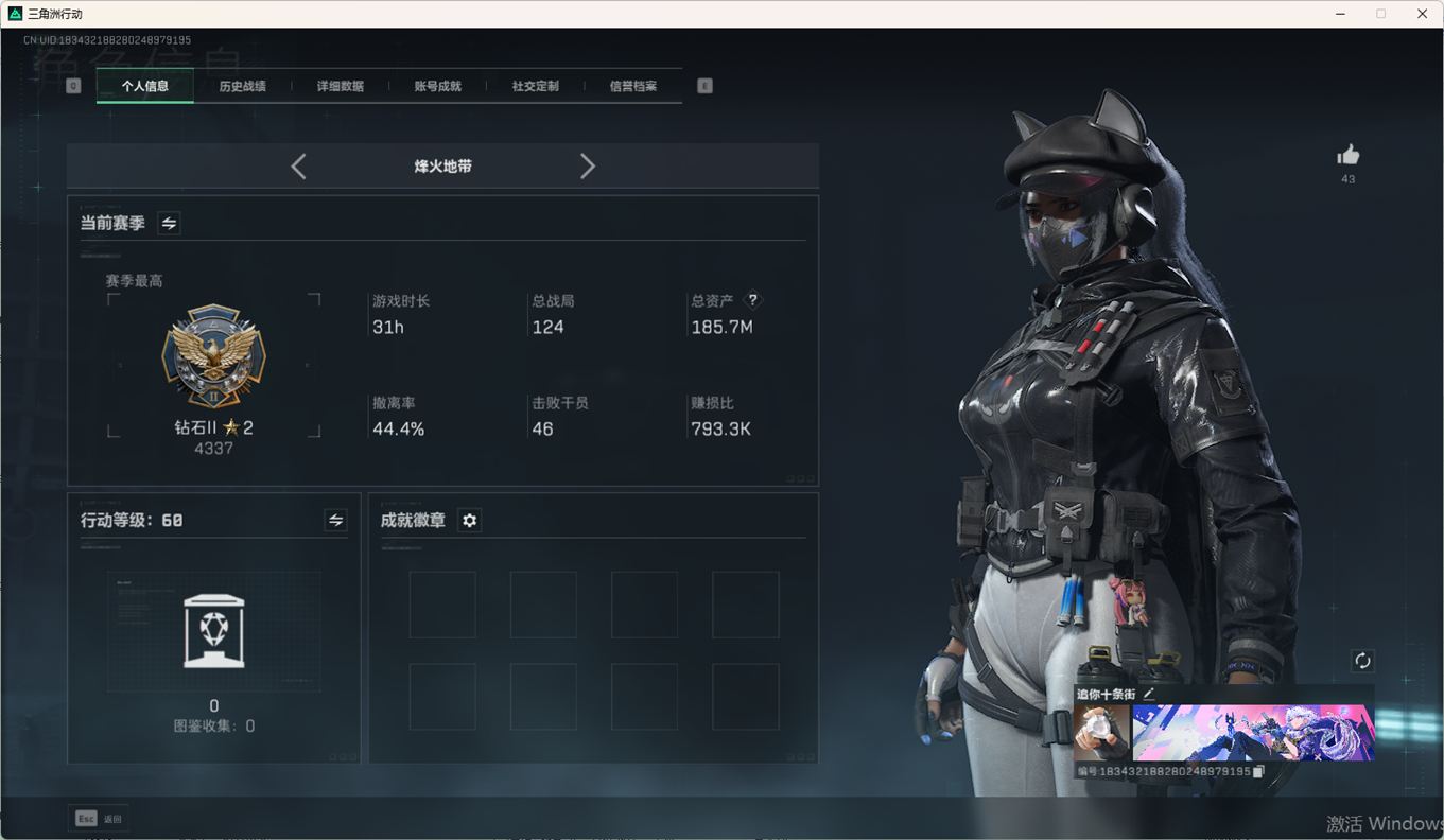 SSN6317/v区/哈夫币5300W/总资产185.7M/行动等级60/战场等级31/烈火冲天赛