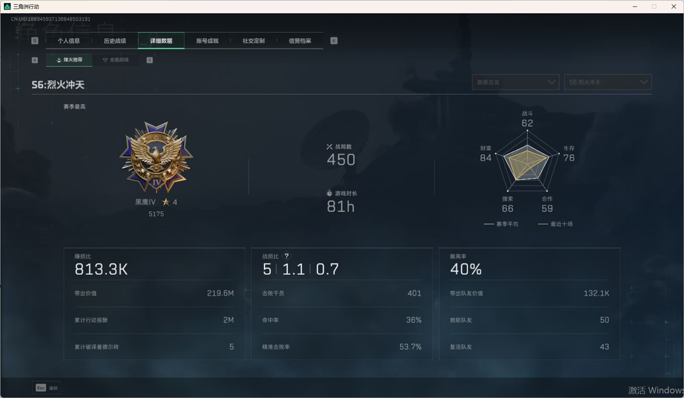 SSN6320/QQ区/哈夫币1487W/总资产144.1M/行动等级60/战场等级50/烈火冲天赛