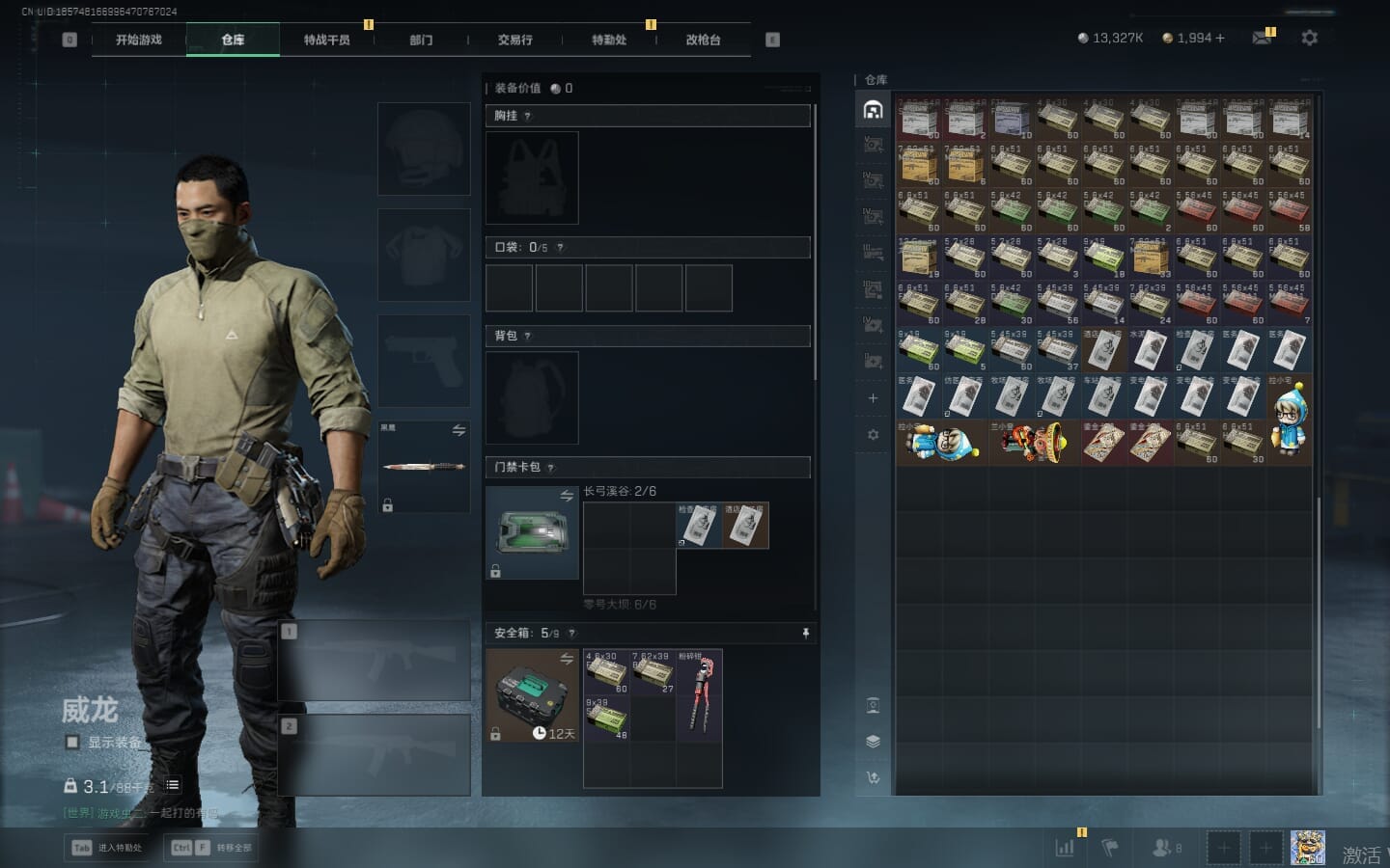 SSXH8787/V区/哈夫币1332W/总资产210.7M/行动等级60/战场等级16/顶级安全