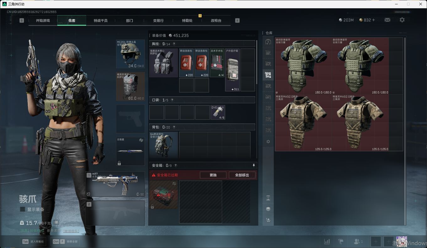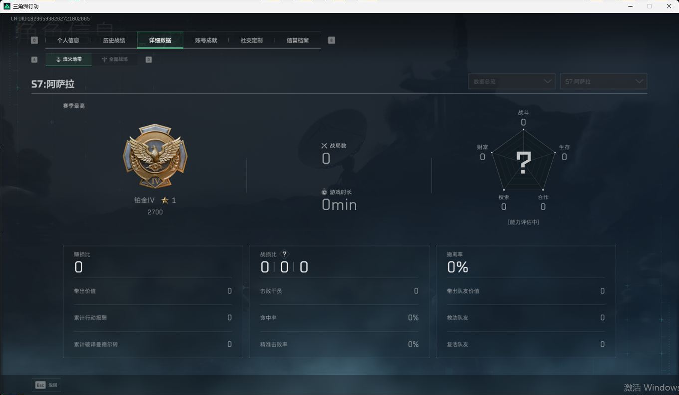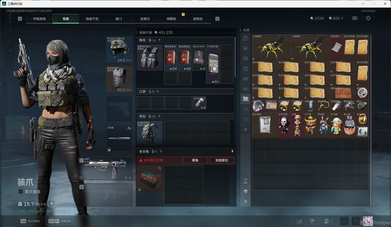 SSN6344/QQ/哈夫币203M/总资产394.1M/行动等级60/战场等级50/近战/北极星/