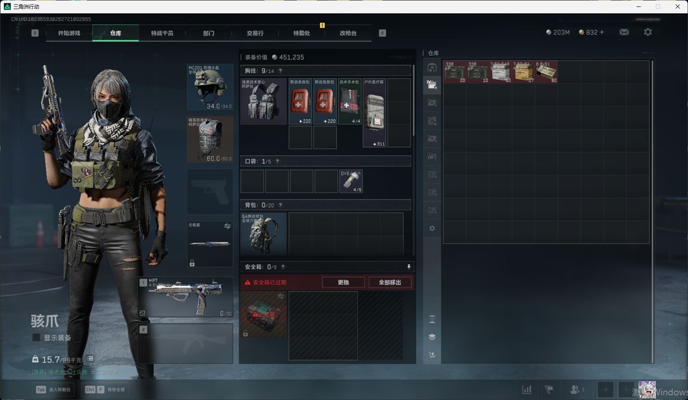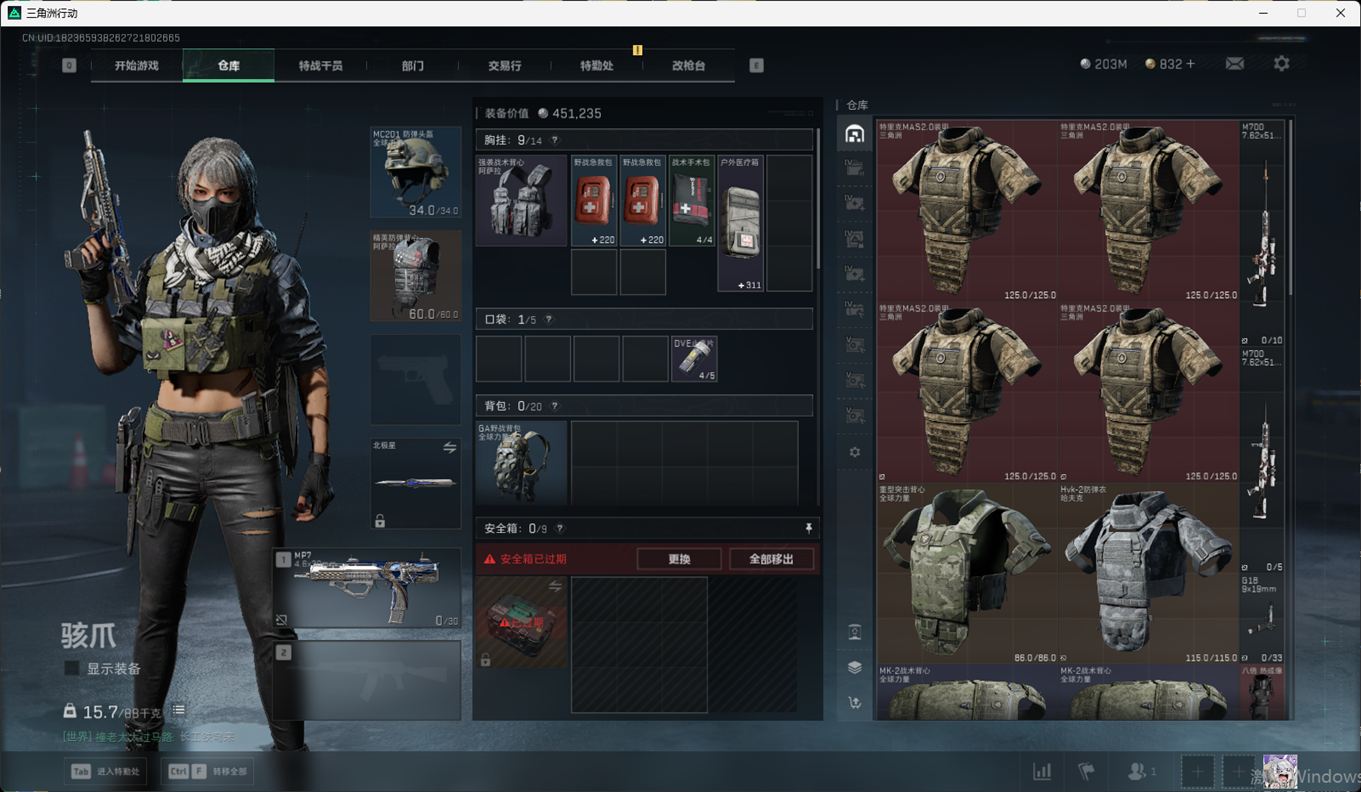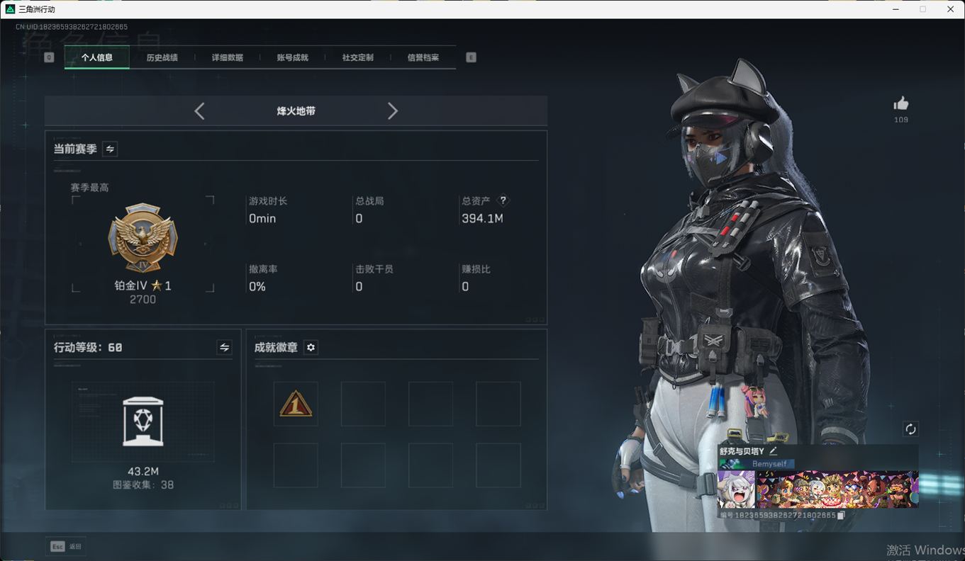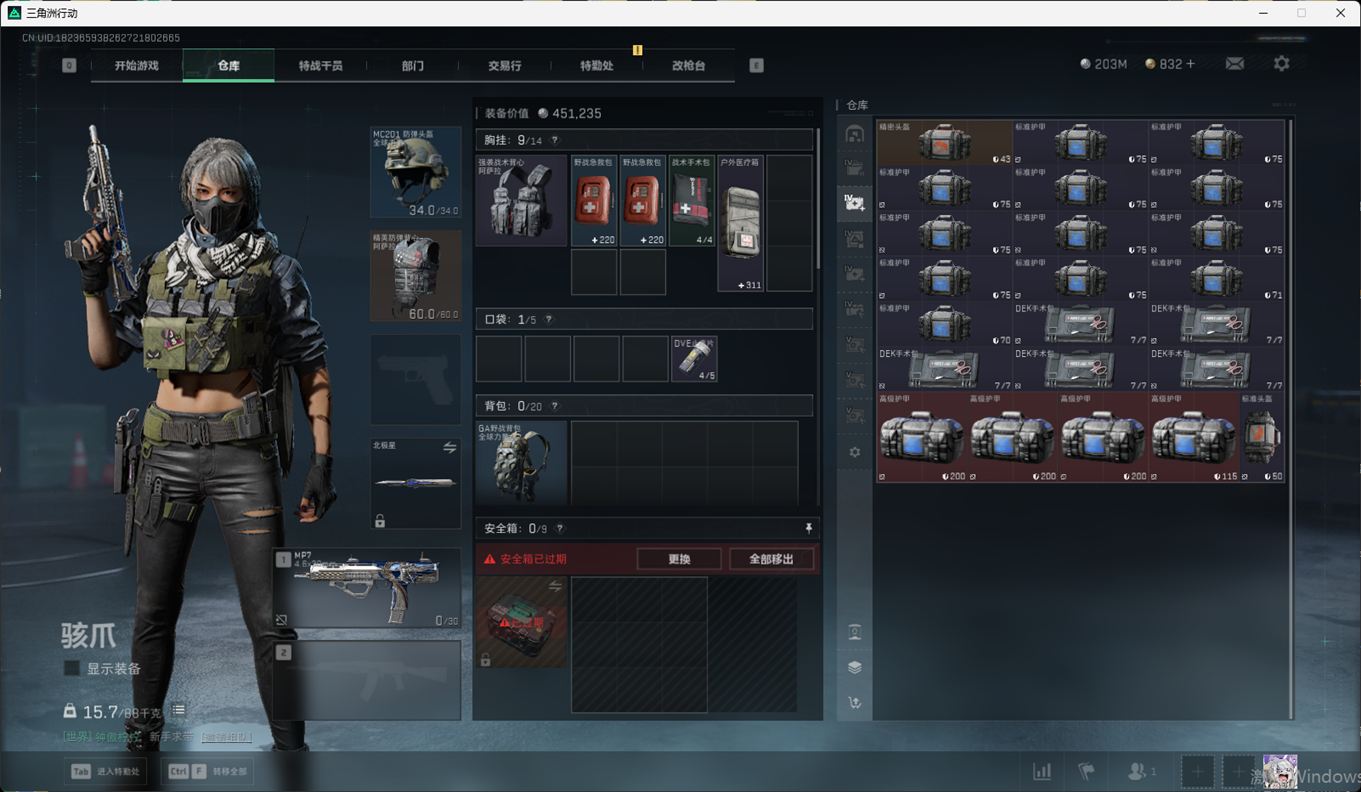 SSN6344/QQ/哈夫币203M/总资产394.1M/行动等级60/战场等级50/近战/北极星/