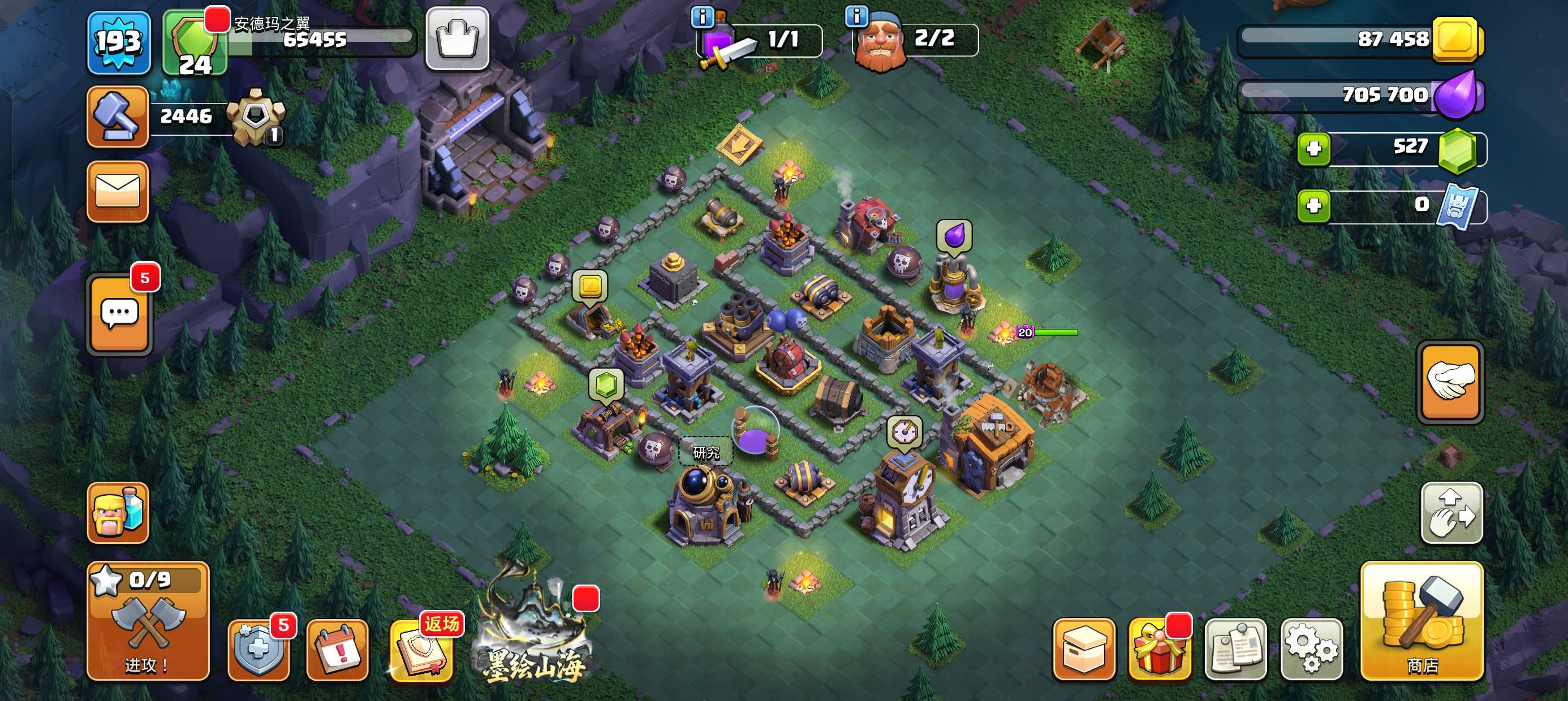 英雄皮肤,装备什么都有一点,除了城墙和英雄,其他防御基本16本满防了。