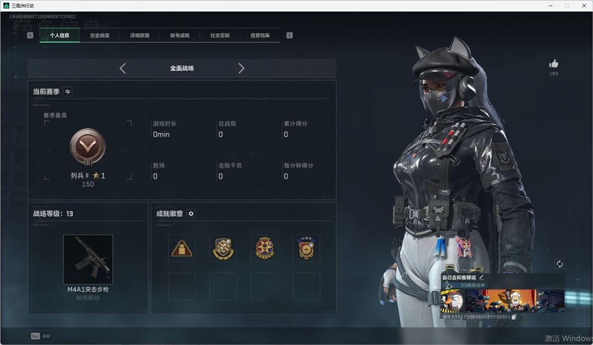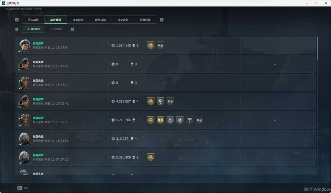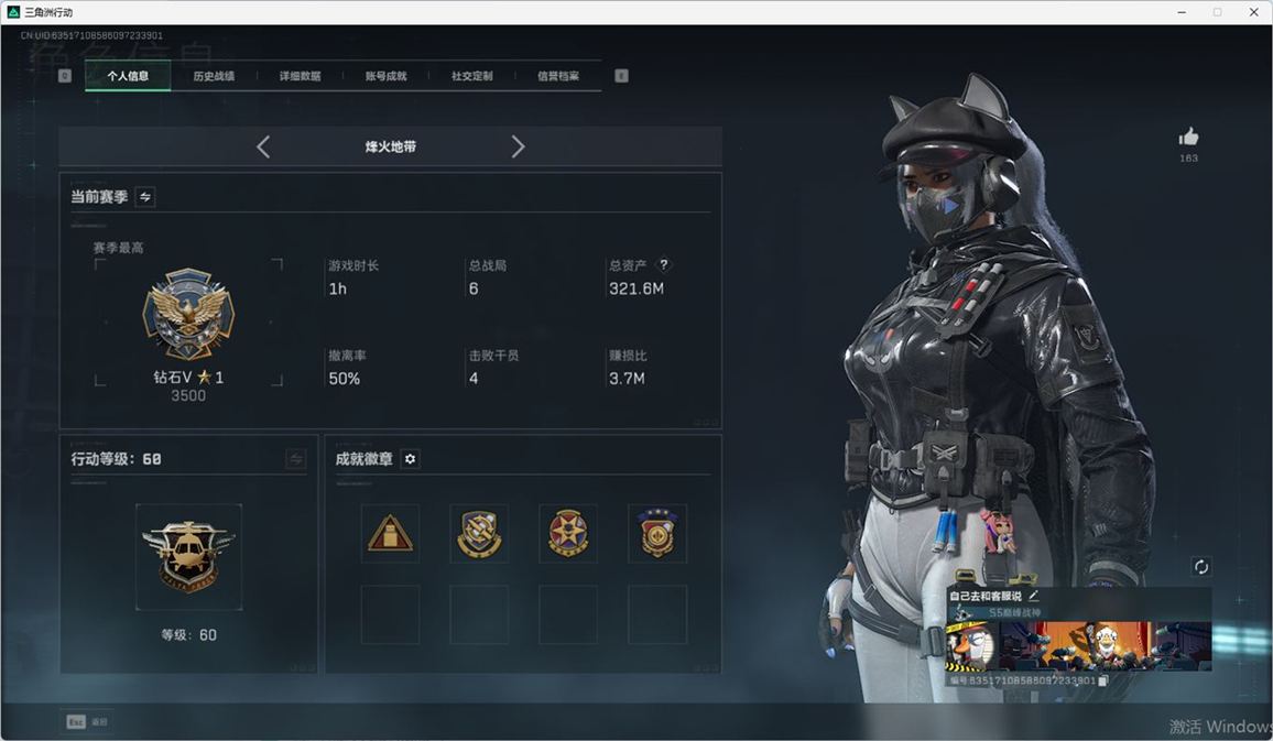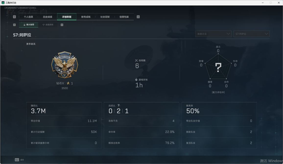 SSN6351/QQ区/哈夫币59W/总资产321.6M/行动等级60/战场等级13/近战/北极星/