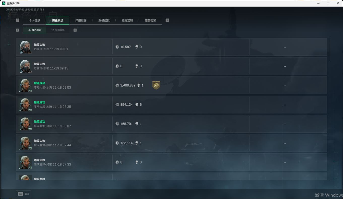 SSN6359/QQ区/哈夫币51W/总资产272.4M/行动等级60/战场等级29/近战/黑鹰/干