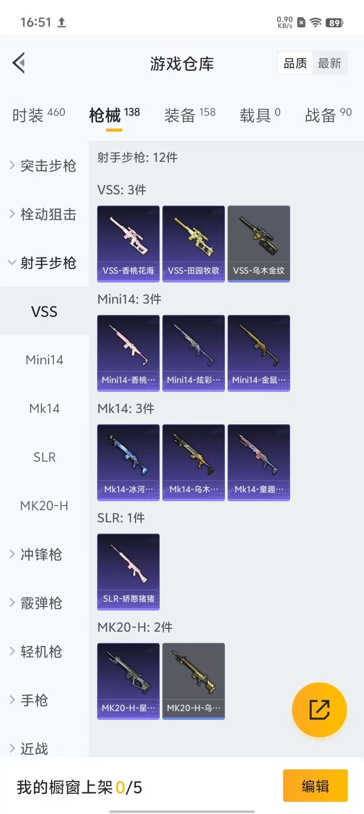 8粉装 6特效枪 0载具 2印记 可二次 可修改实名 时装