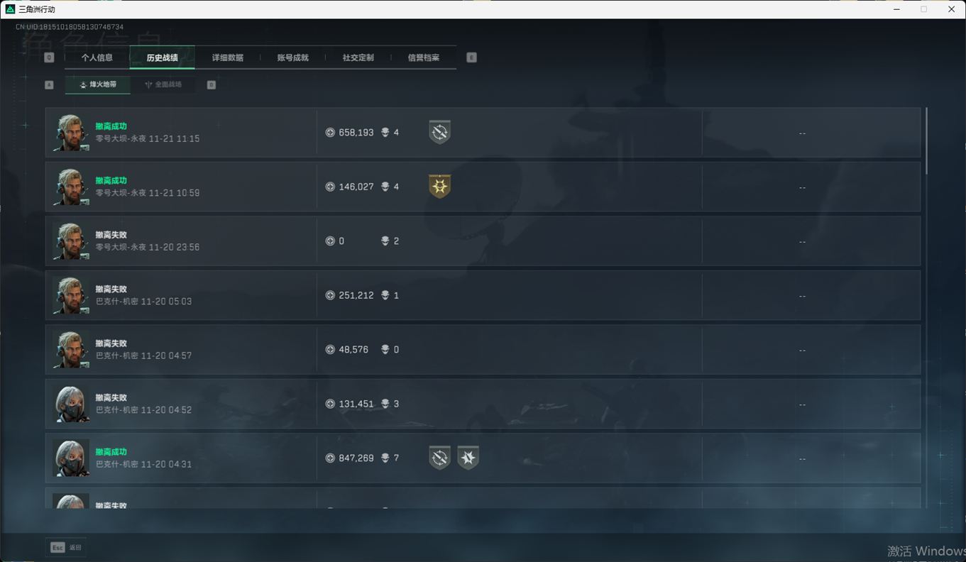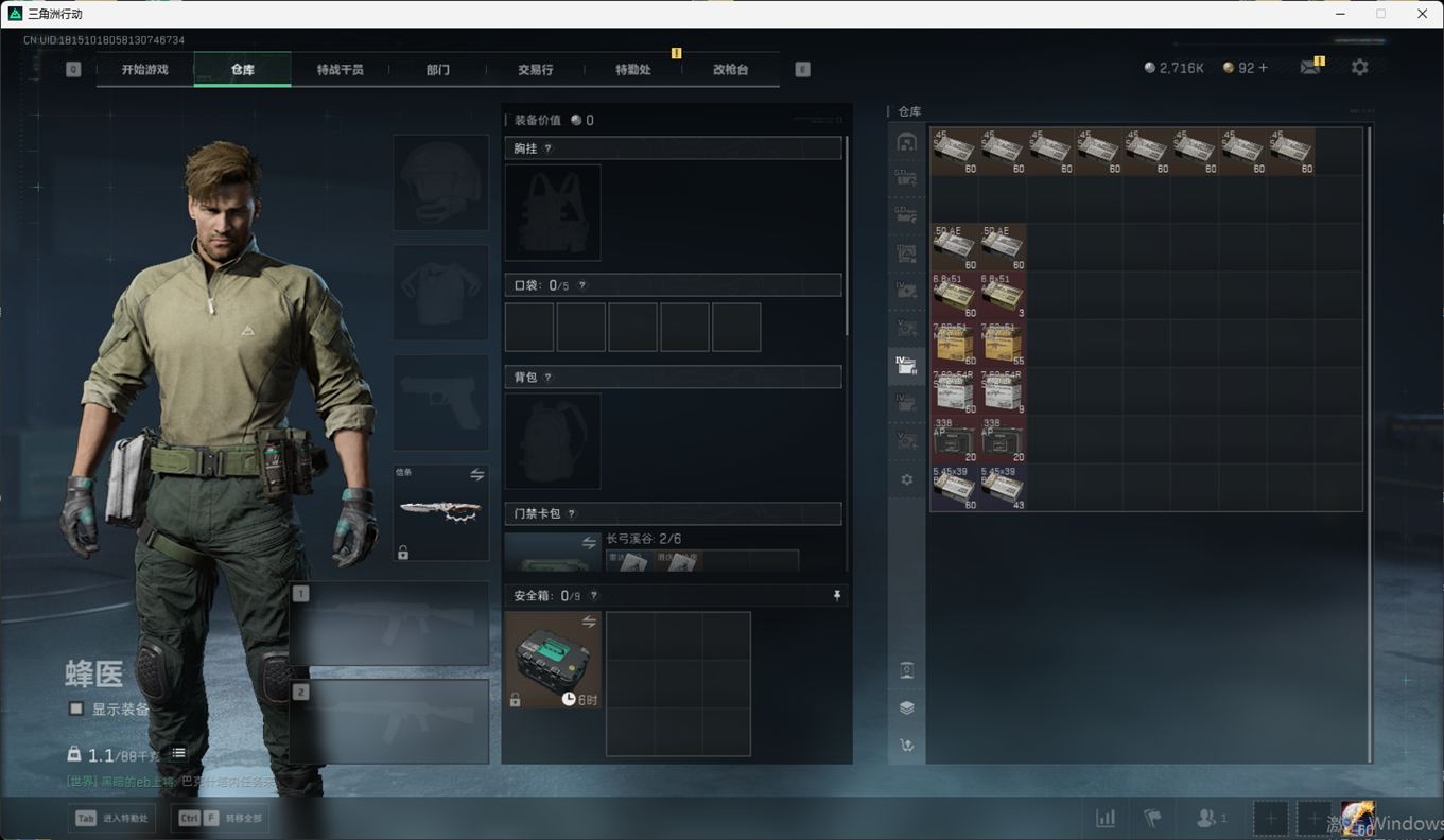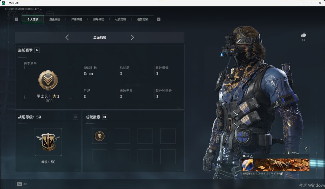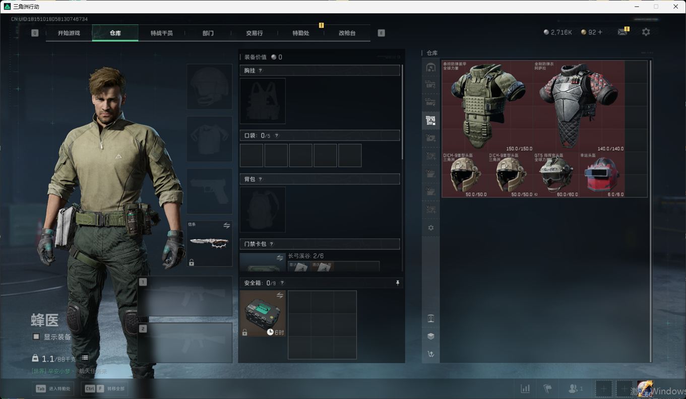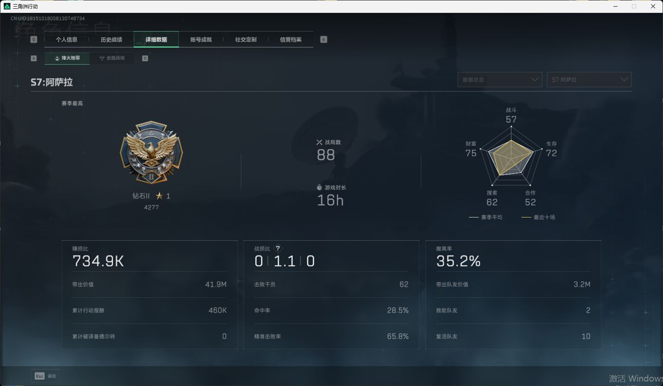 SSN6363/QQ区/哈夫币271W/总资产221.1M/行动等级60/战场等级50/S7赛季顶级