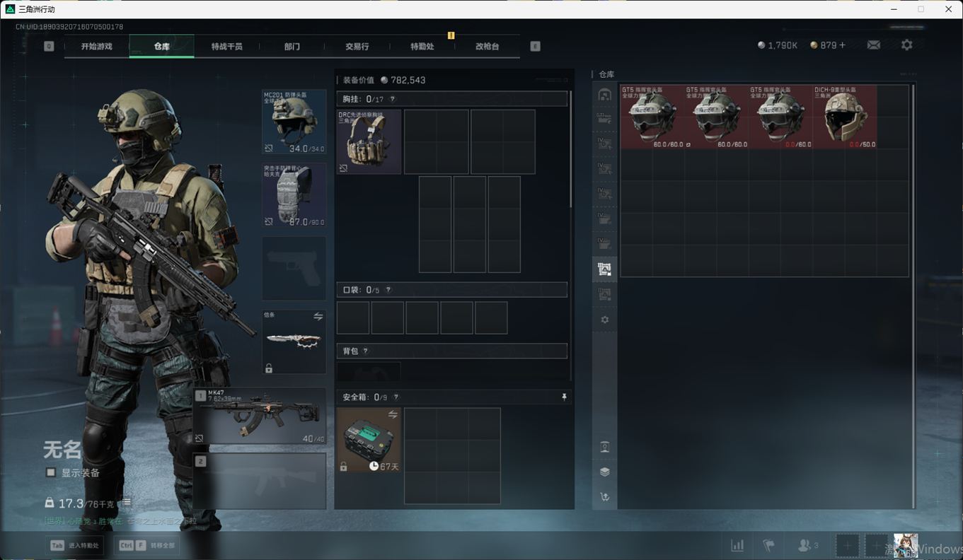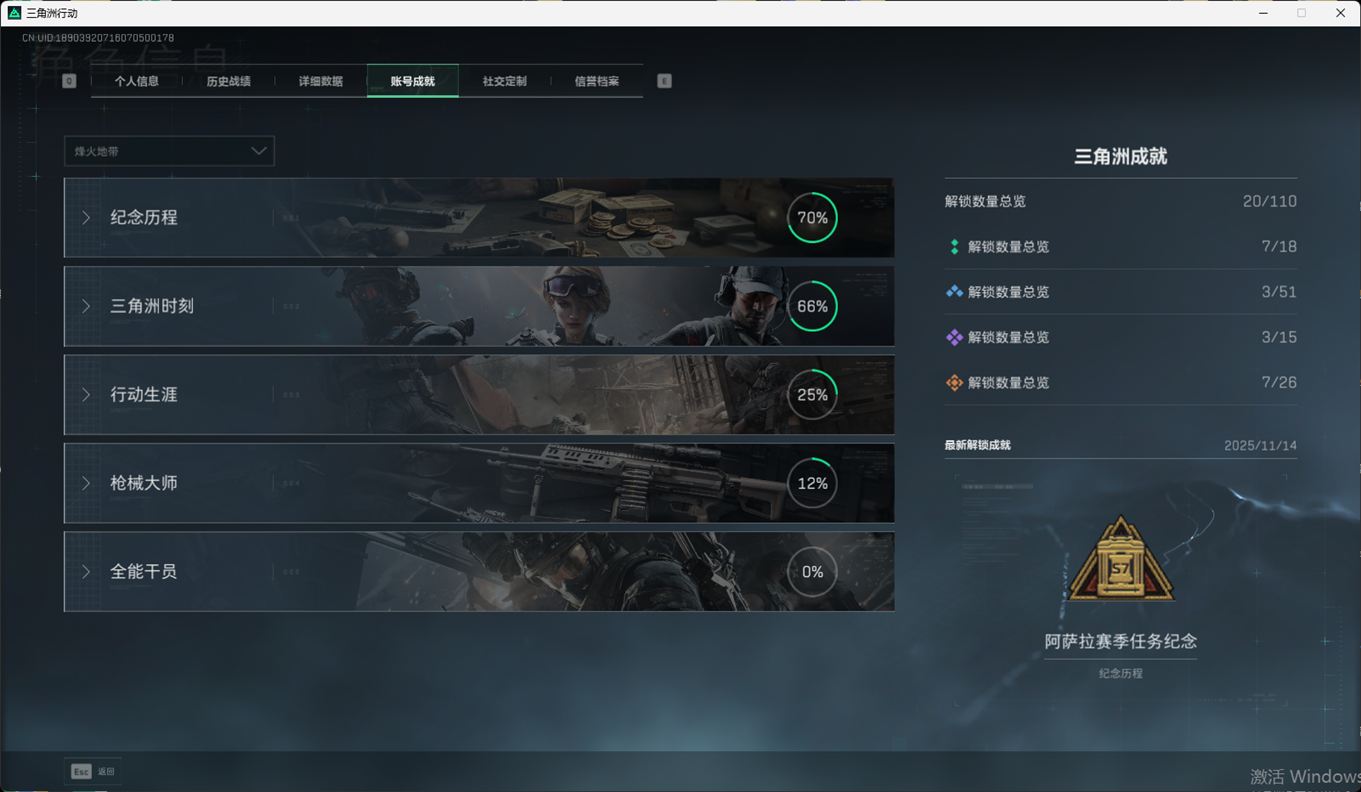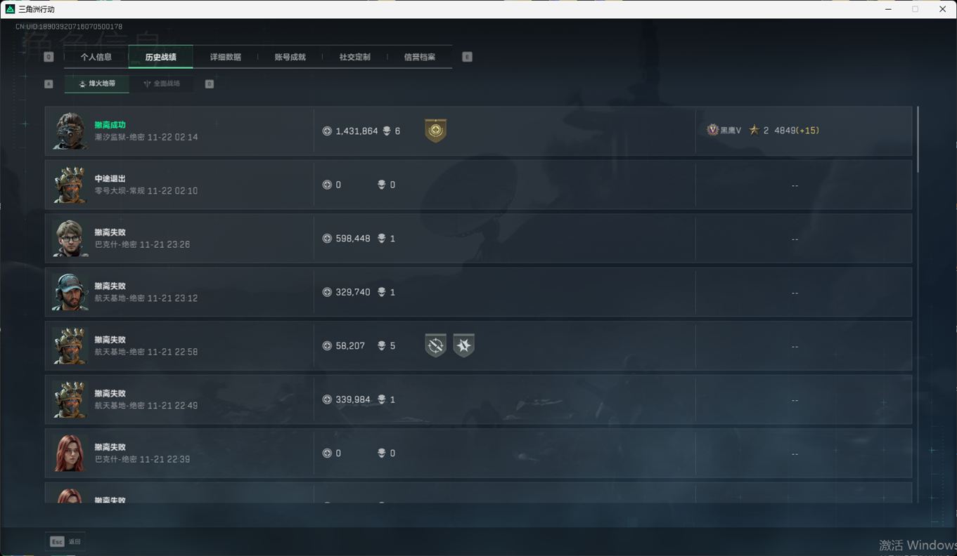 SSN6366/QQ区/哈夫币179W/总资产291.7M/行动等级60/战场等级46/阿萨拉赛季顶