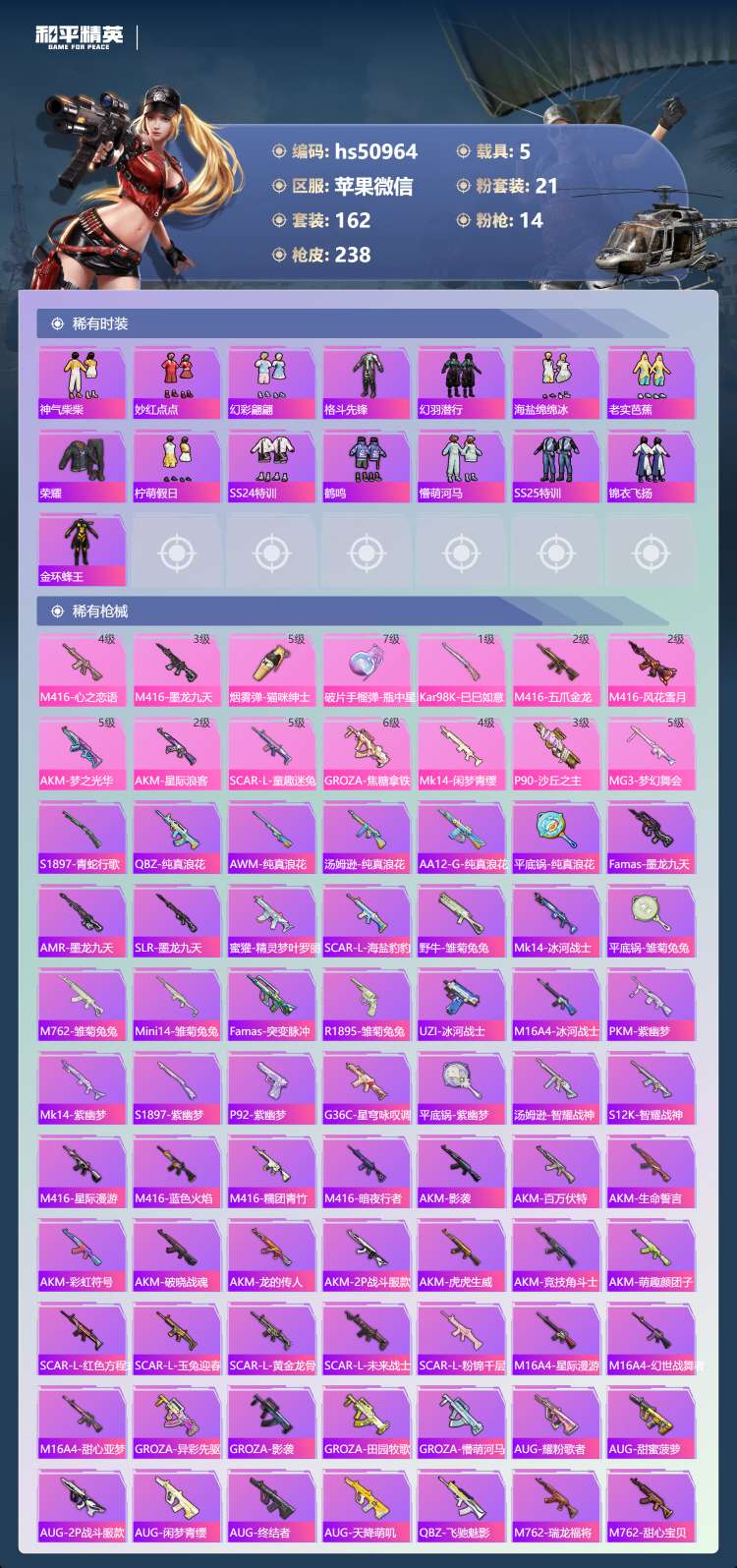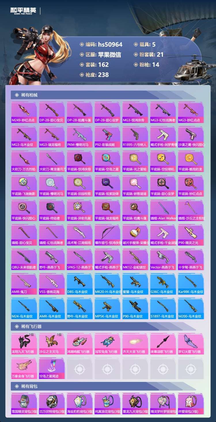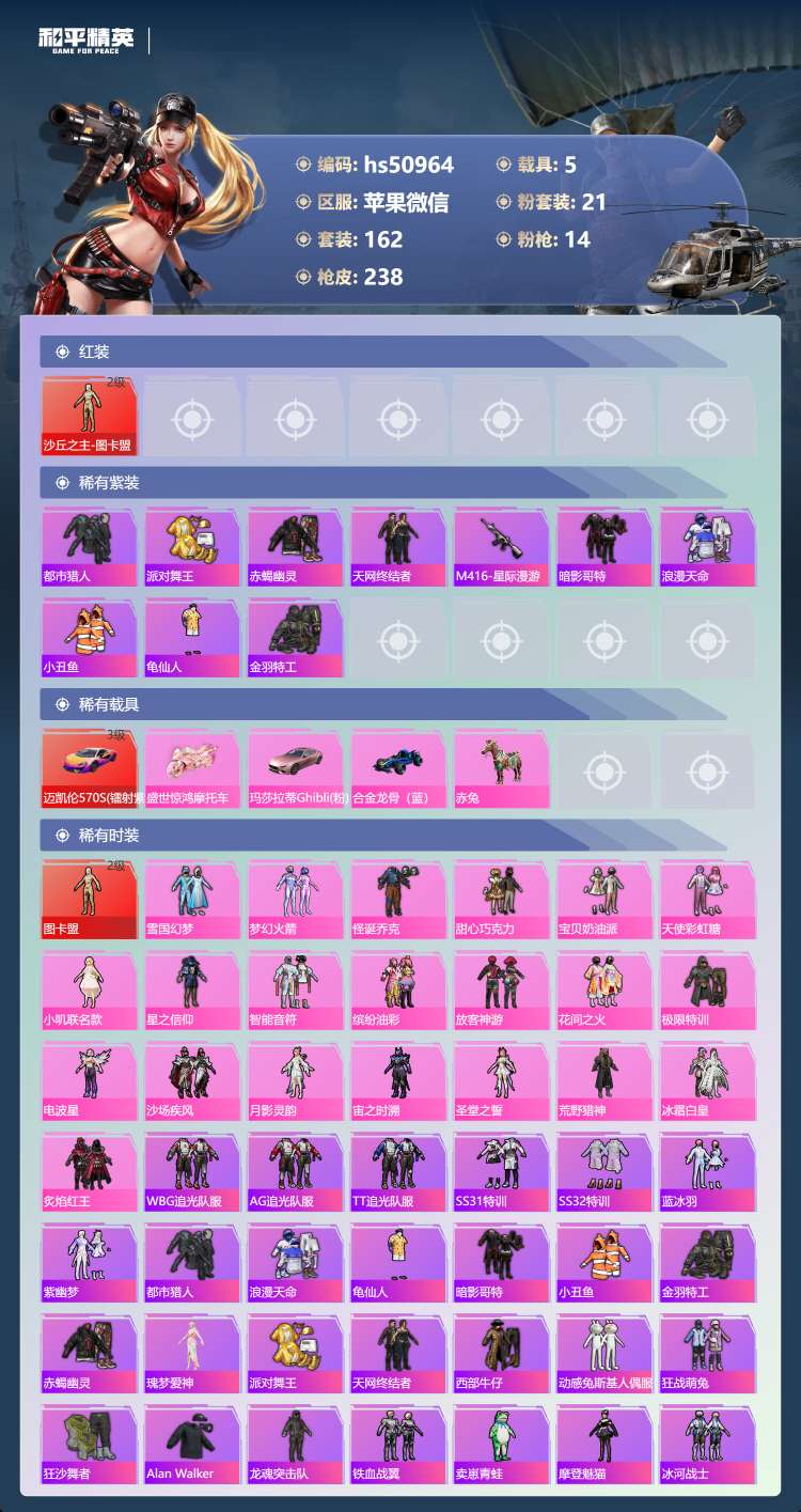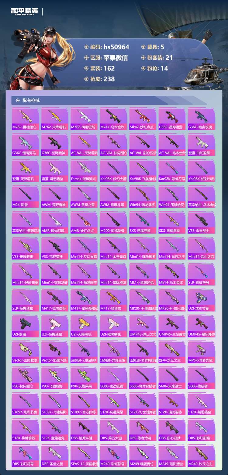 hs50964 苹果v-11王牌印记-有战神框-1红装-21粉装-14特效枪-5载具-89846热