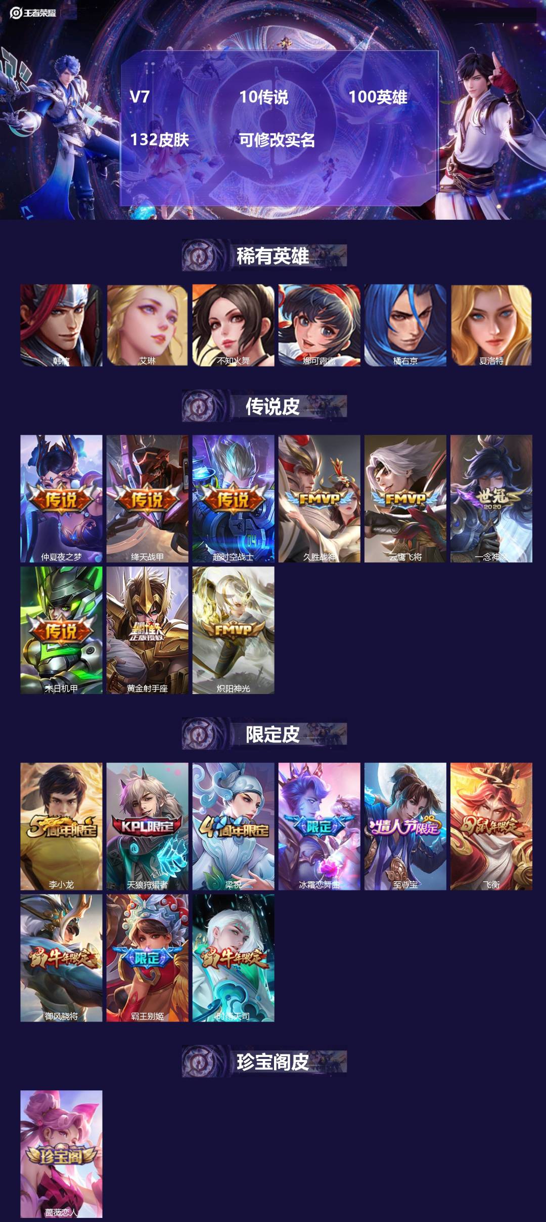 V7 10传说 100英雄 132皮肤 可修改实名