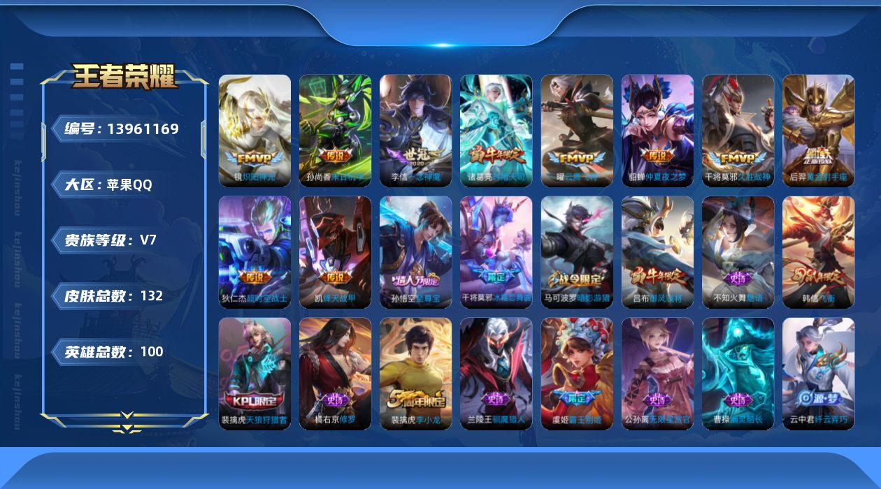 王者荣耀【苹果QQ】-可二次-0典藏-10传说-33史诗