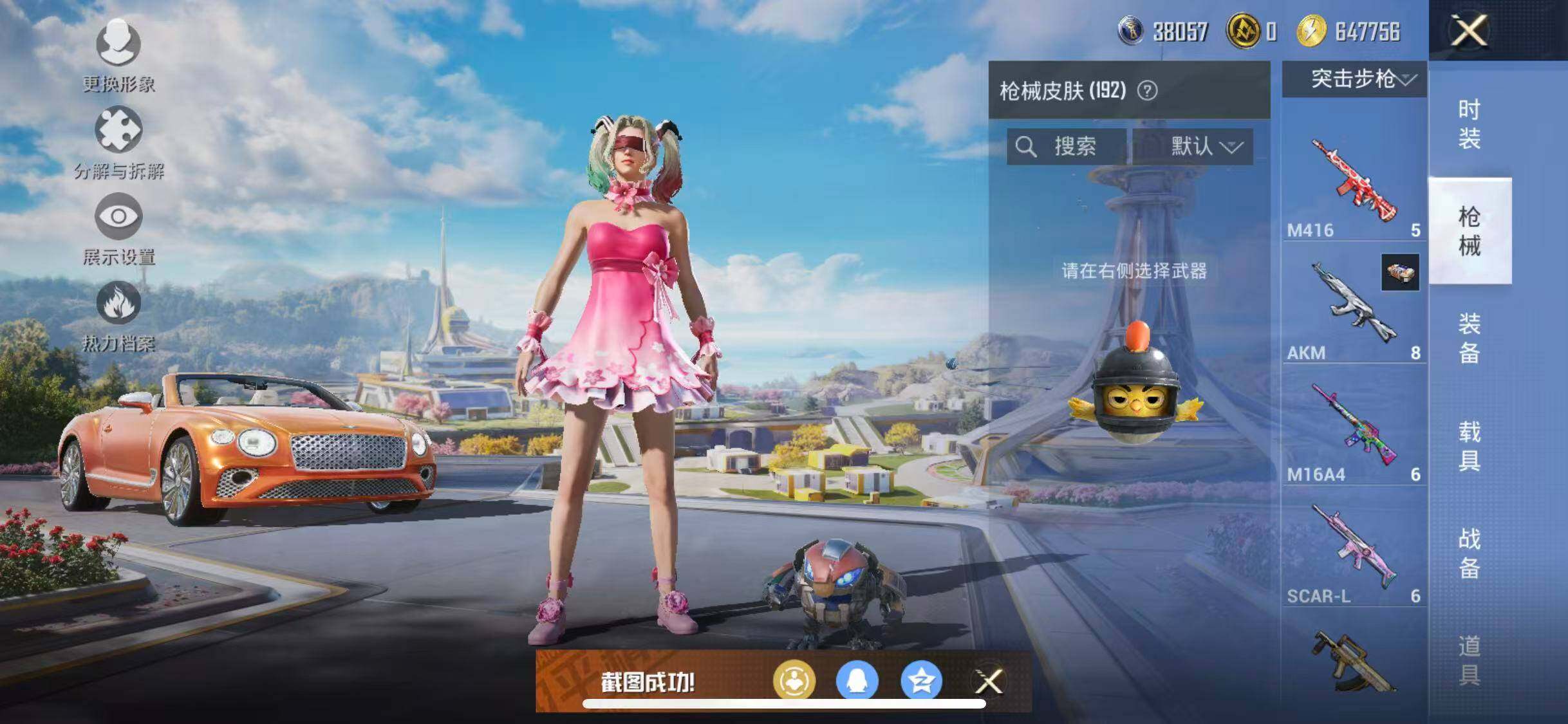 苹果 手Q-11粉装-4特效枪-3载具-2粉色飞行器-67364热力值-5王牌印记-156套装-192枪皮