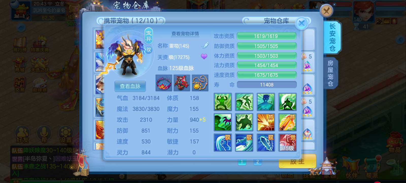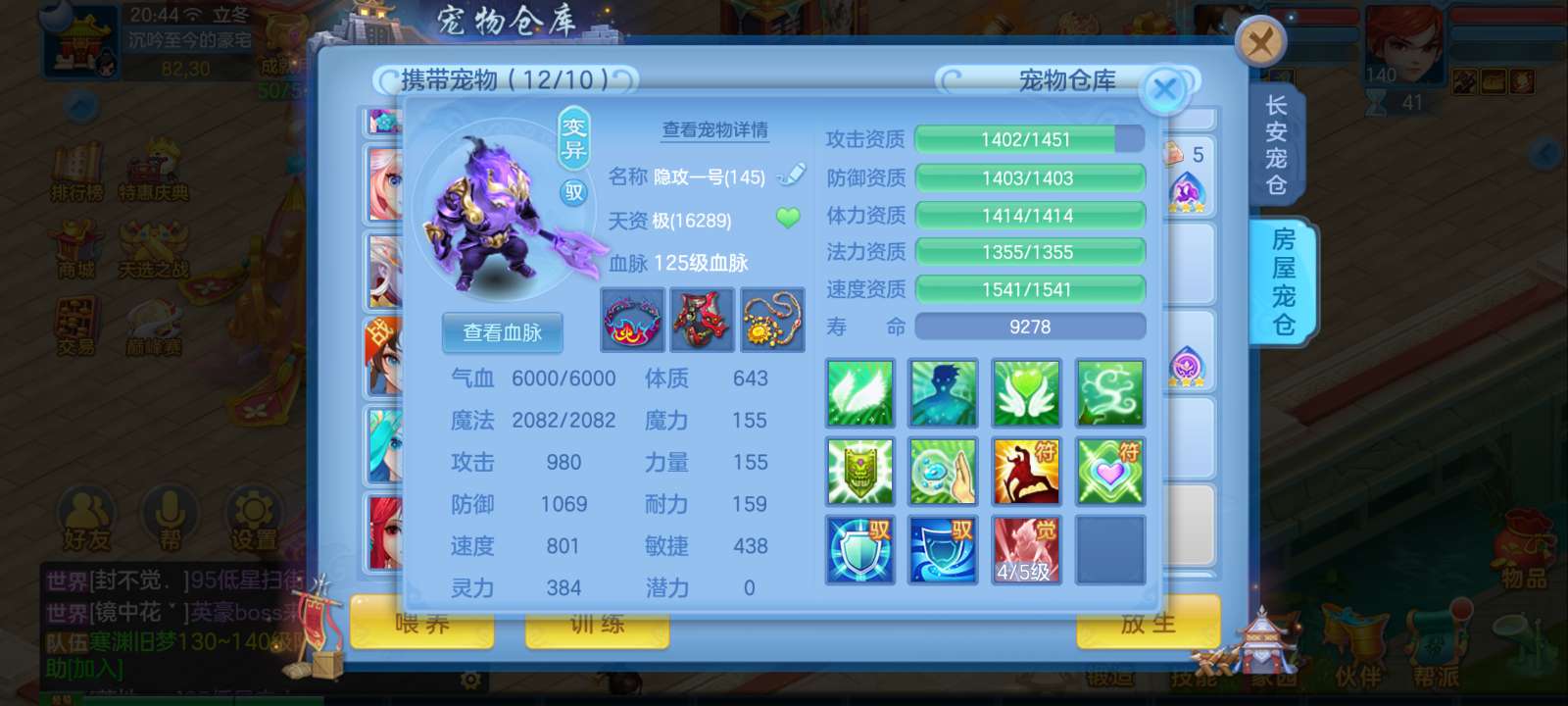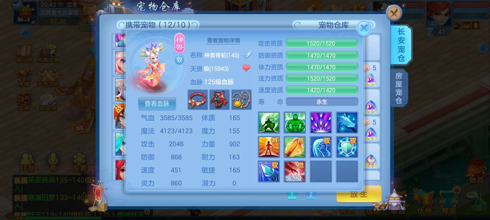 修炼全满 驭兽满。 满技能宠物多 宠物好护肤多