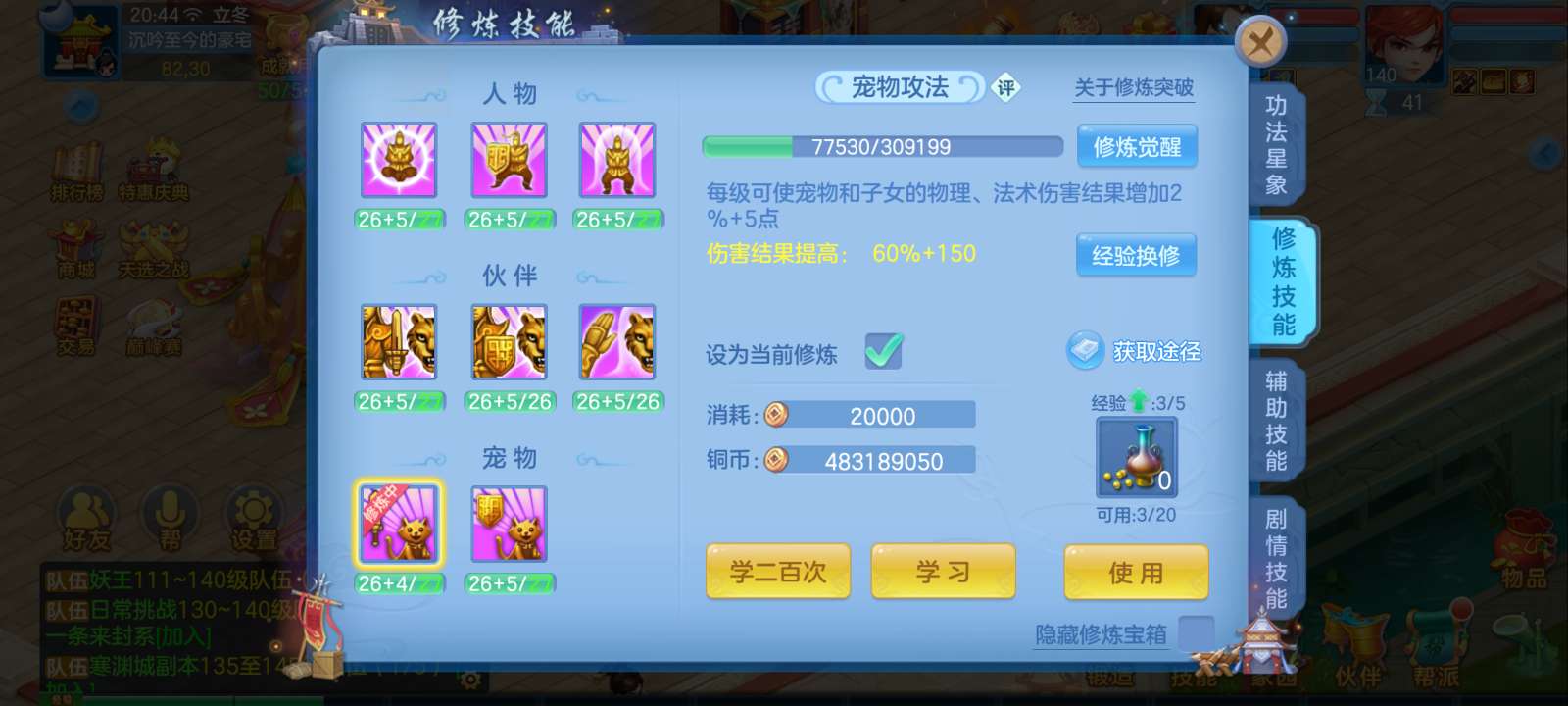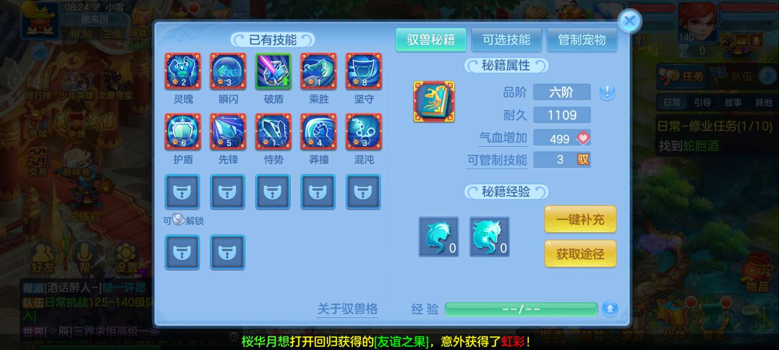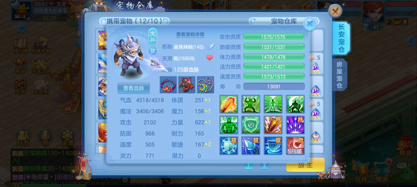 修炼全满 驭兽满。 满技能宠物多 宠物好护肤多