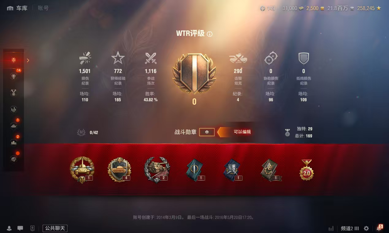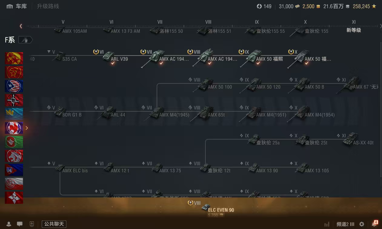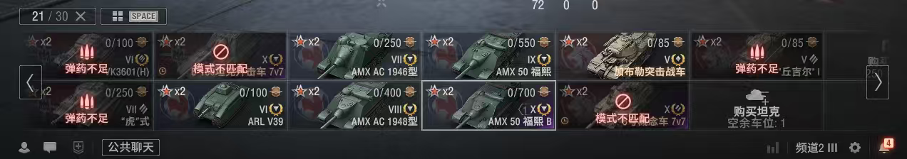 z808坦克世界账号AMX50福熙B银币2100万债券31000全局25万金币2500