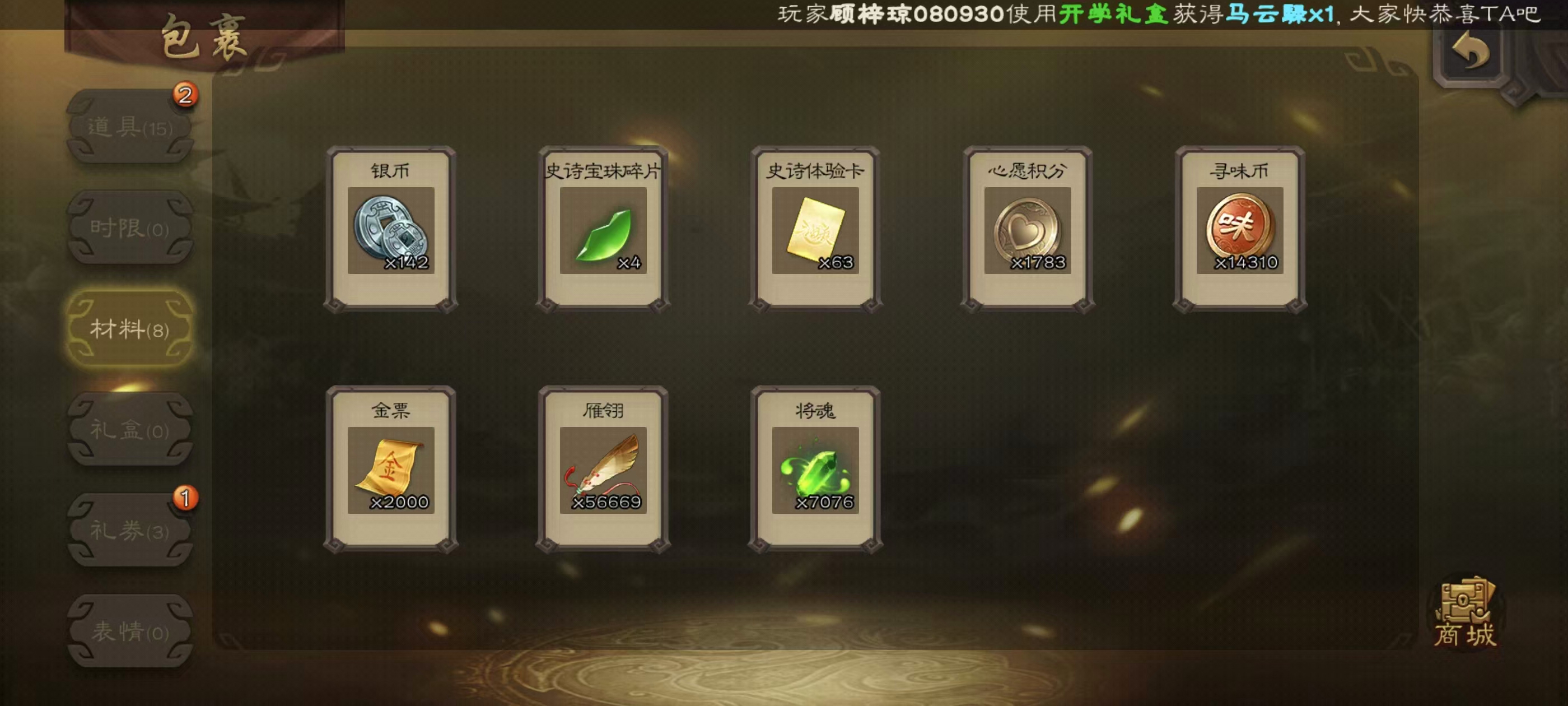 玉龙势魏延大宝瞧周势陈到7000将魂5.6羽毛4w欢乐豆2700菜篮子