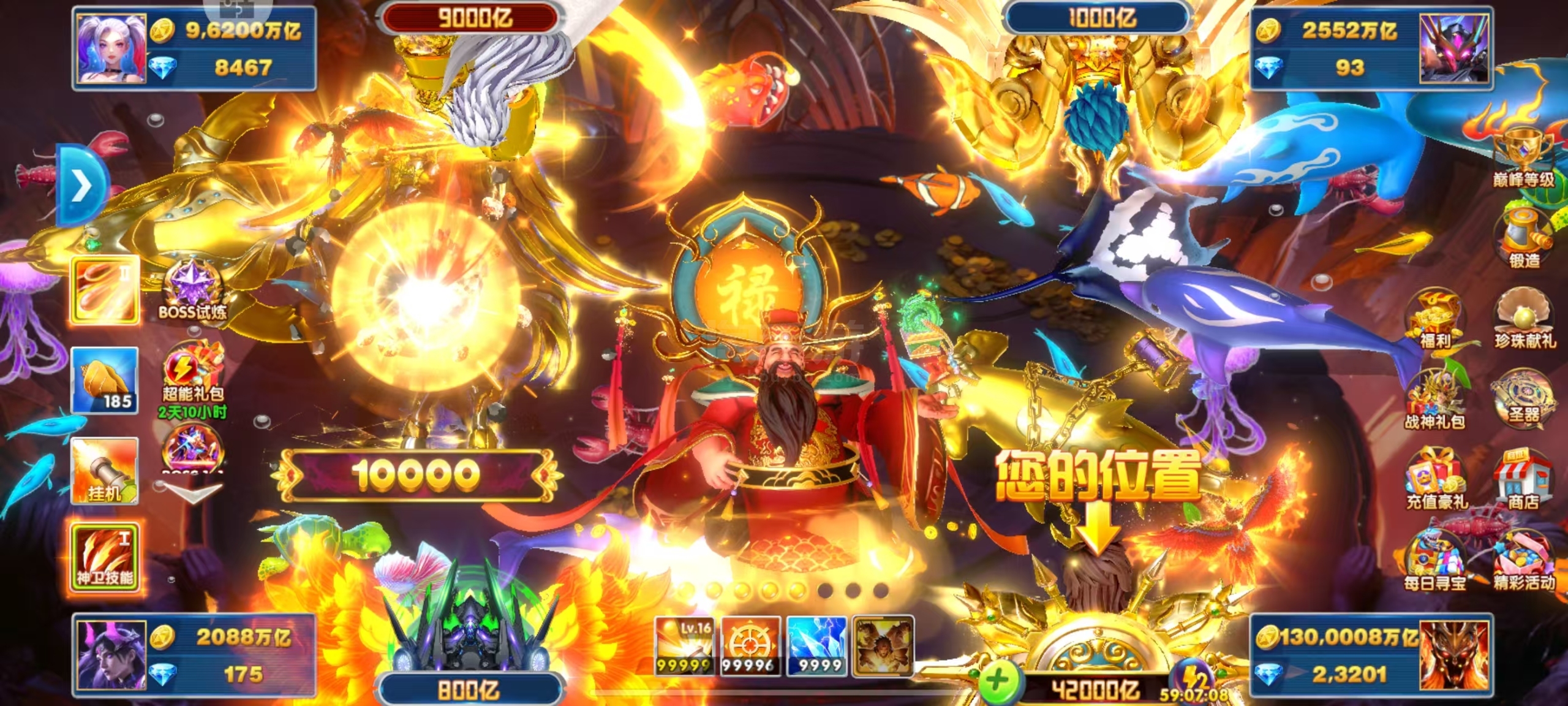 出售捕鱼大作战,华为版本,V15,救济金1.55兆,400炮,加成1322,9.25套,西游98,机甲889,战神776,三国644,山海455,组合技,双神卫,天使555,号上有130兆,还有28000华为积分