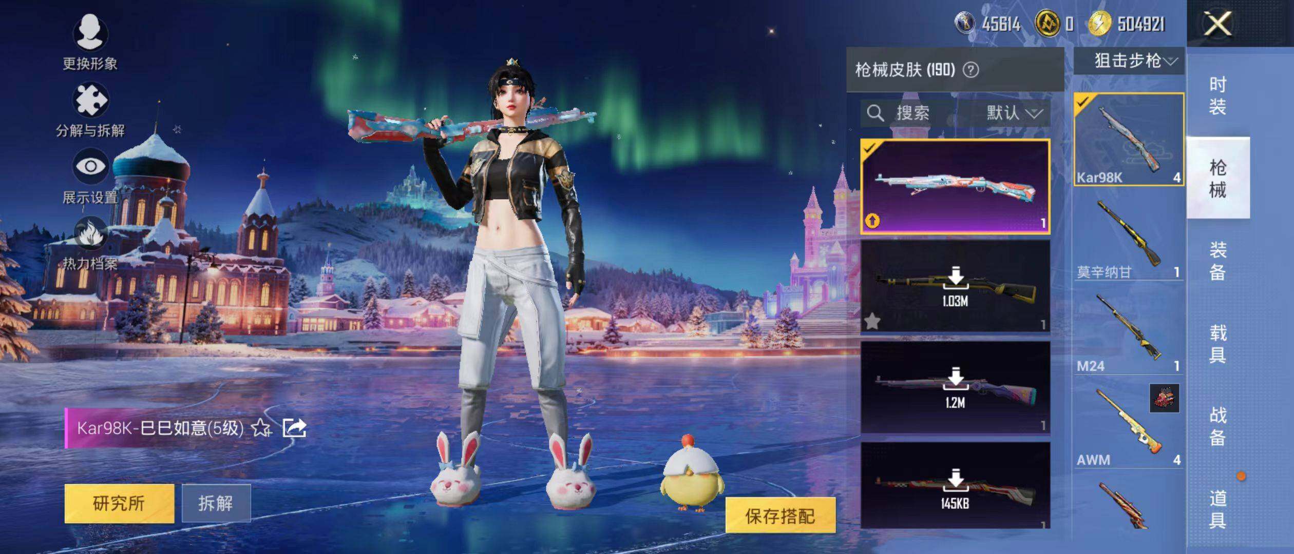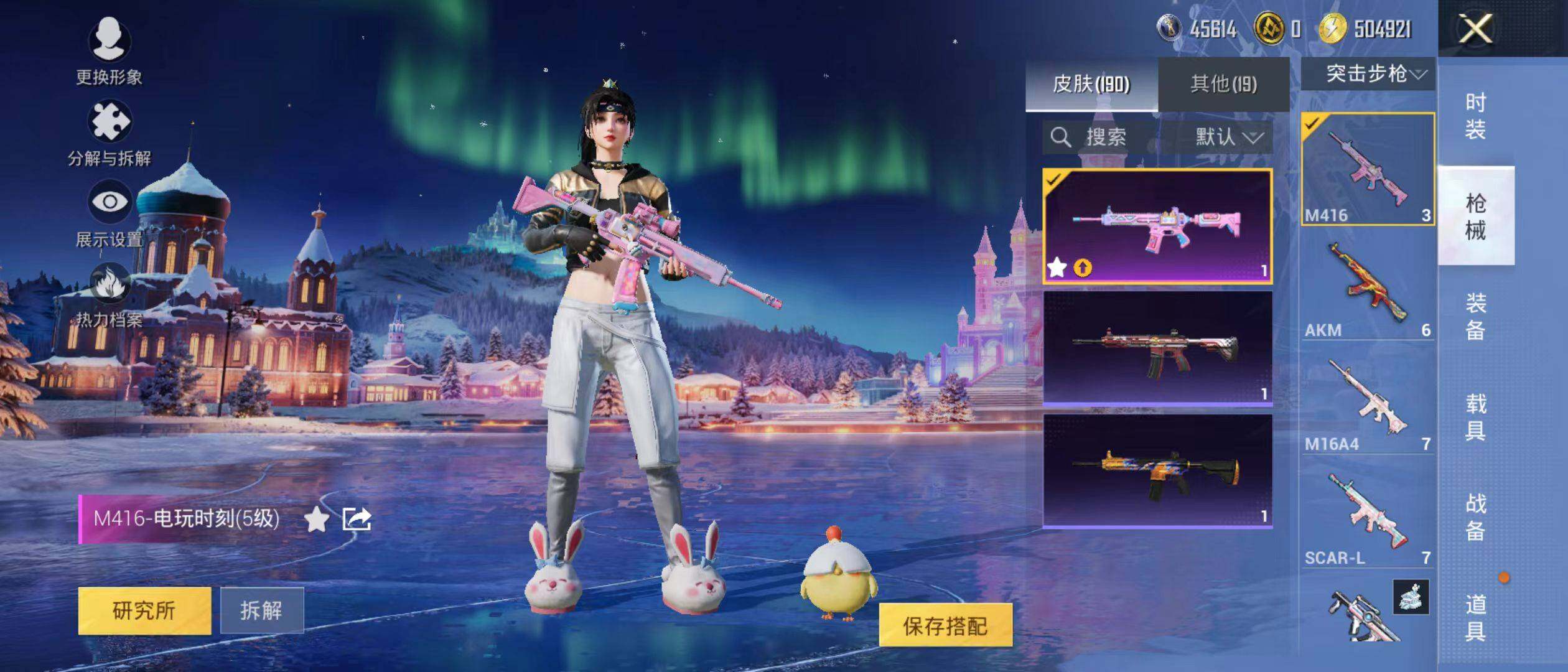 【粉色枪皮等级】:SCAR-L-锦绣绵绵(五级),M416-电玩时刻(五级),Kar98K-巳巳如意(五级),DP-28-豹影疾电(五级)