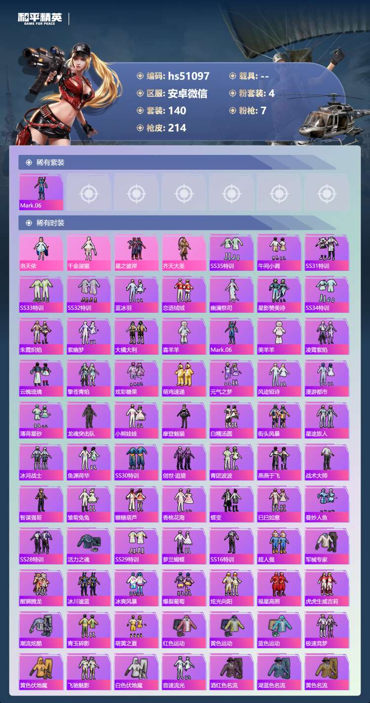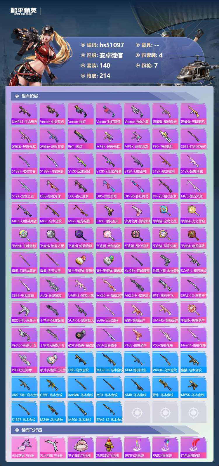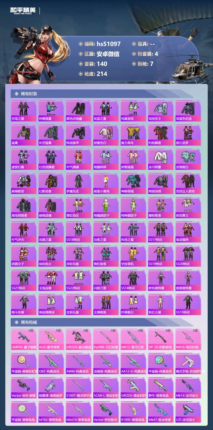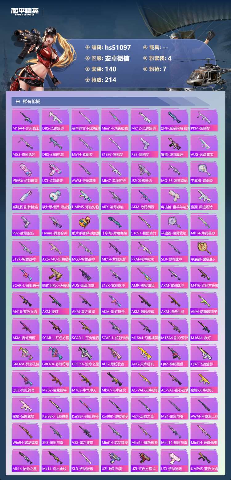 hs51097 安卓v-3王牌印记-4粉装-7特效枪-62642热力值-140套装-214枪皮【4