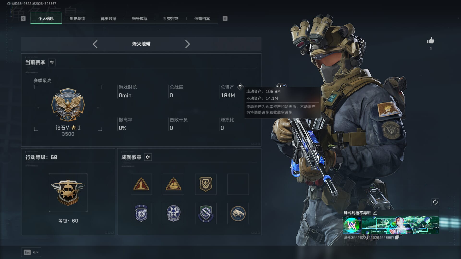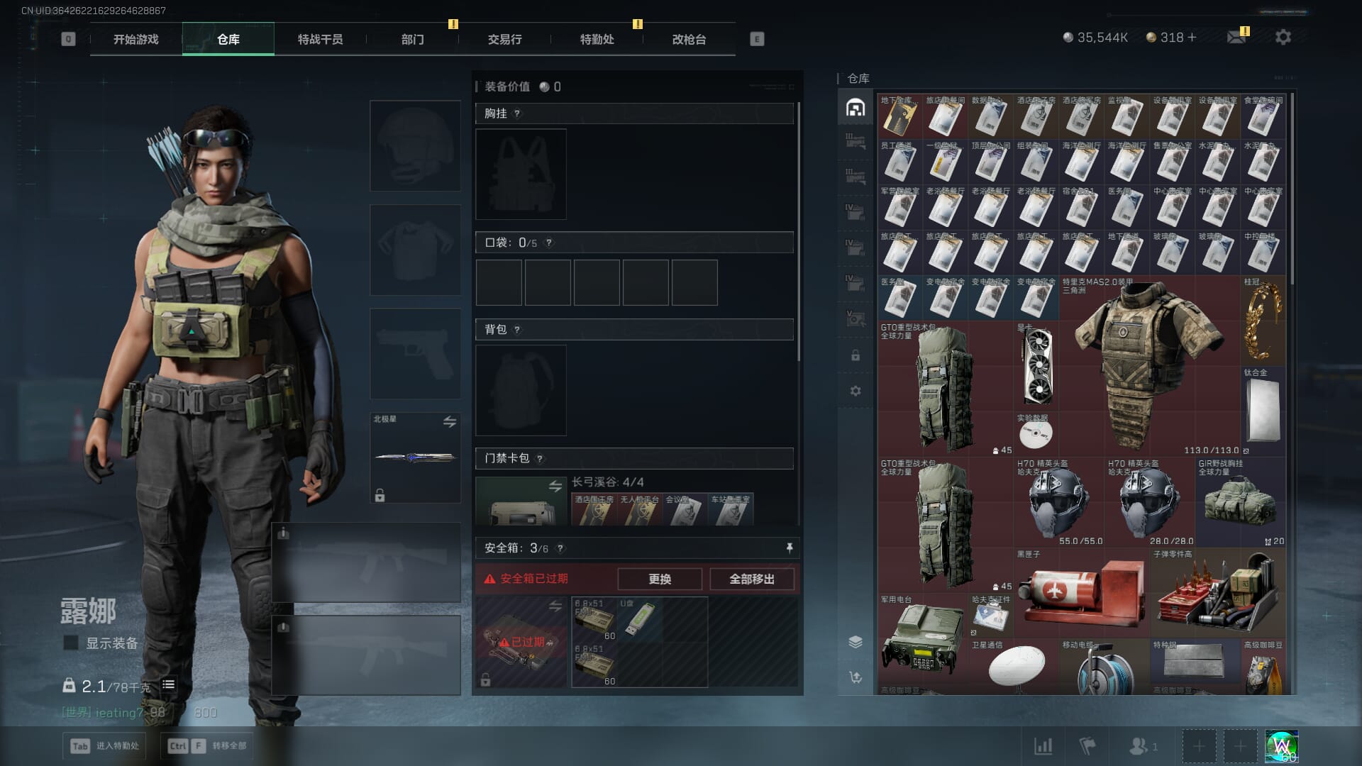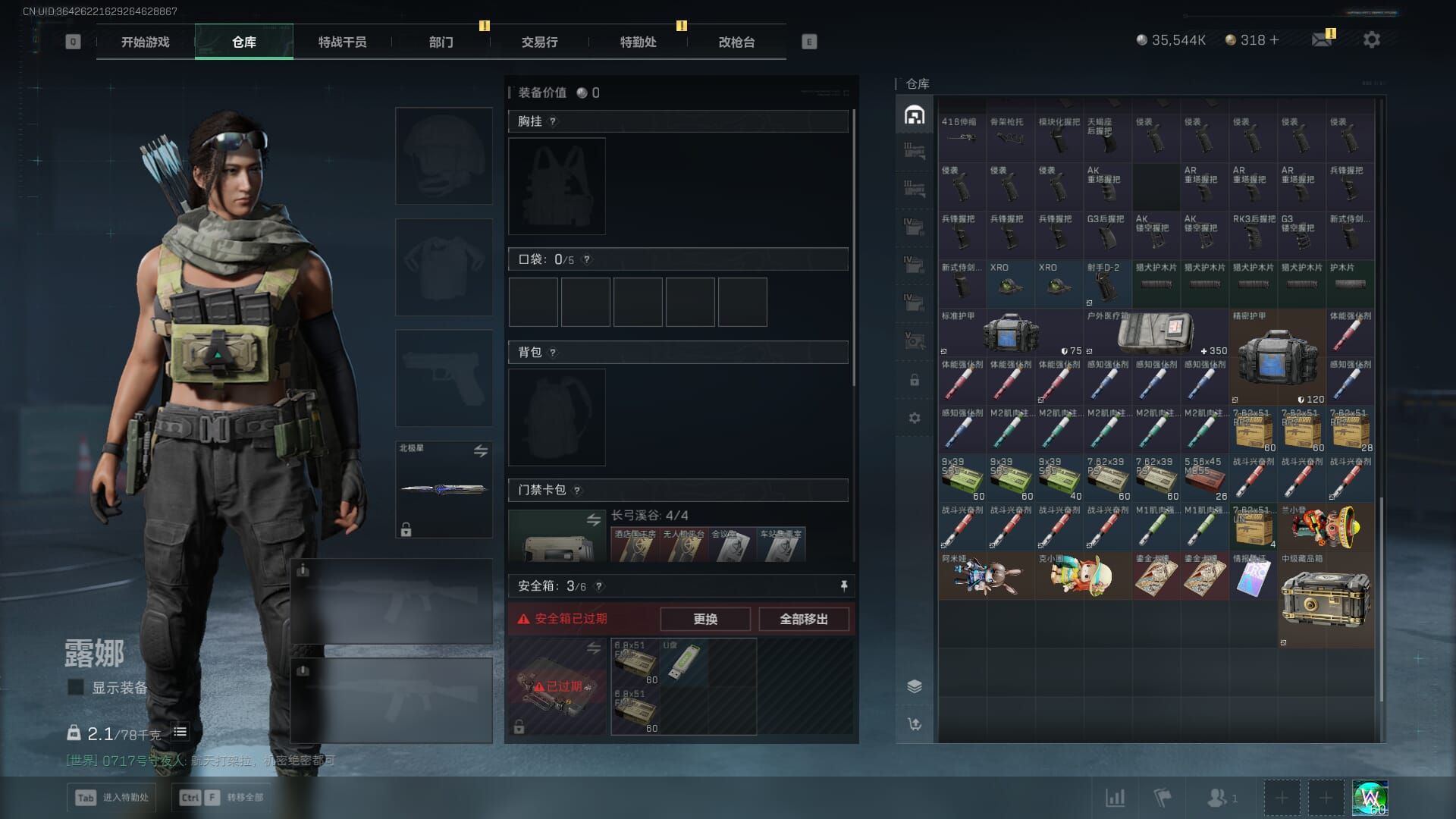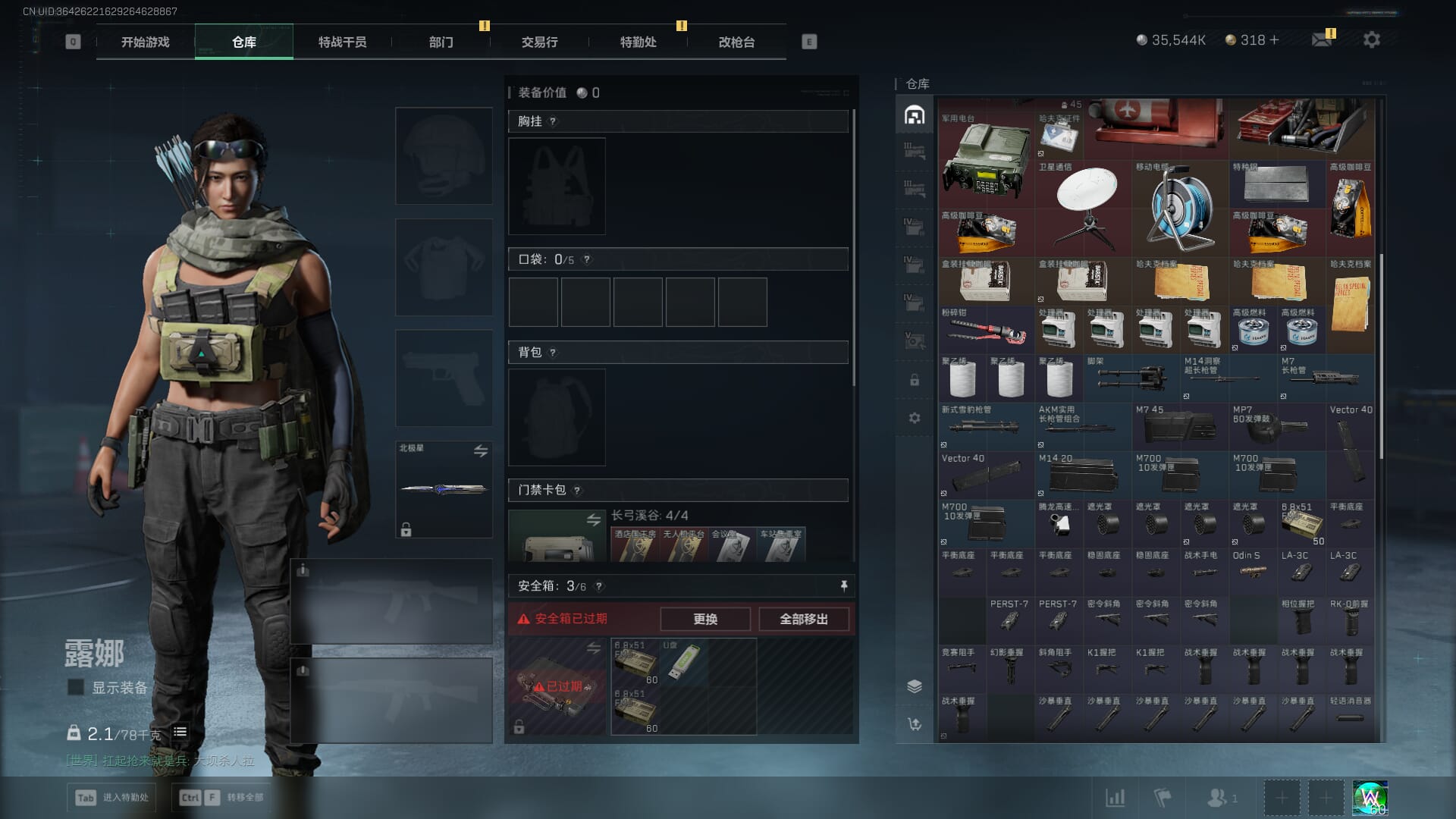 D10648/QQ区/可二次/钱包注销/【总资产:184M+近战北极星】哈夫币:3554W,武器皮肤