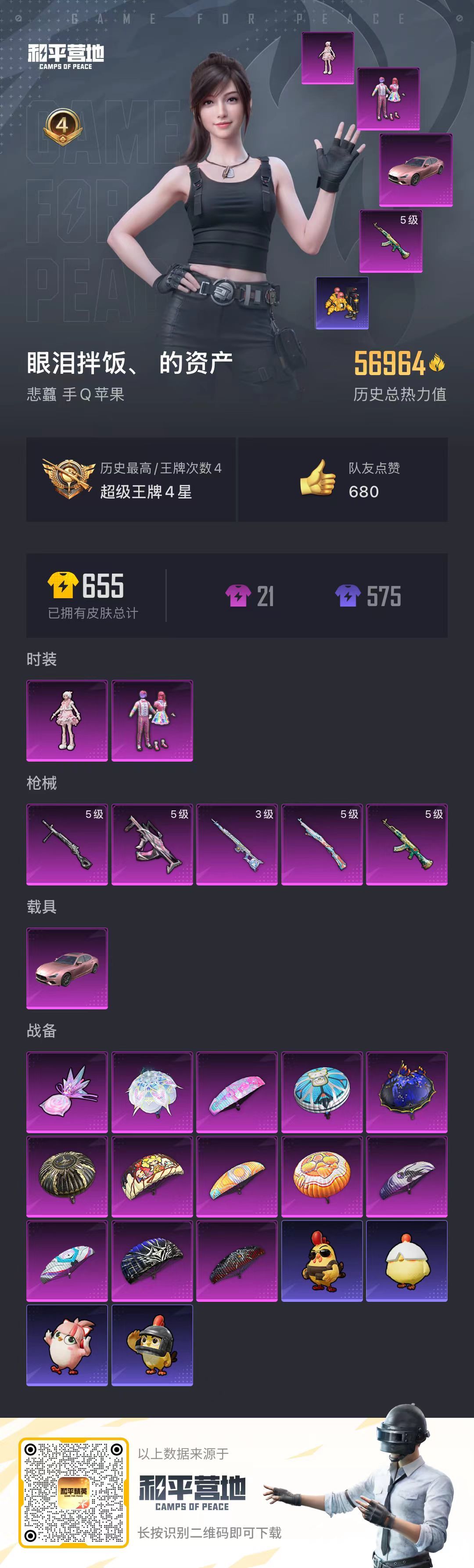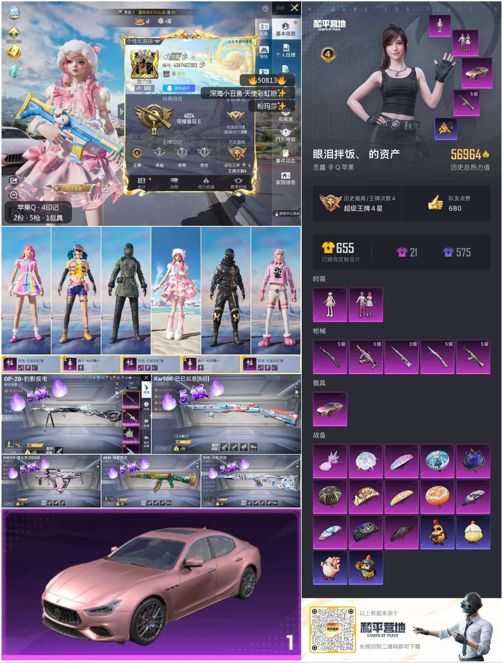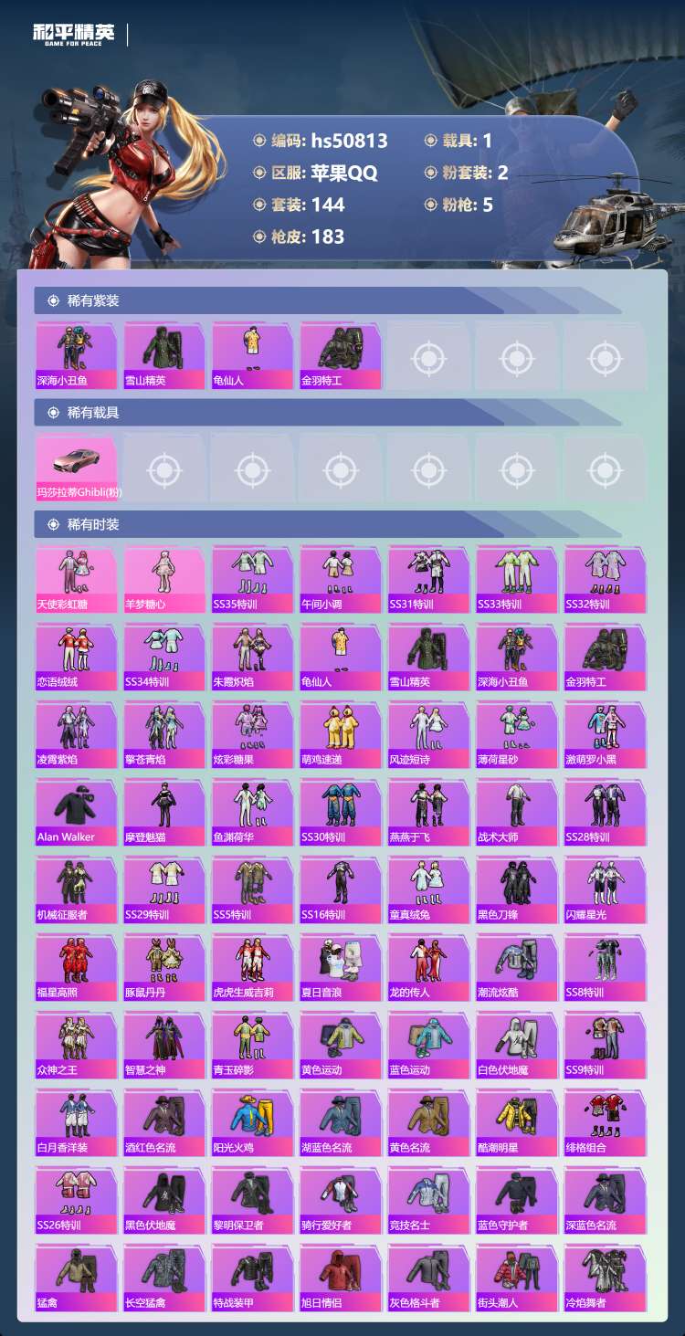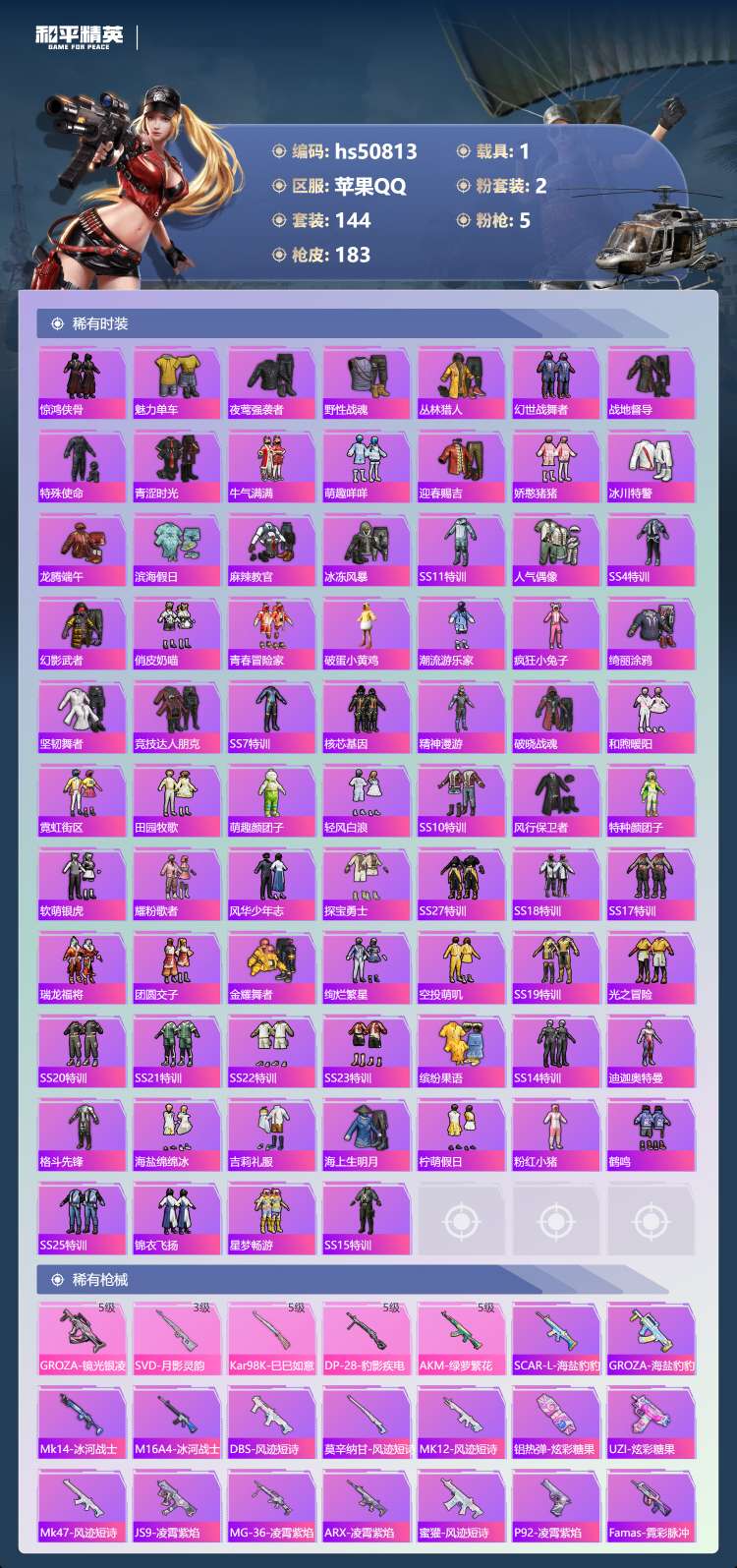 hs50813 苹果手Q-4王牌印记-2粉装-5特效枪-1载具-56964热力值-144套装-183