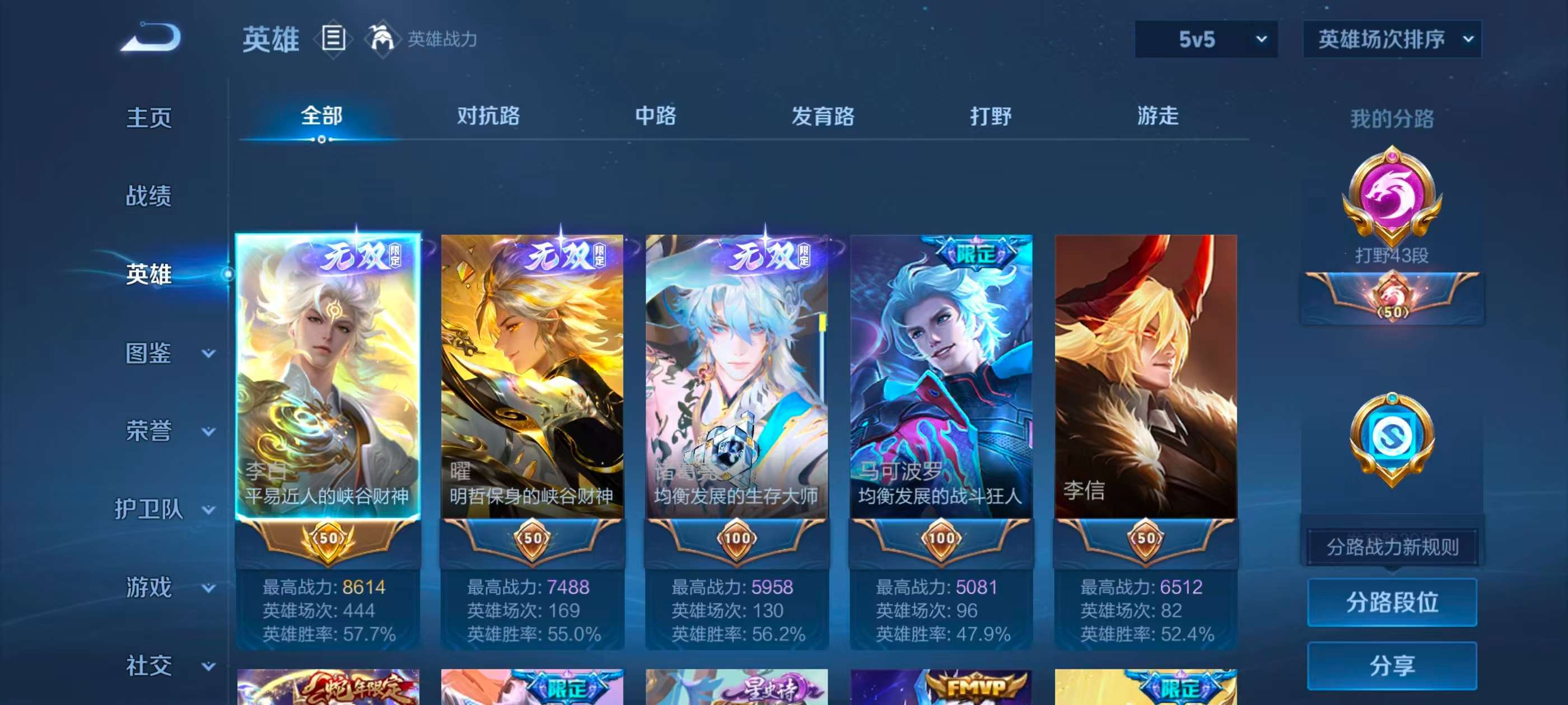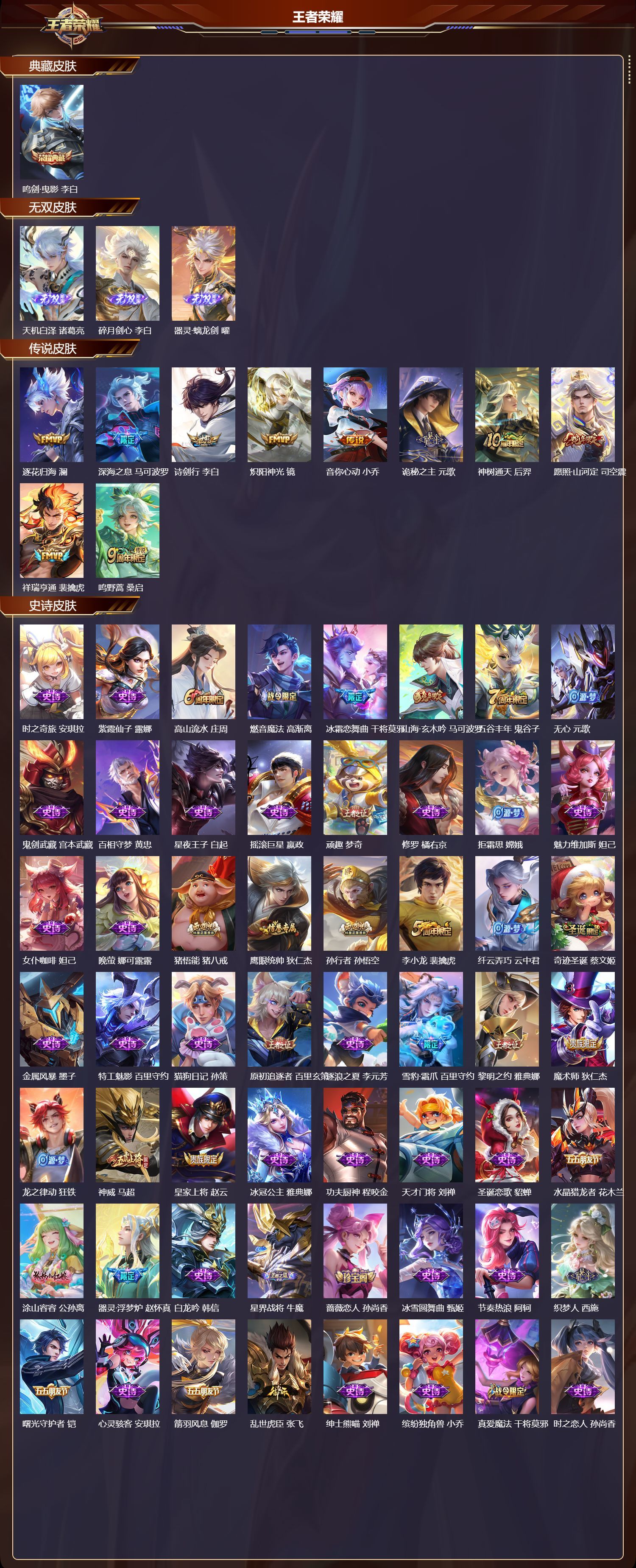 安卓QQ/无双王者/235皮肤/126英雄/1典藏/0珍品无双/3无双/0珍品传说/10传说/63史